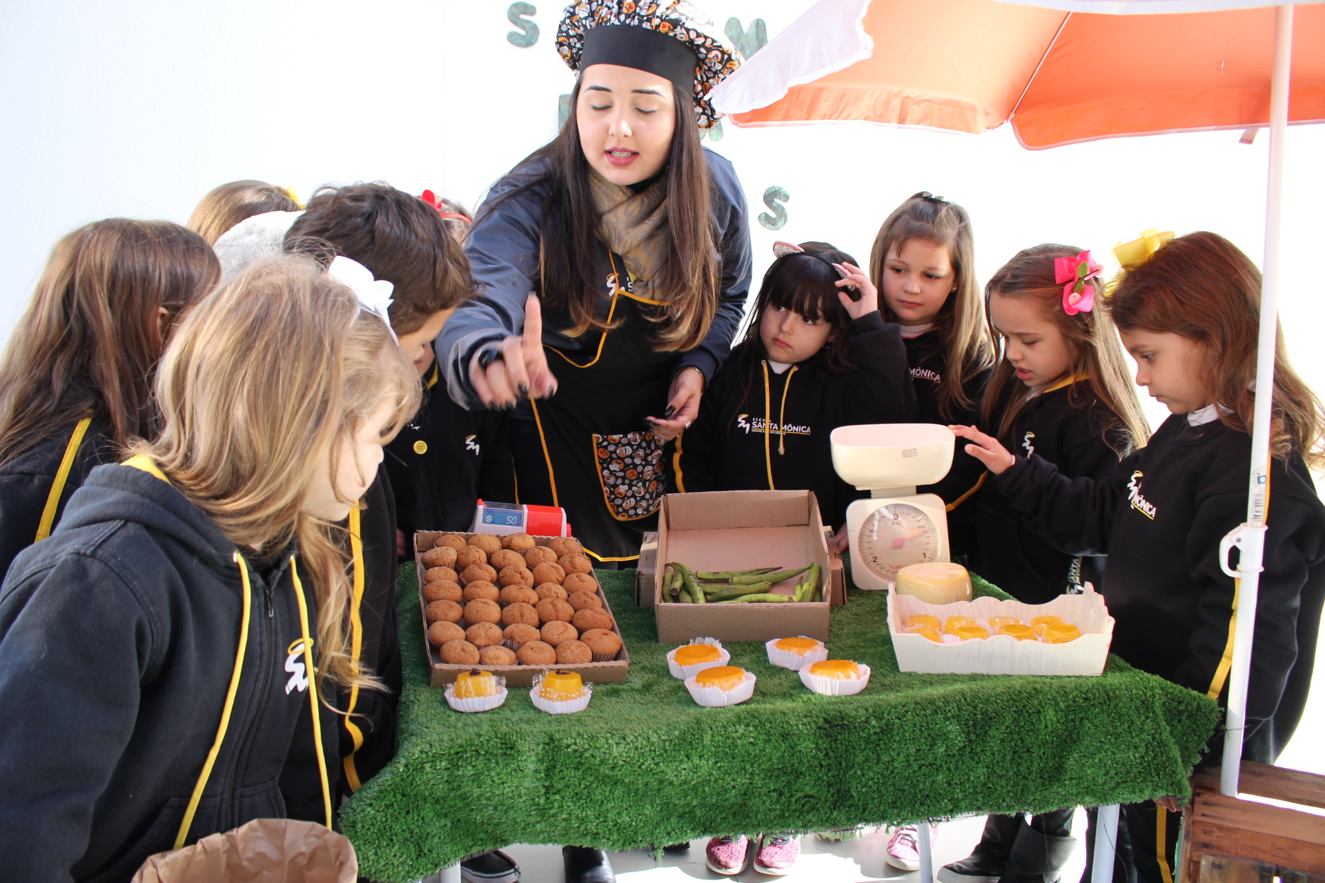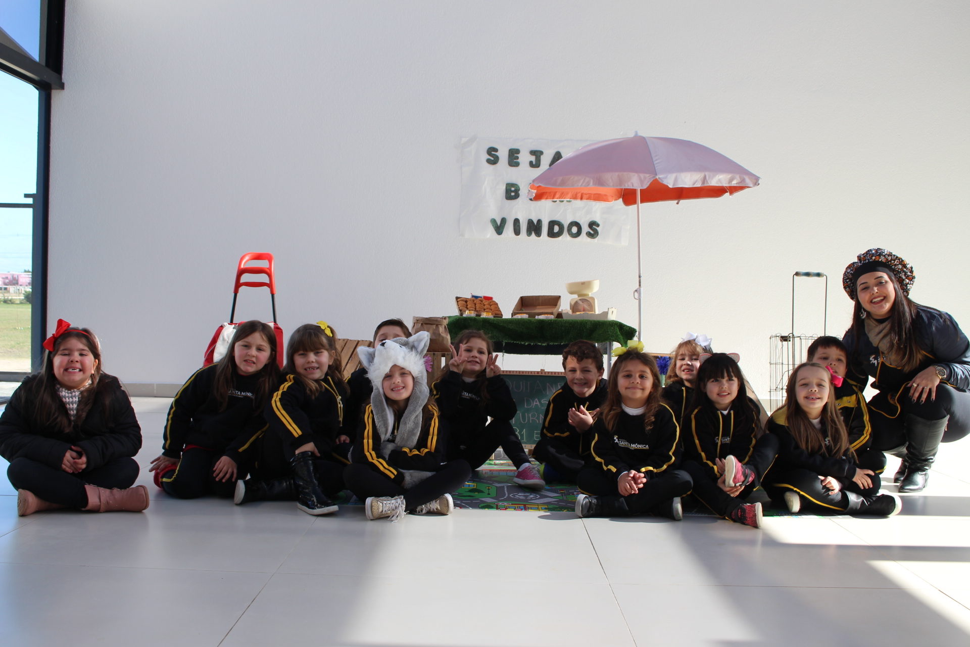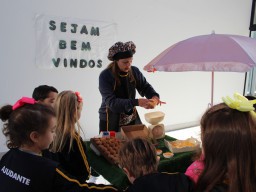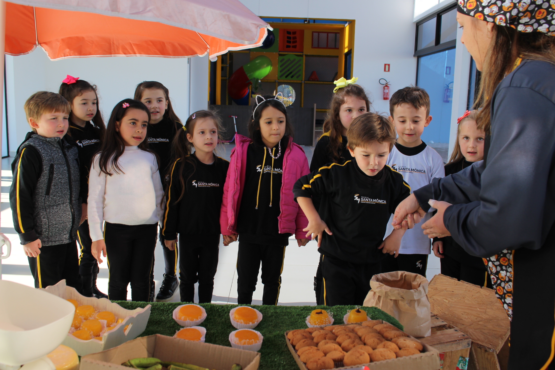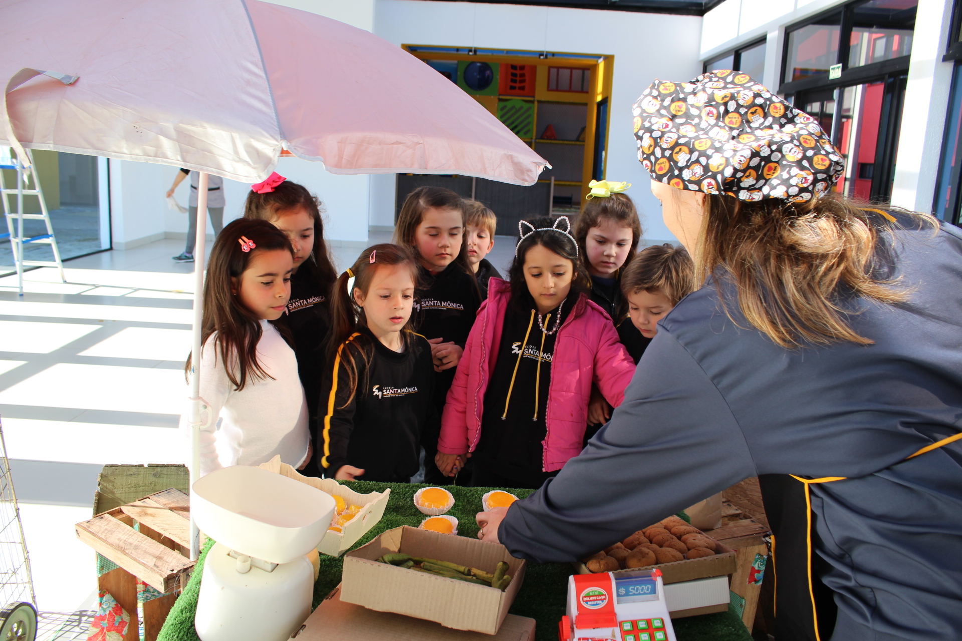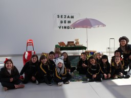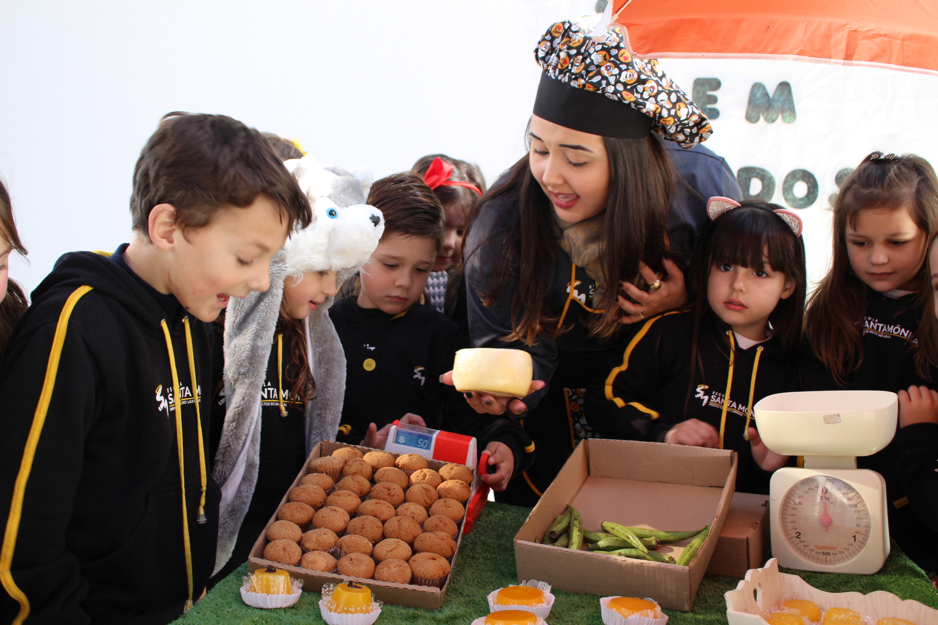 Os alunos do jardim III, turmas 31 e 32, estão conhecendo as letras do alfabeto e aprenderam palavras que começam com a letra "Q". Eles visitaram uma quitanda recheada de produtos especiais, como queijo, queijadinha, quindim e queque.