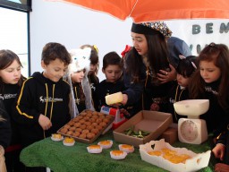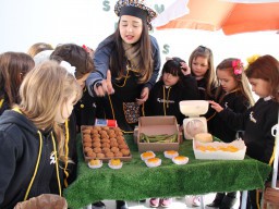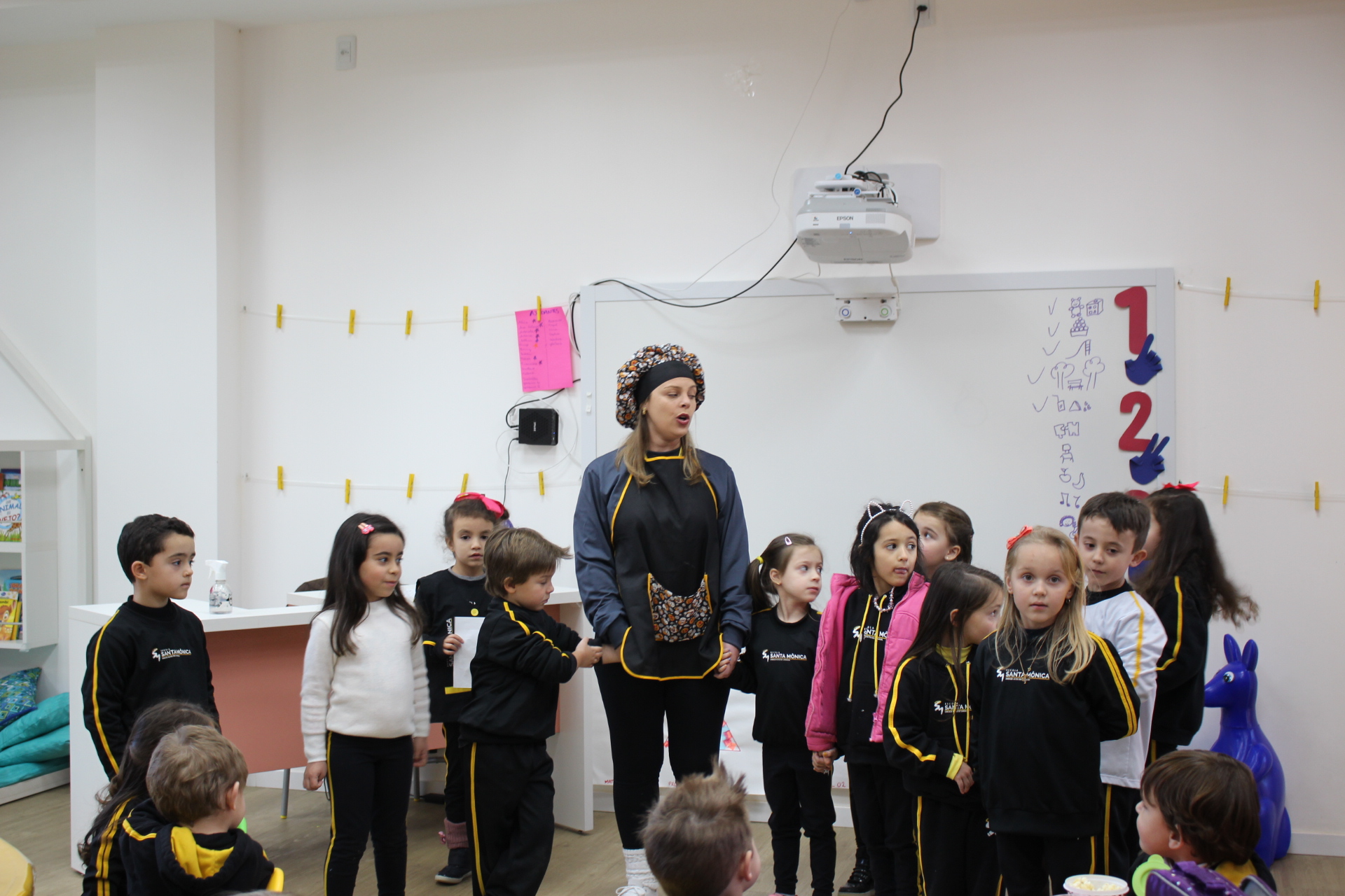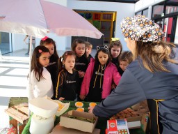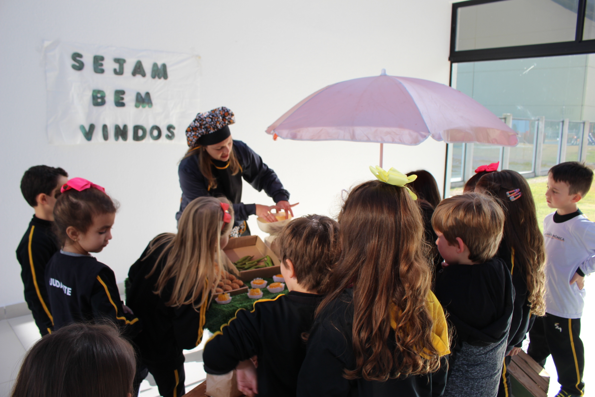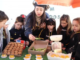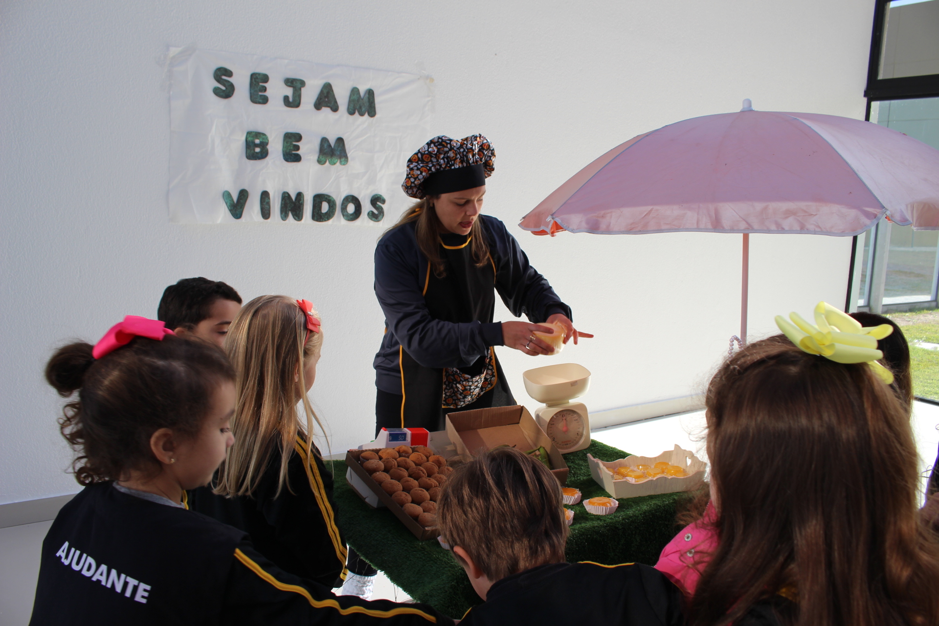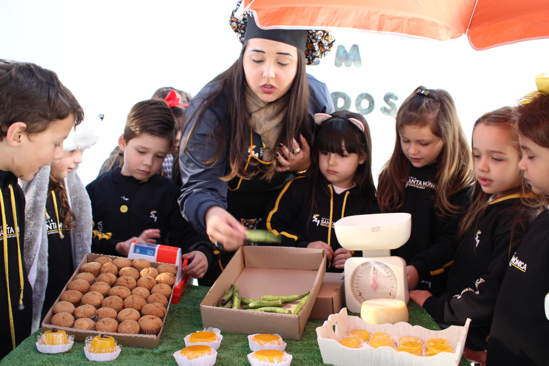 Os alunos do jardim III, turmas 31 e 32, estão conhecendo as letras do alfabeto e aprenderam palavras que começam com a letra "Q". Eles visitaram uma quitanda recheada de produtos especiais, como queijo, queijadinha, quindim e queque.