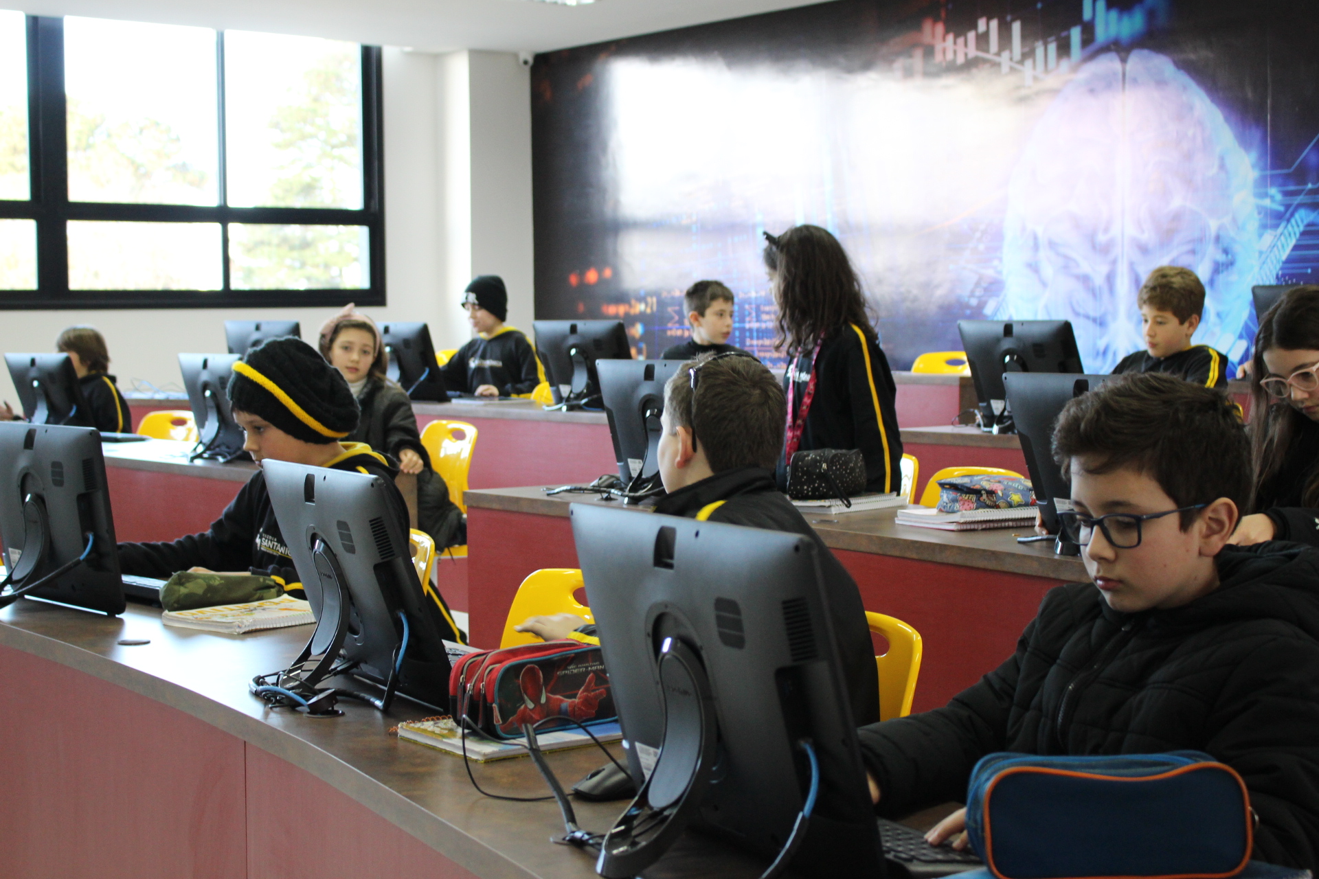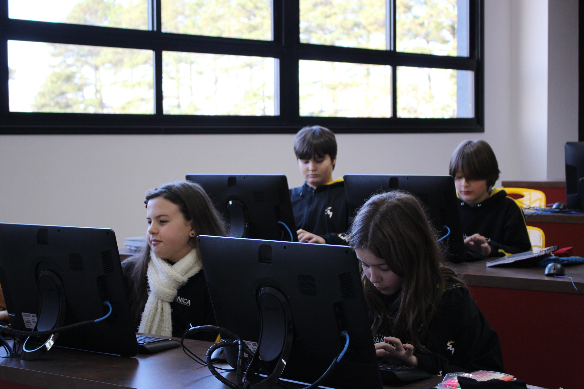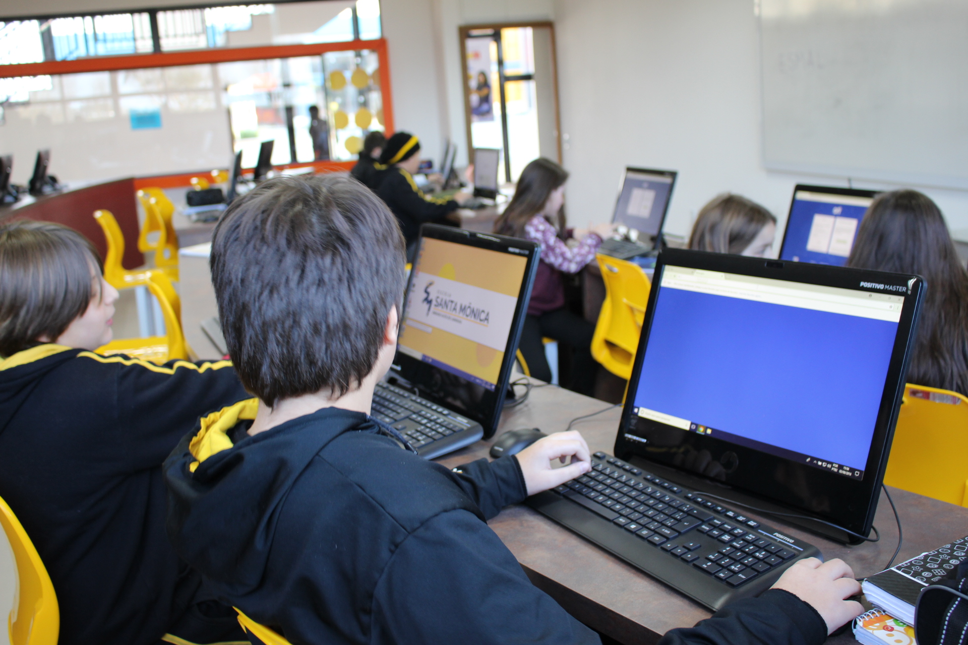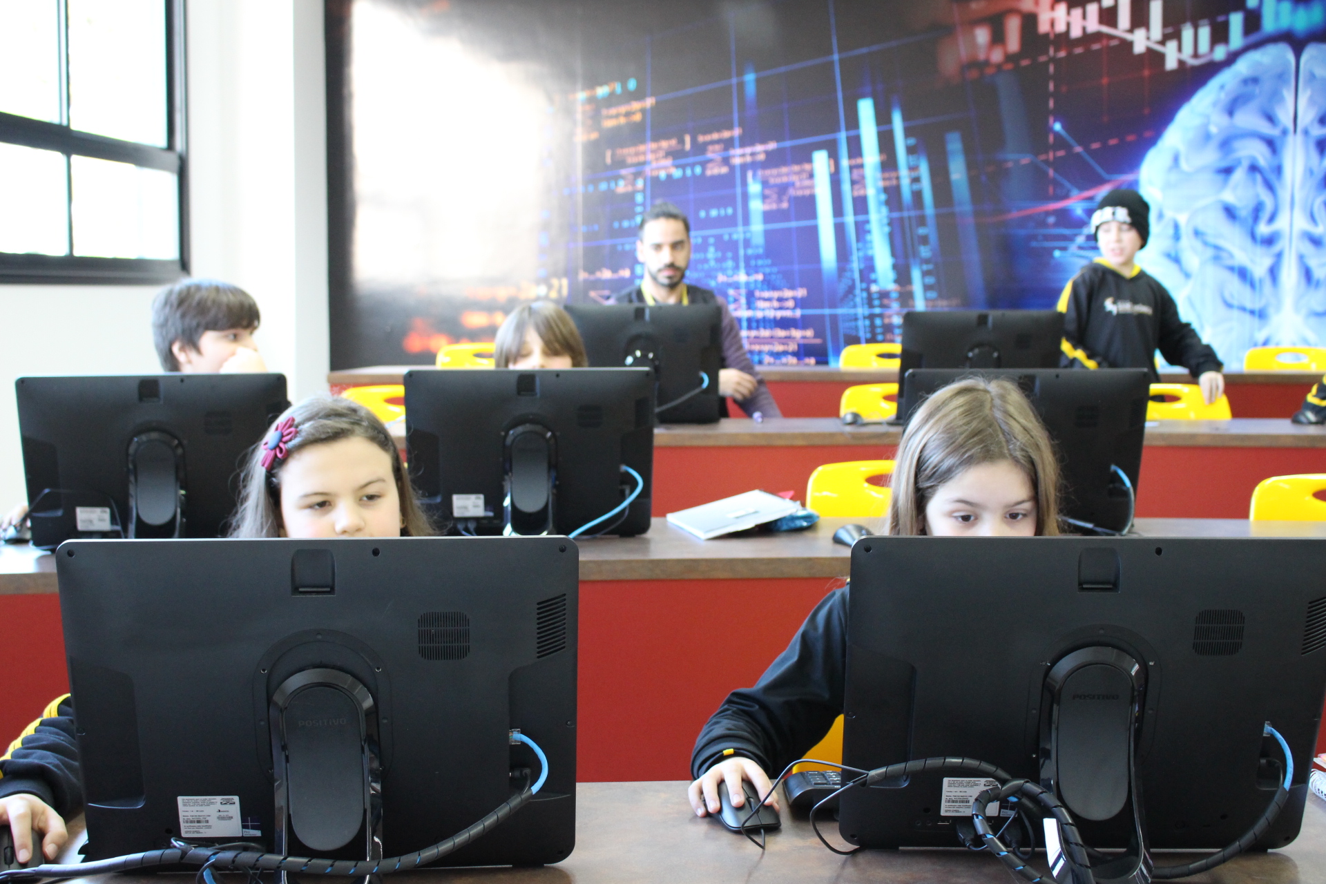 Depois de utilizar o espaço da Matemágica para revisar os conceitos sobre fração e classes numéricas, os alunos de 5º ano visitaram o Laboratório de Informática e acessaram o ambiente digital do Positivo On para resolver trilhas sobre o conteúdo.
