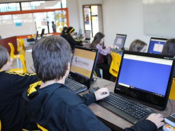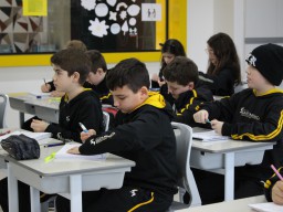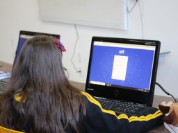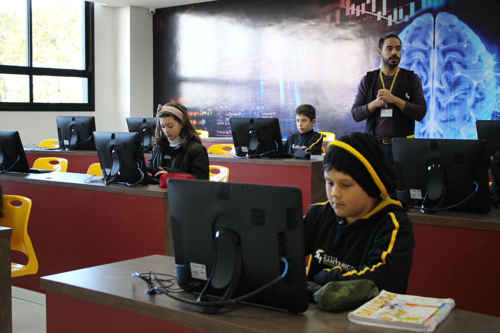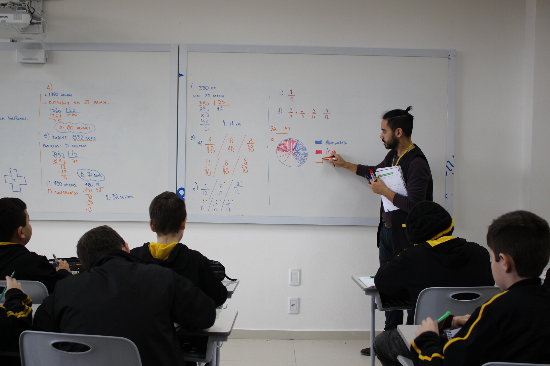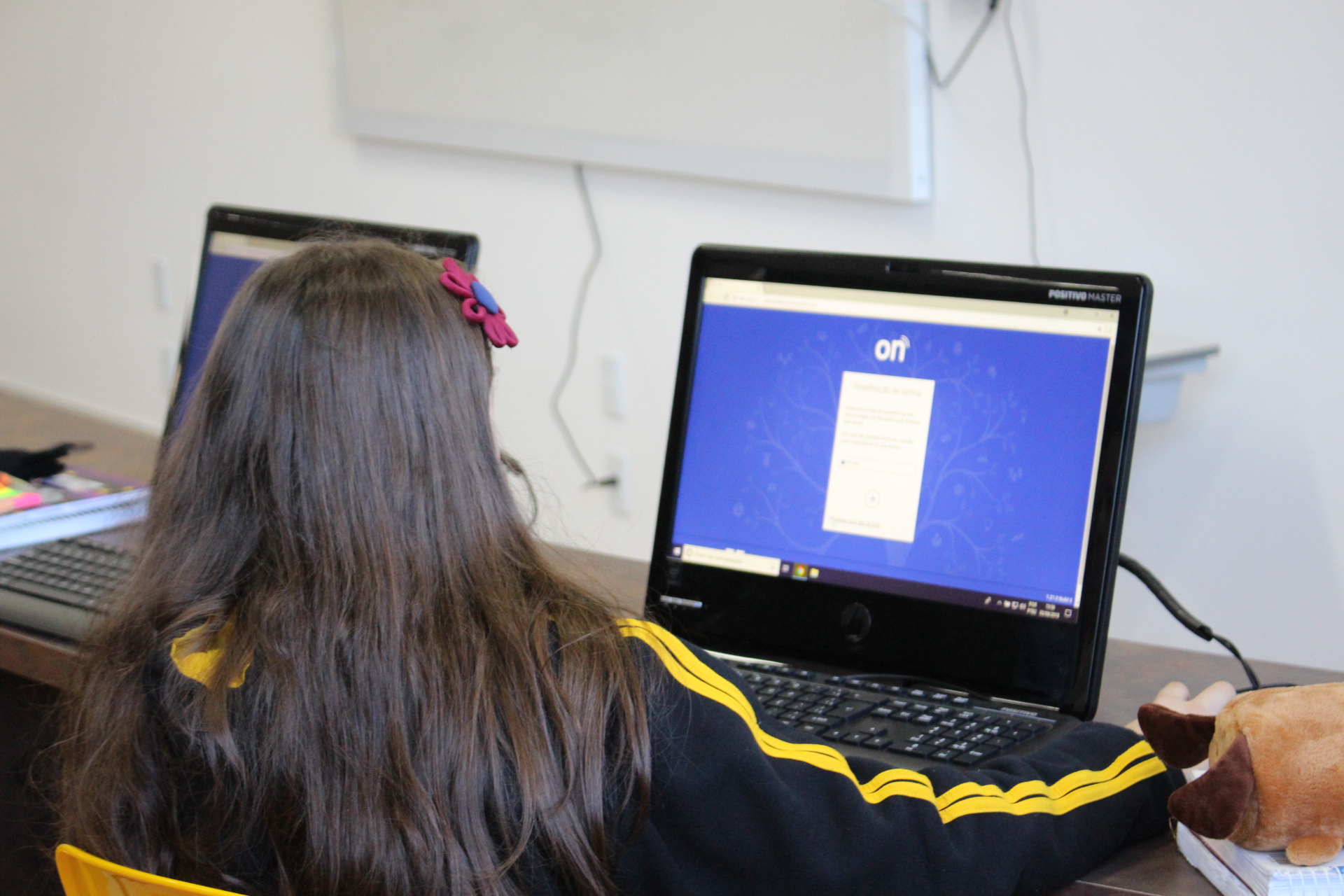 Depois de utilizar o espaço da Matemágica para revisar os conceitos sobre fração e classes numéricas, os alunos de 5º ano visitaram o Laboratório de Informática e acessaram o ambiente digital do Positivo On para resolver trilhas sobre o conteúdo.