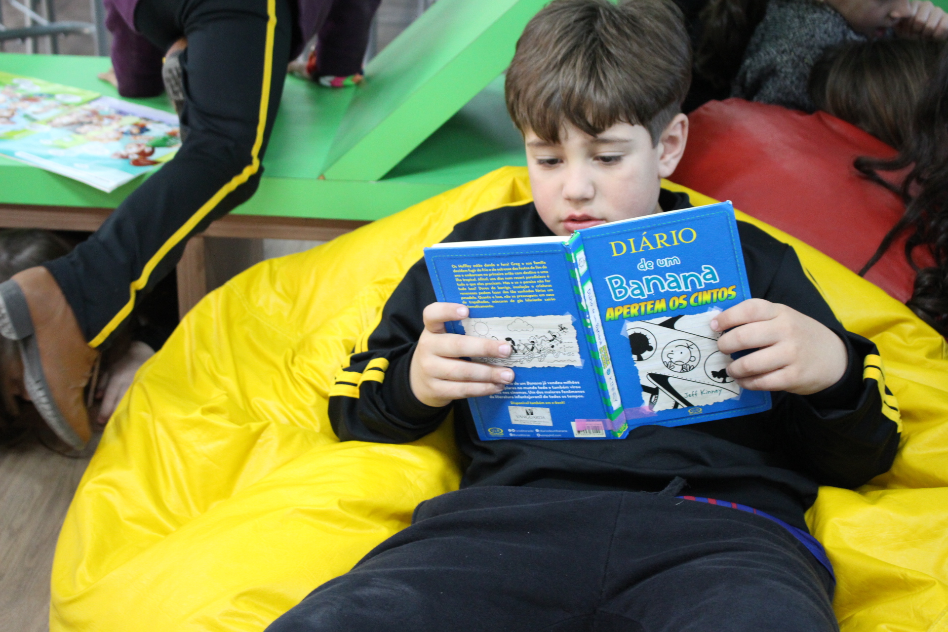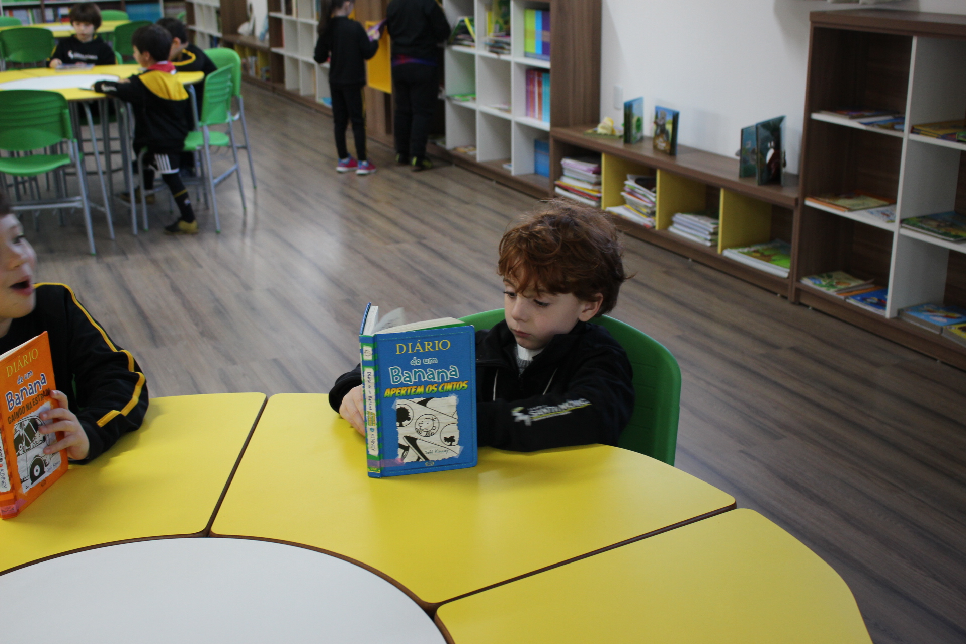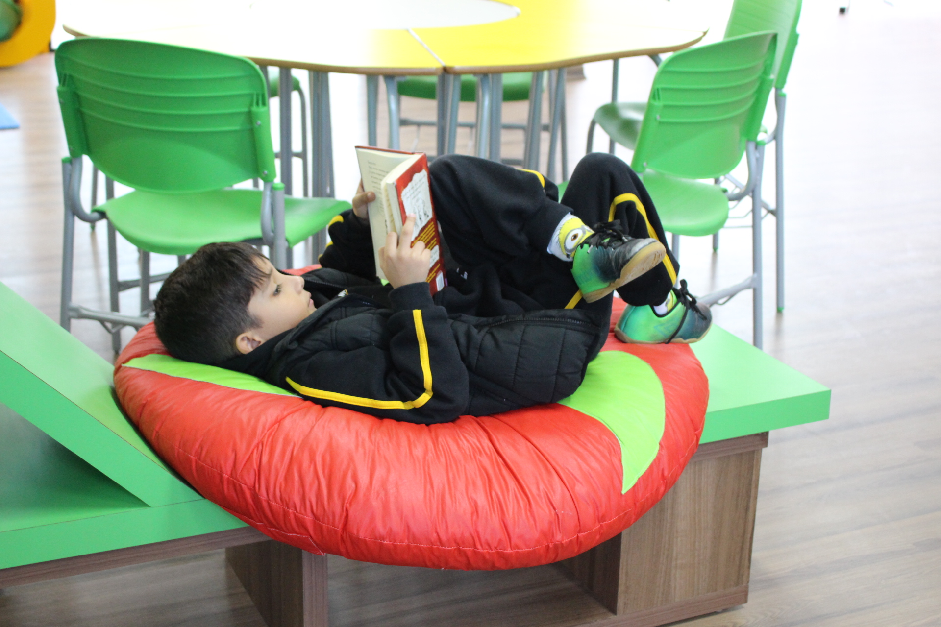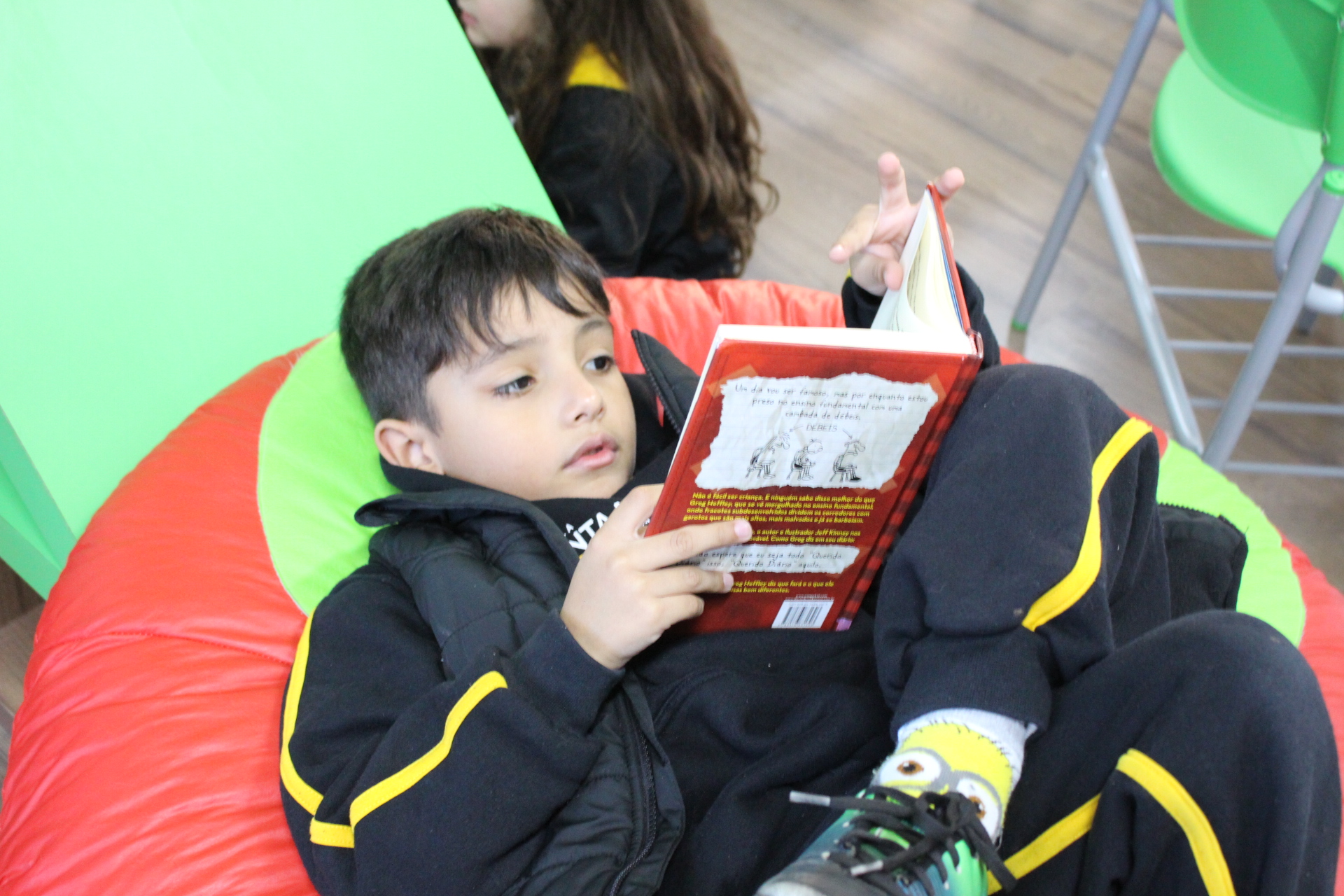 Os alunos de 1º ano do Ensino Fundamental escolheram seus livros preferidos e aproveitaram o ambiente inspirador do Colab Space para exercitar a leitura e a reflexão!