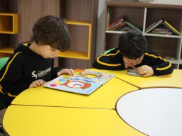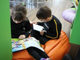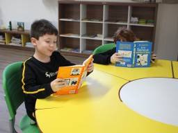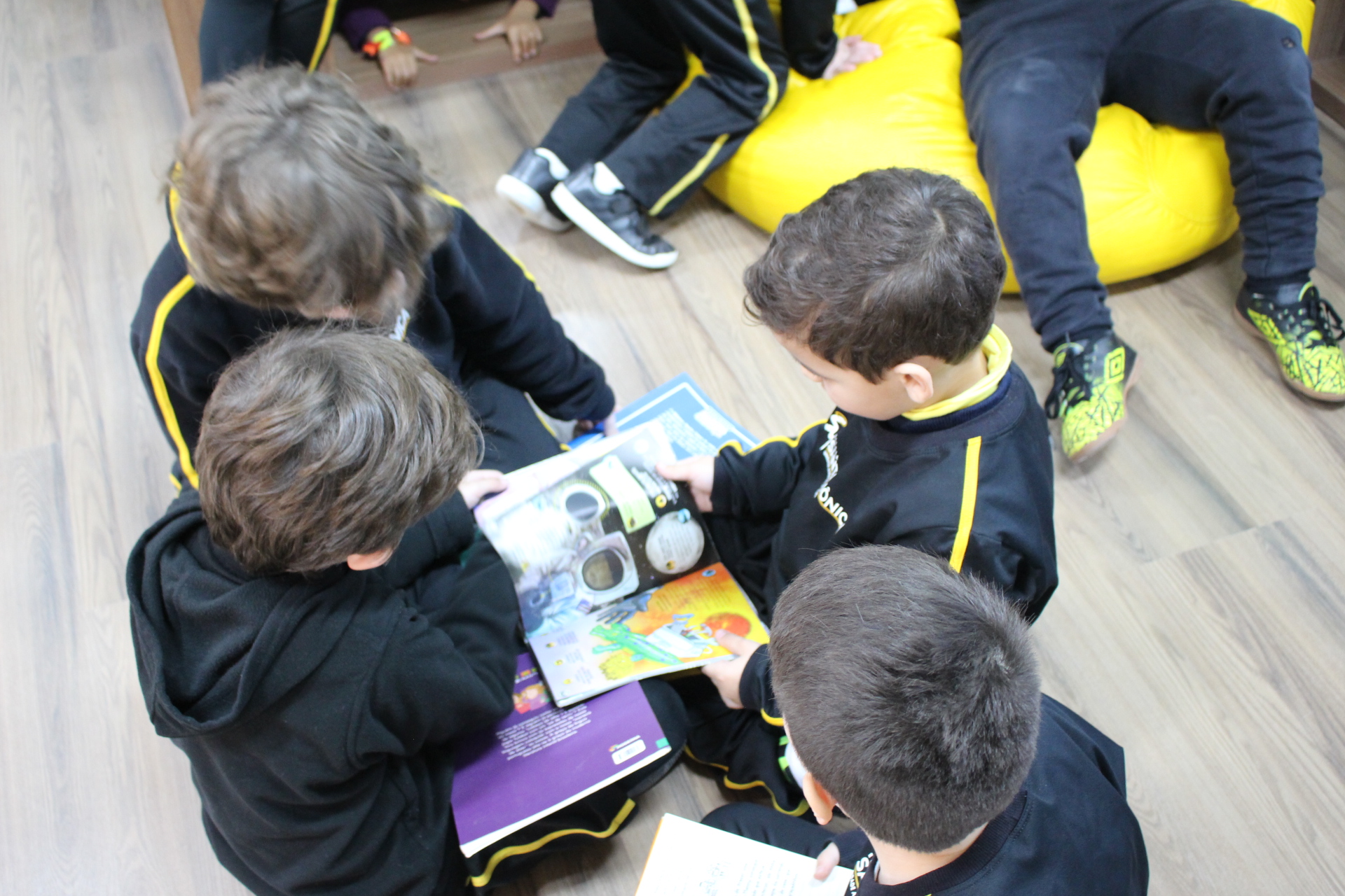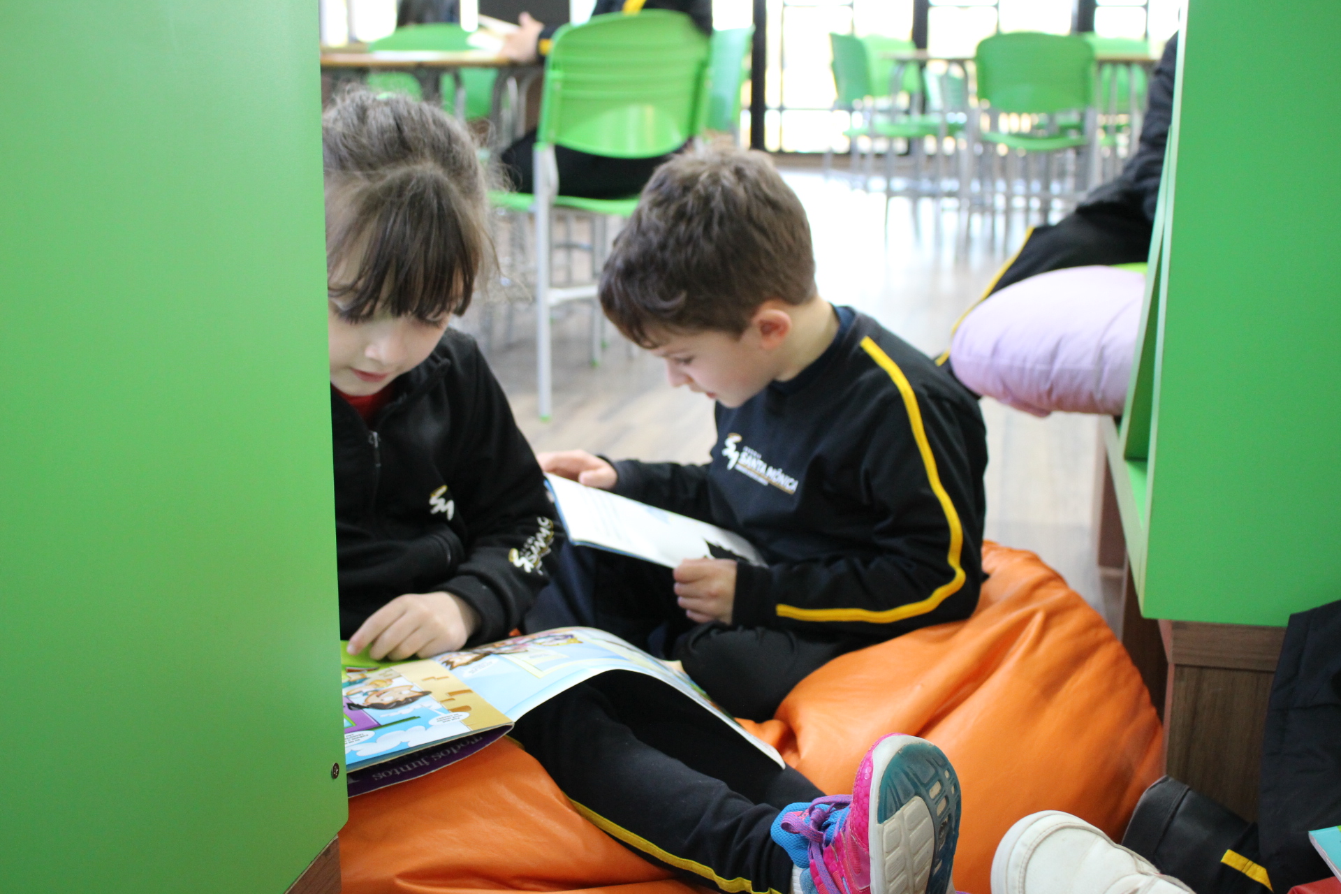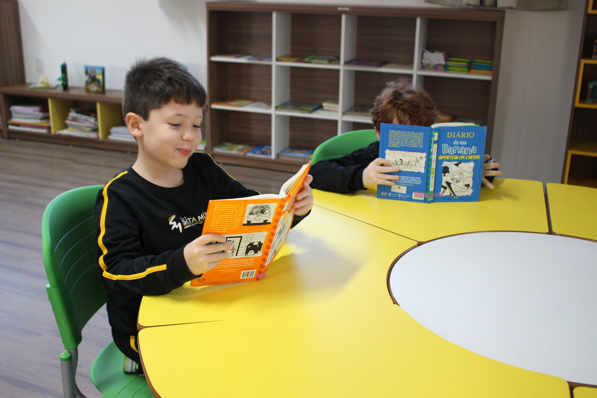 Os alunos de 1º ano do Ensino Fundamental escolheram seus livros preferidos e aproveitaram o ambiente inspirador do Colab Space para exercitar a leitura e a reflexão!