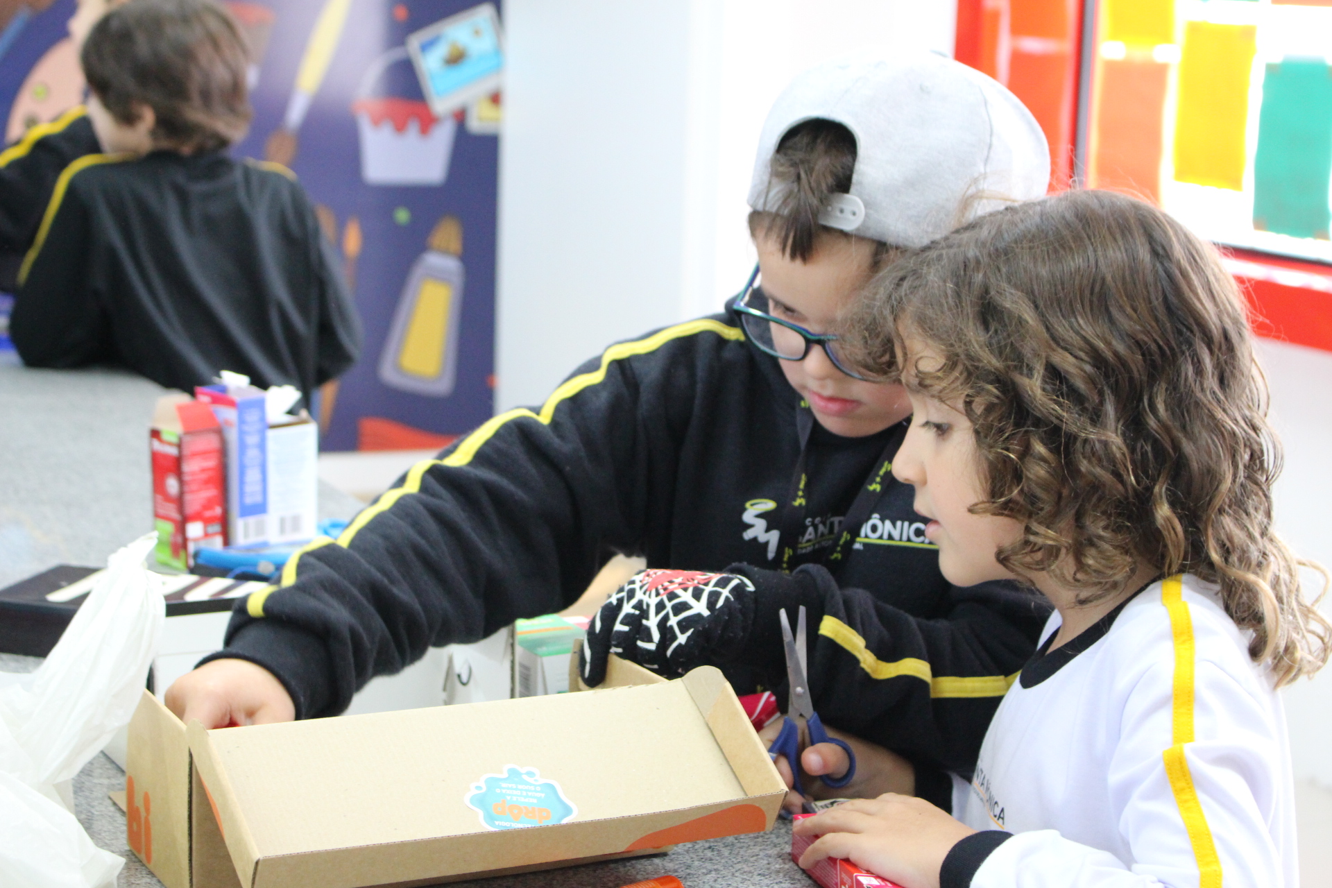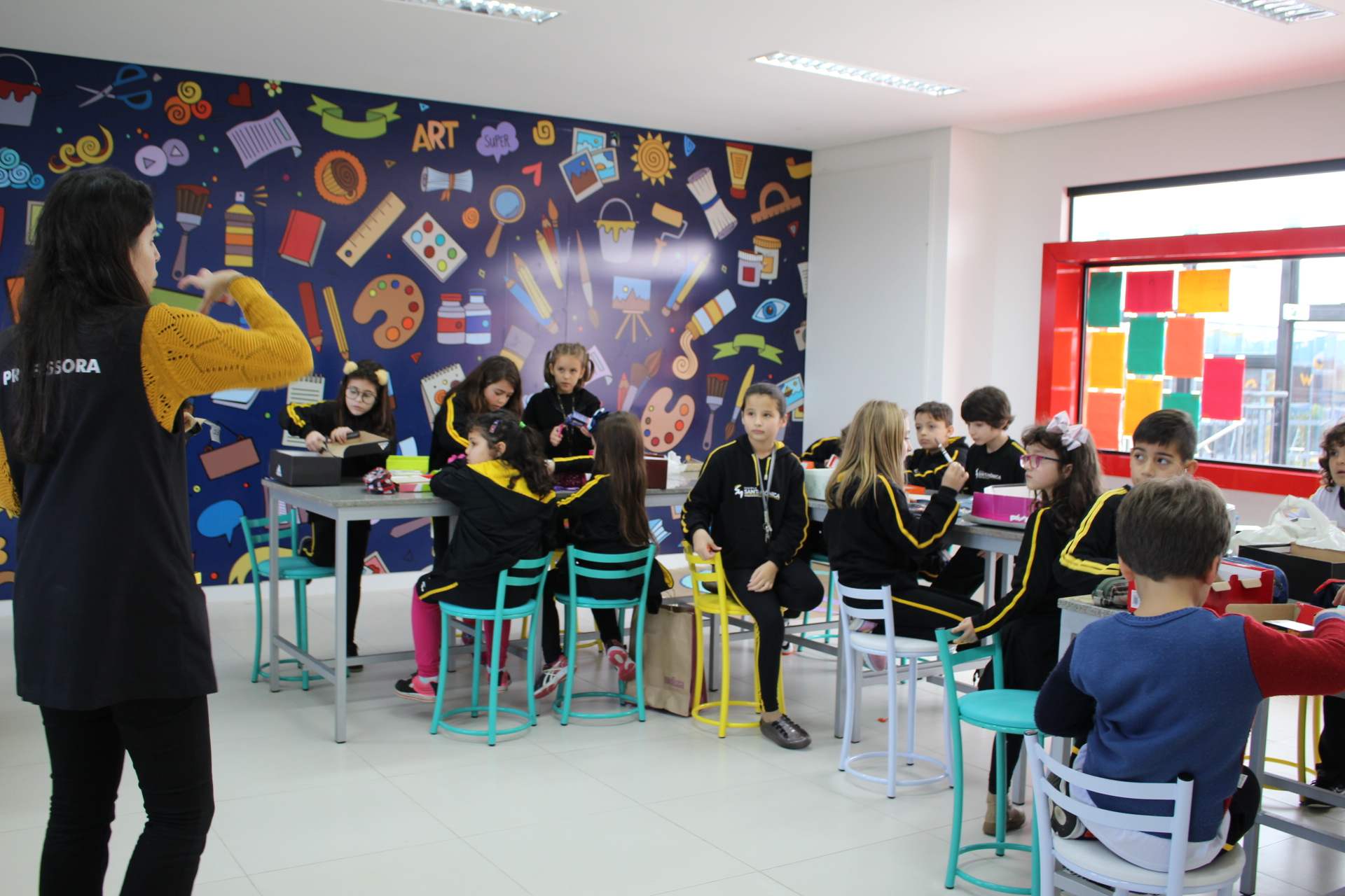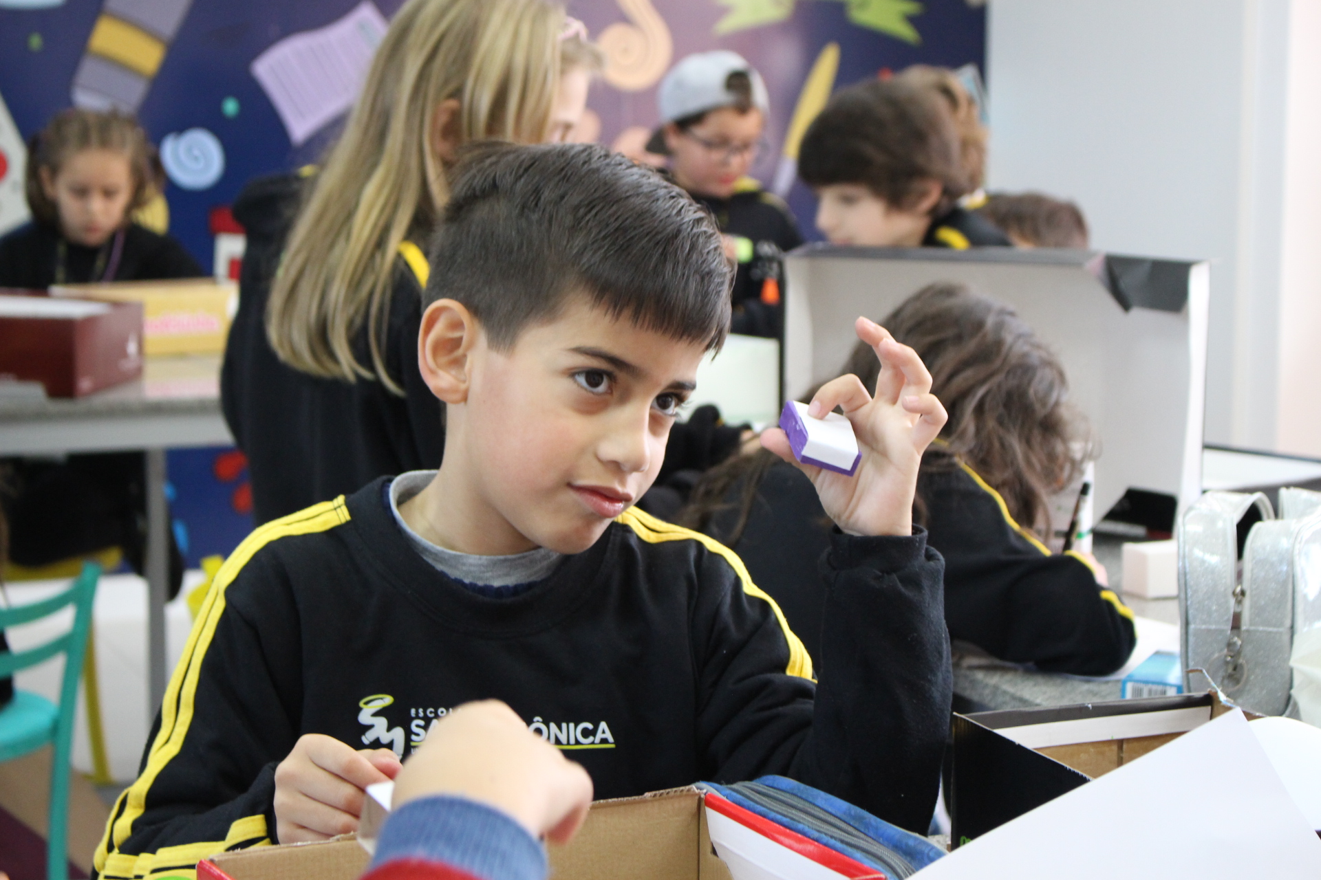 Os alunos de 2º ano do Ensino Fundamental utilizaram os recursos do Espaço da Critividade e produziram maquetes representando a sala de aula. Assim, eles compreenderam na prática o conteúdo sobre plantas geográficas.