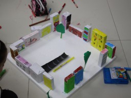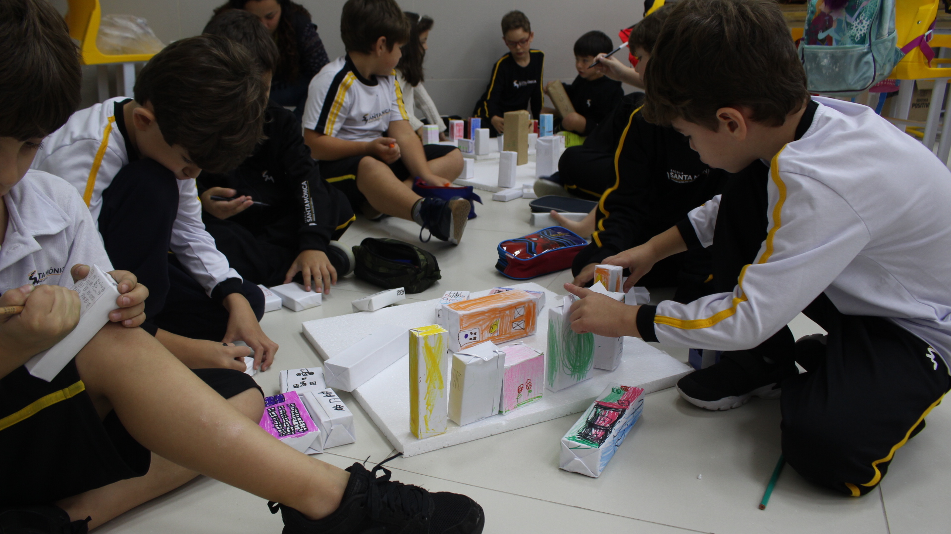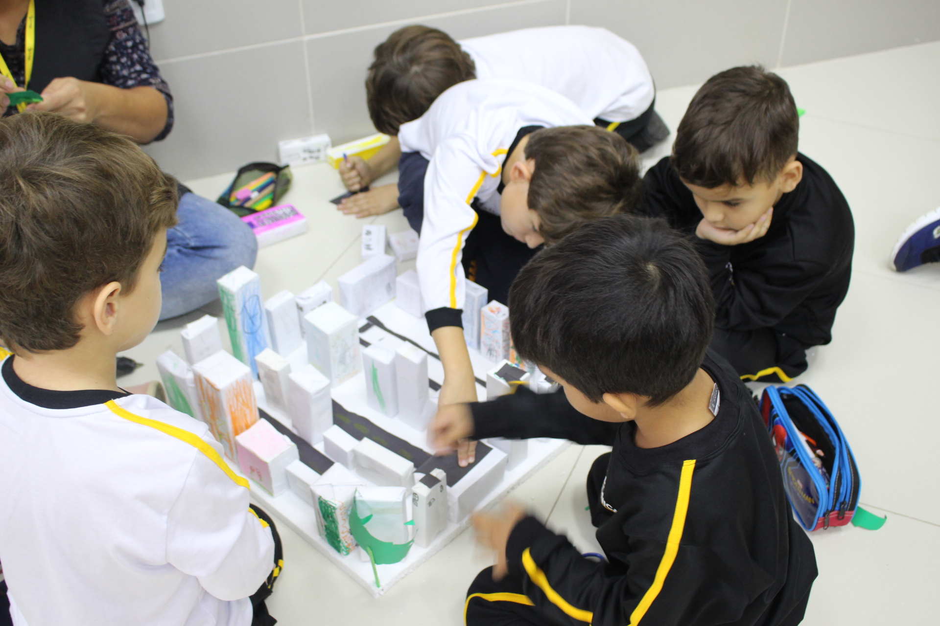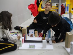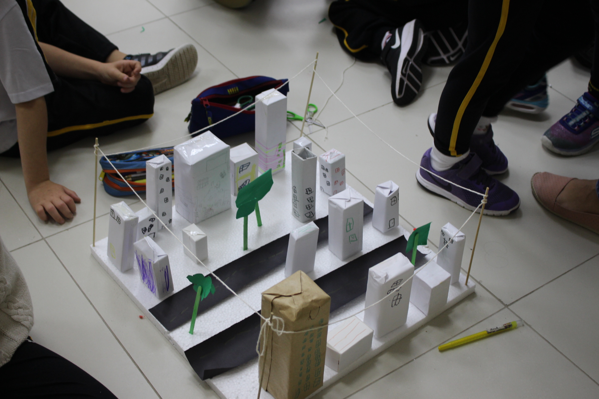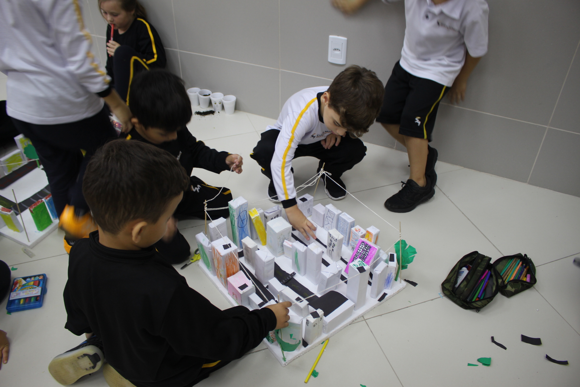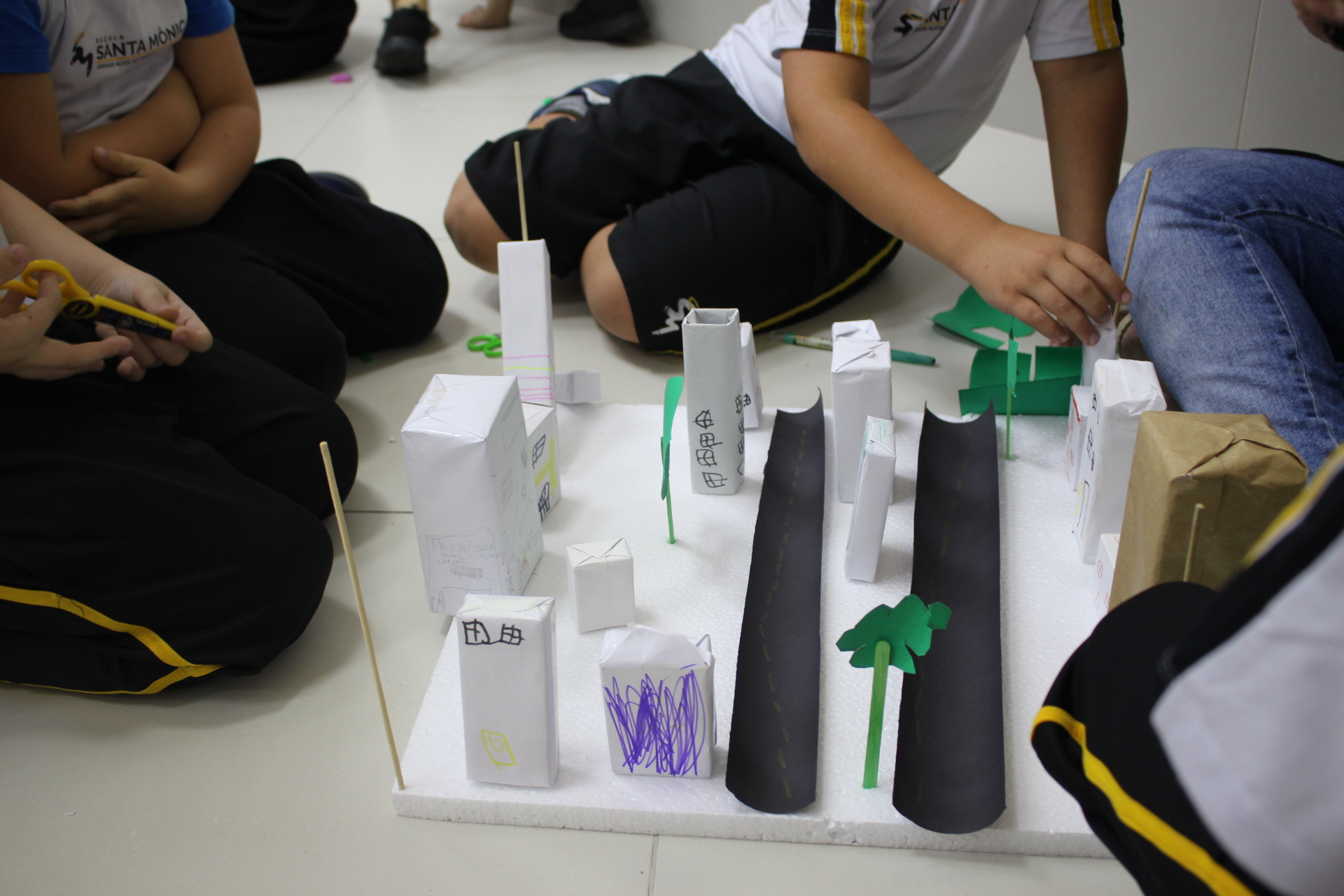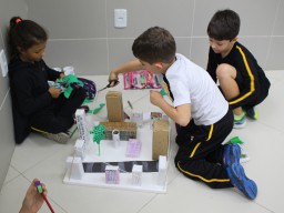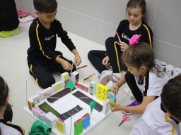 Para trabalhar os conceitos de moradia e endereço, os alunos de 1º ano do Ensino Fundamental construíram maquetes representando diferentes tipos de ruas.