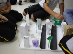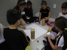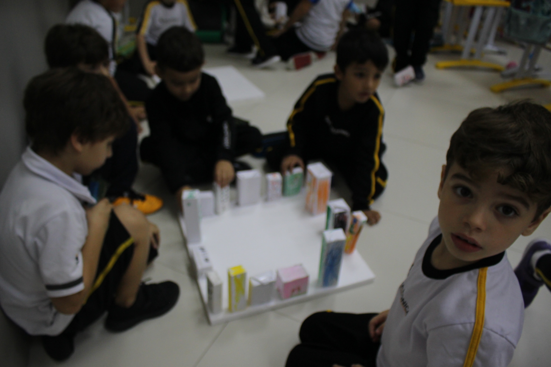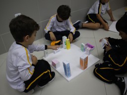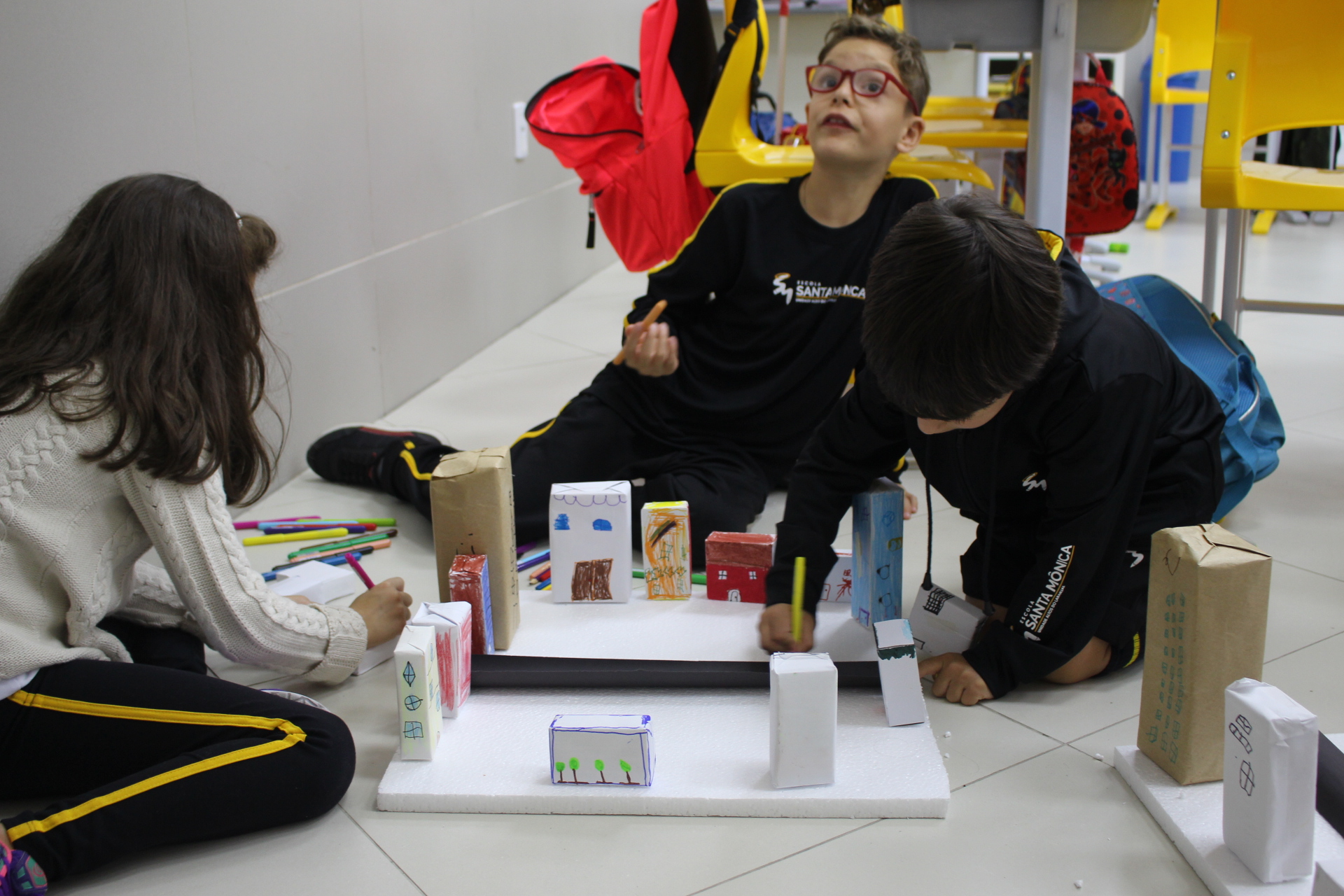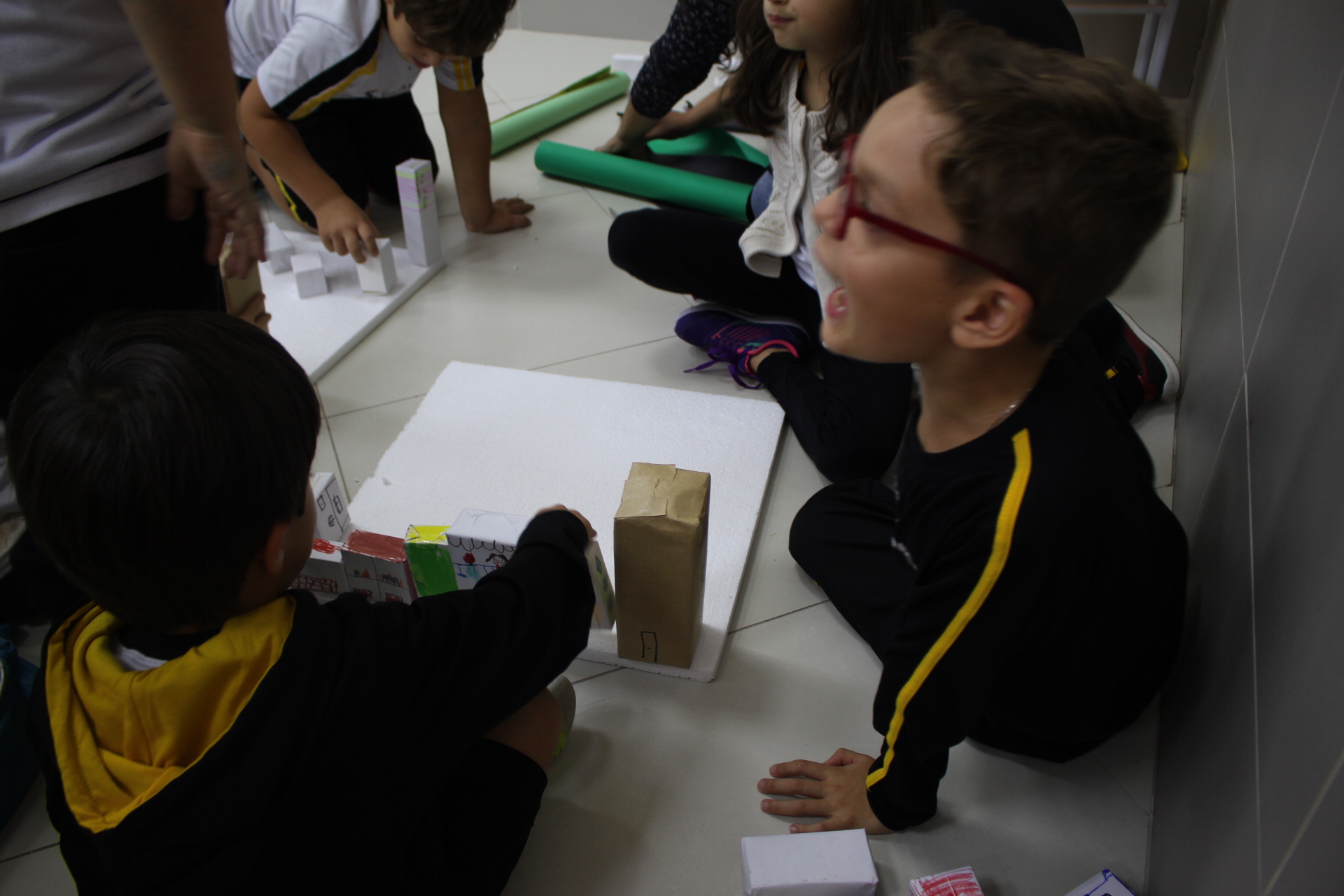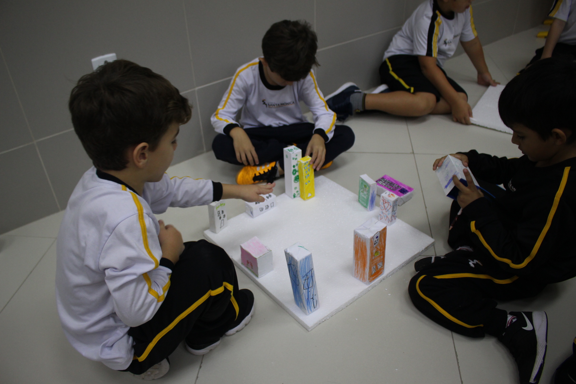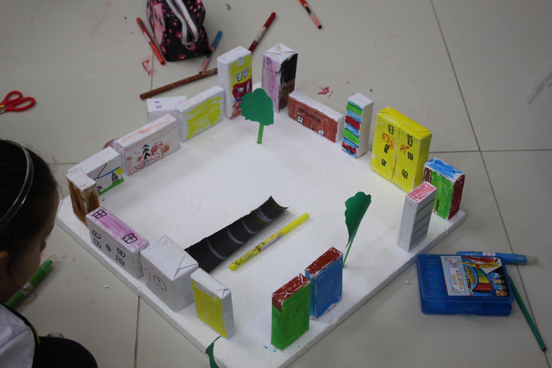 Para trabalhar os conceitos de moradia e endereço, os alunos de 1º ano do Ensino Fundamental construíram maquetes representando diferentes tipos de ruas.