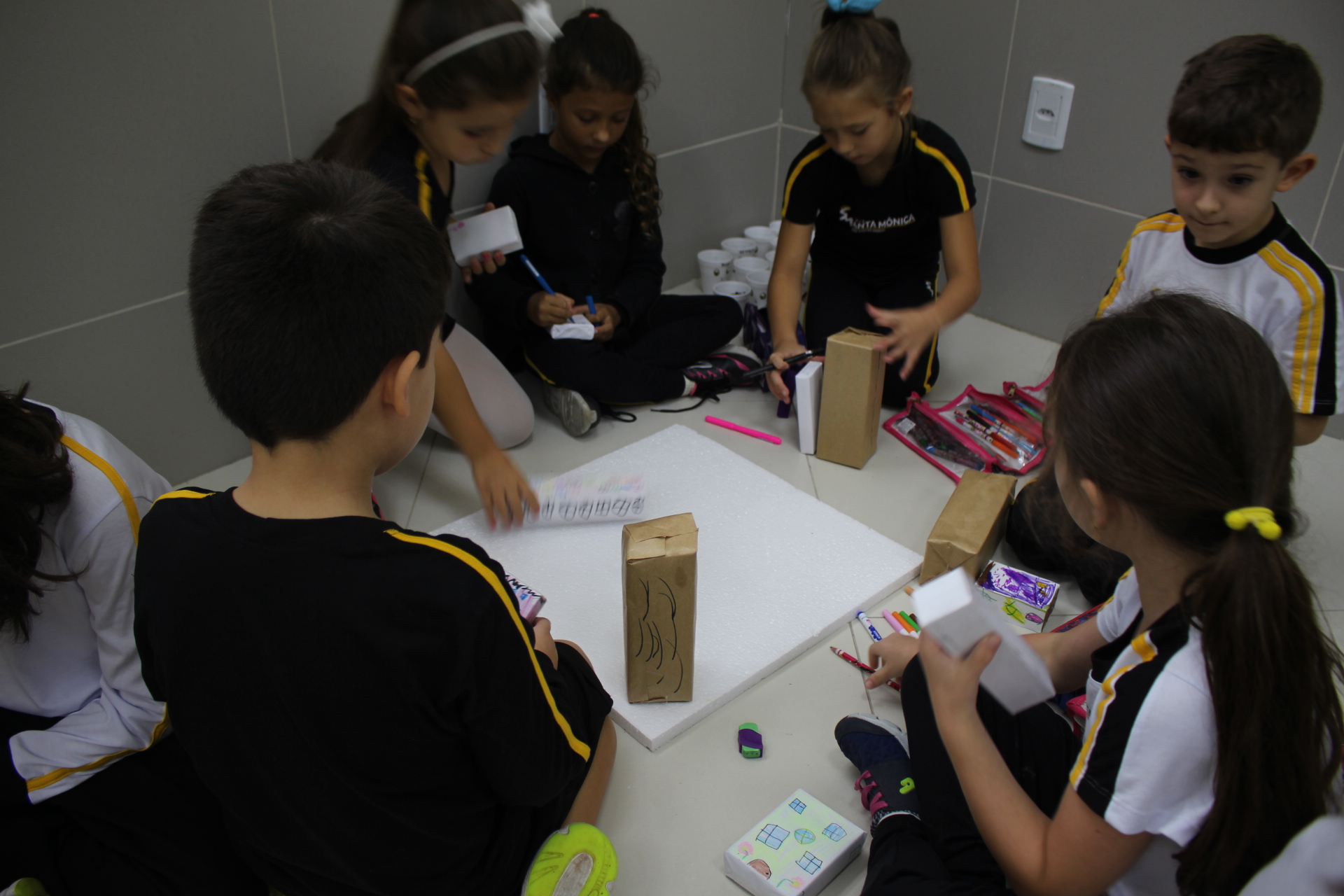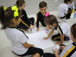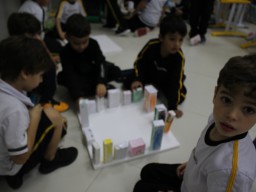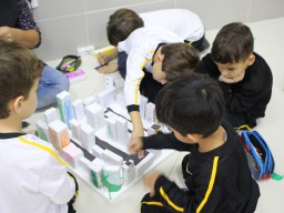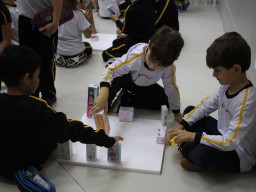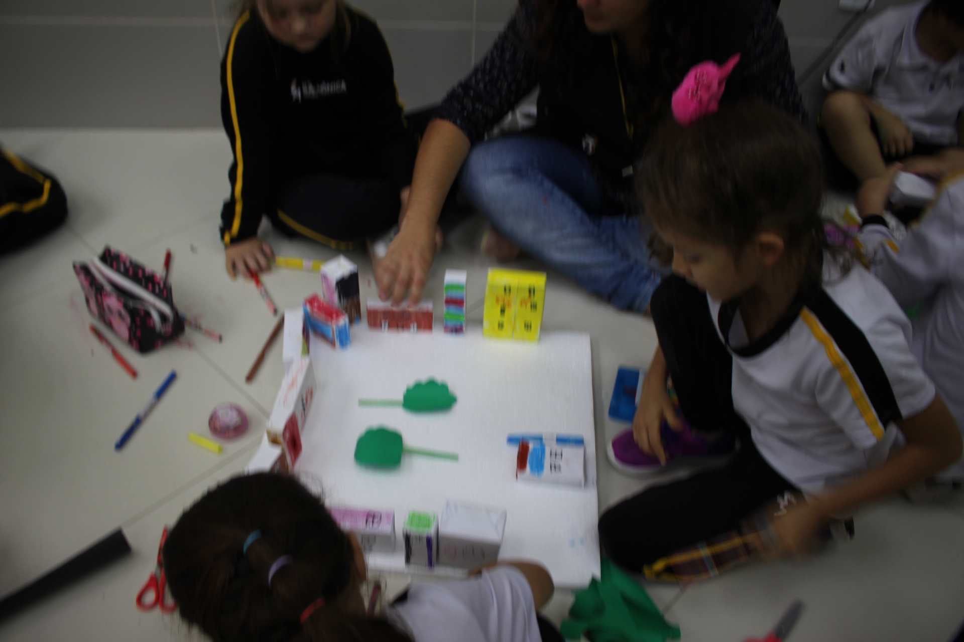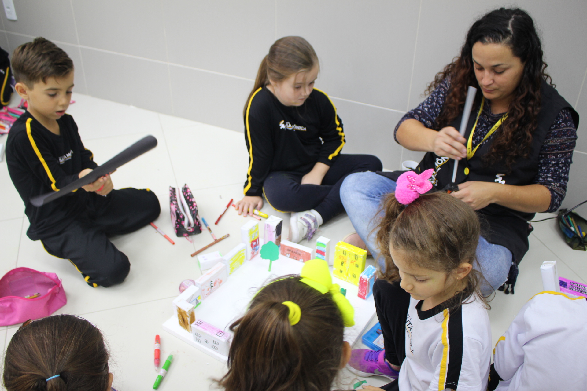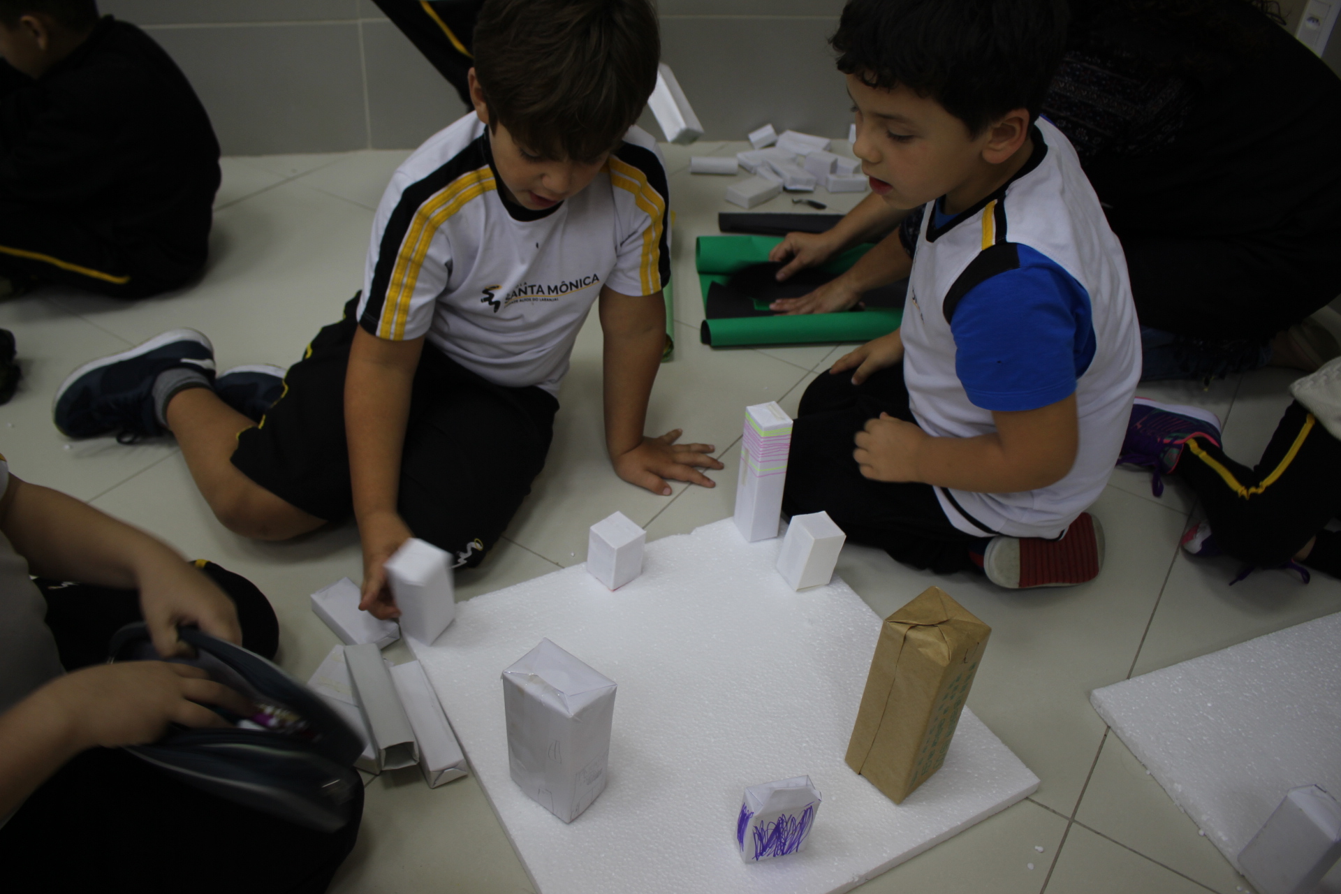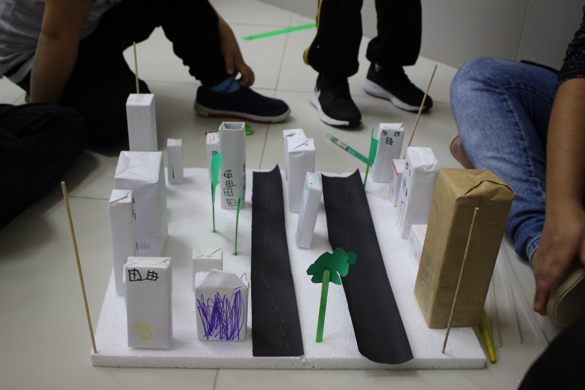 Para trabalhar os conceitos de moradia e endereço, os alunos de 1º ano do Ensino Fundamental construíram maquetes representando diferentes tipos de ruas.
