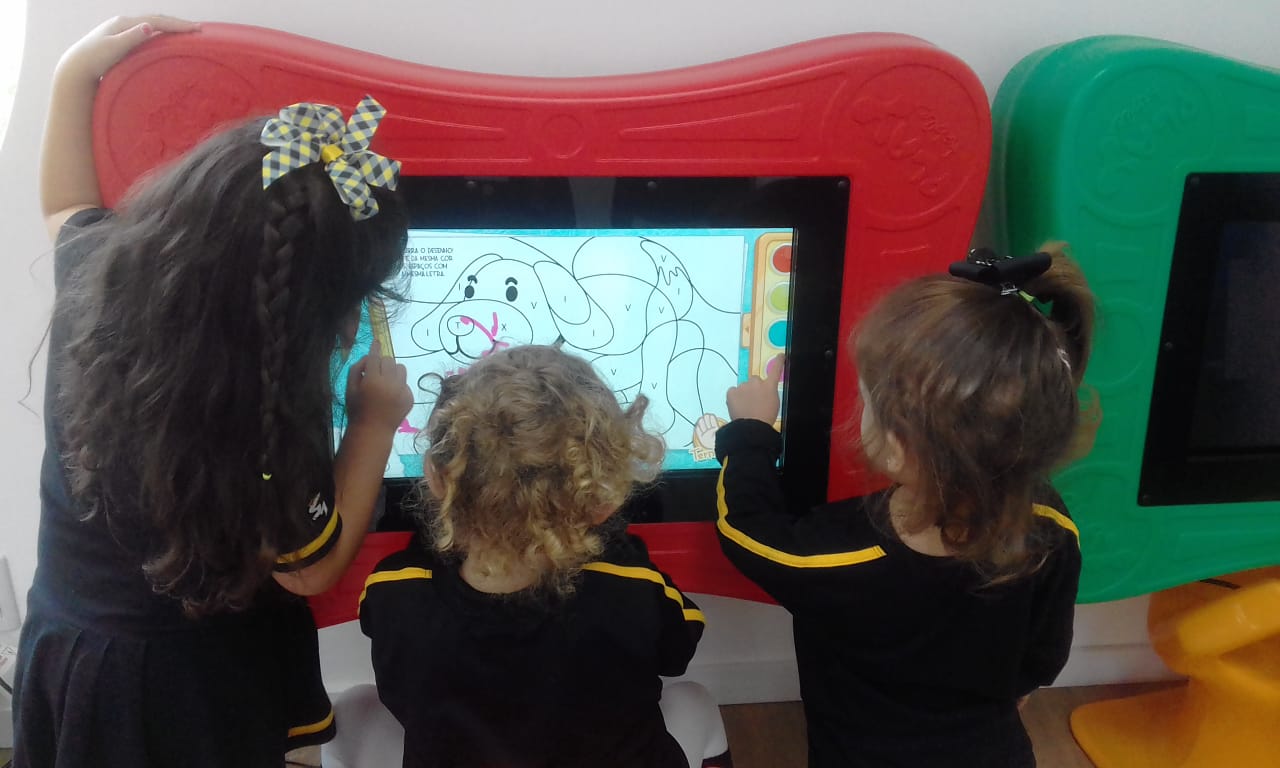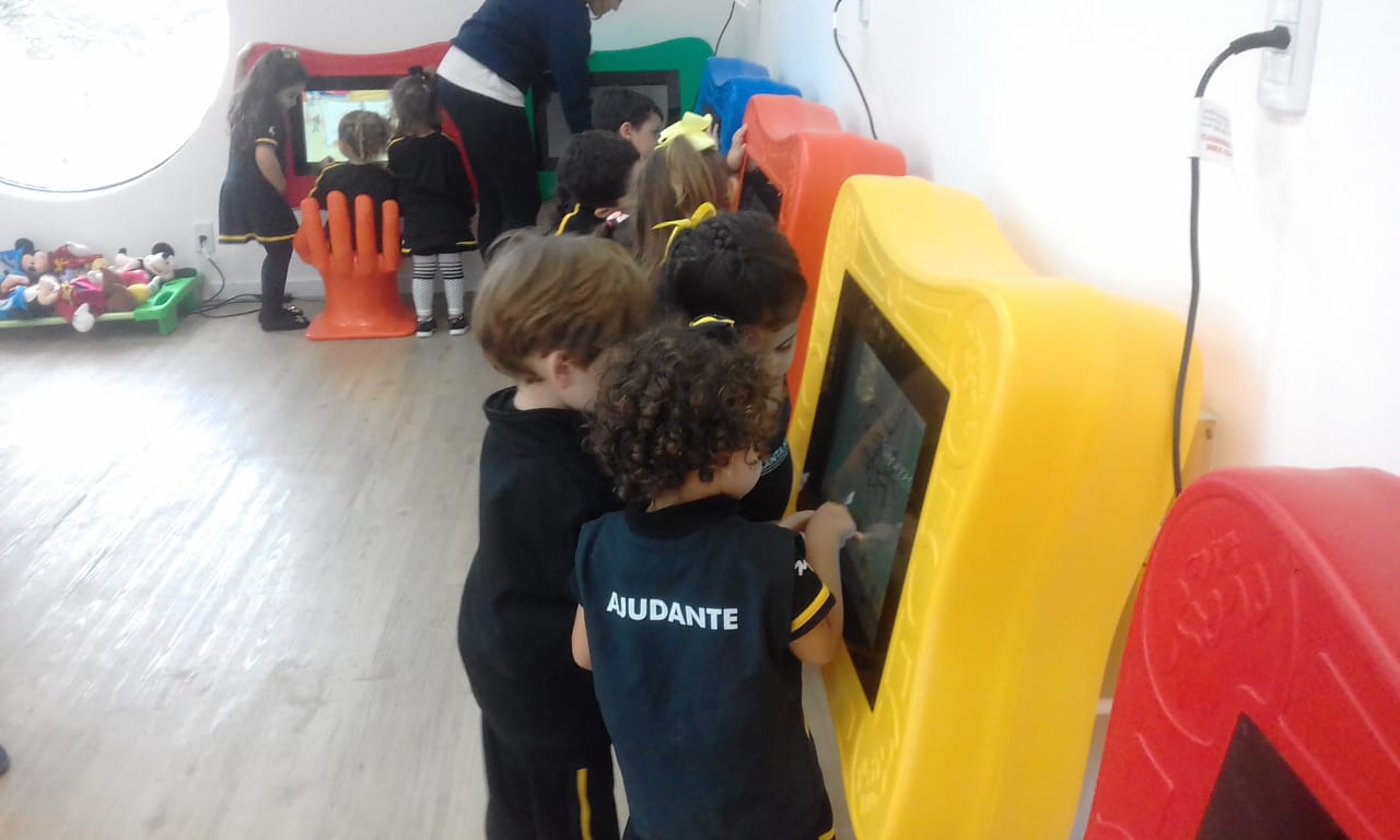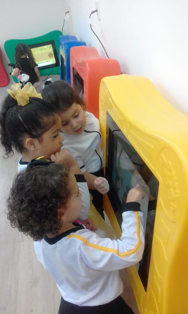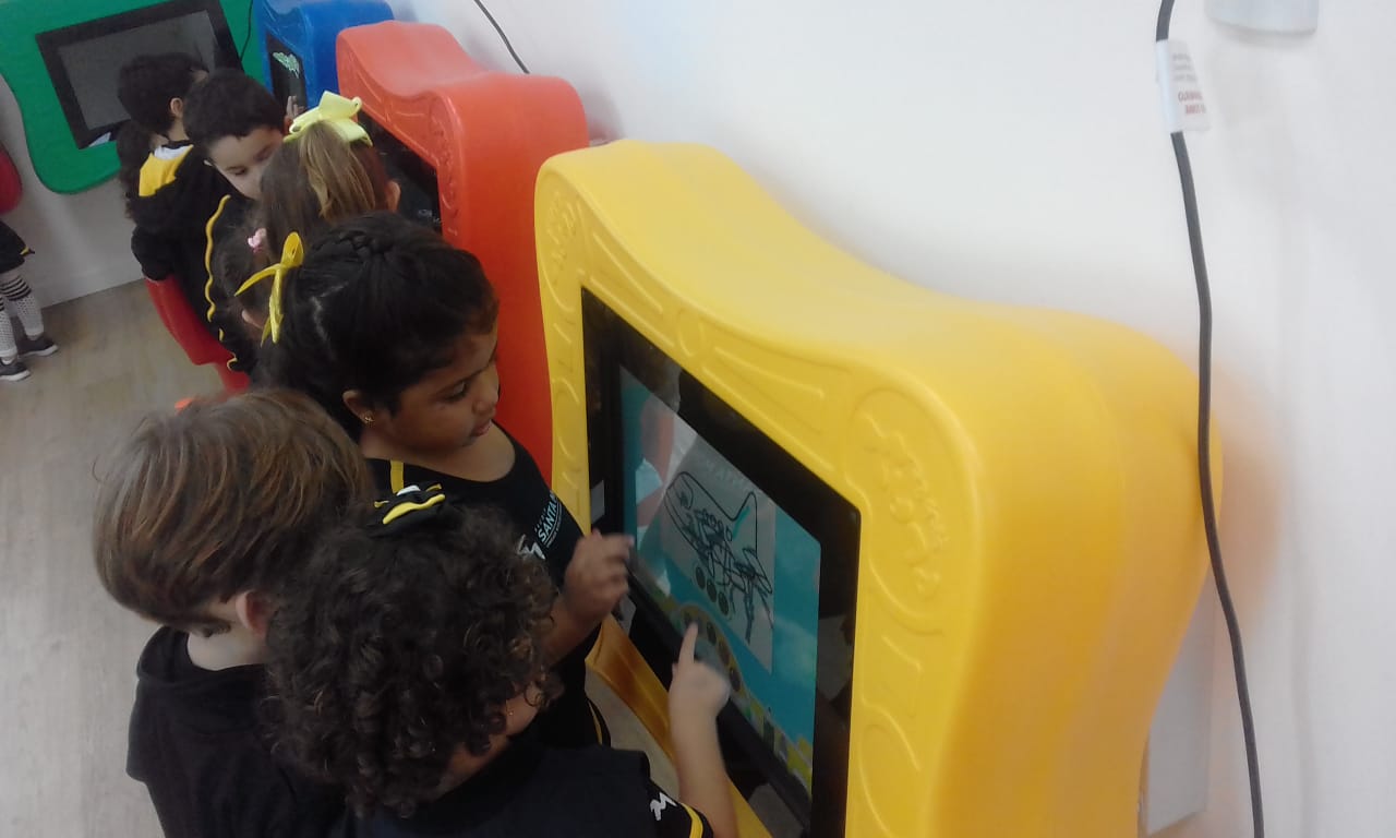 Através dos jogos lúdicos e das telas interativas do Espaço Científico, os pequenos do Jardim I puderam exercitar os conhecimentos sobre cores e formas geométricas de uma maneira muito divertida.
