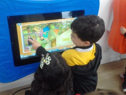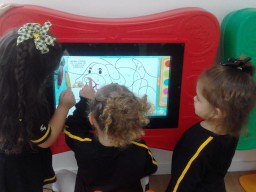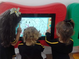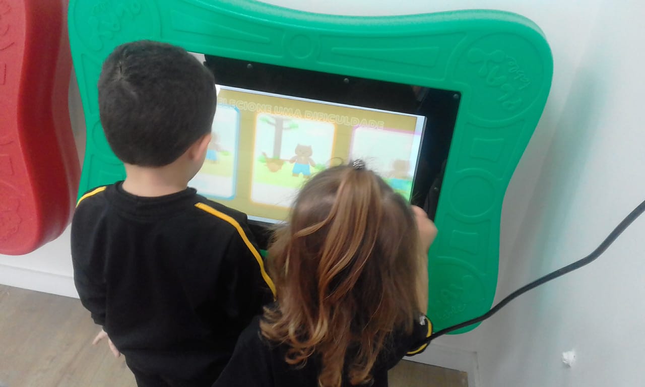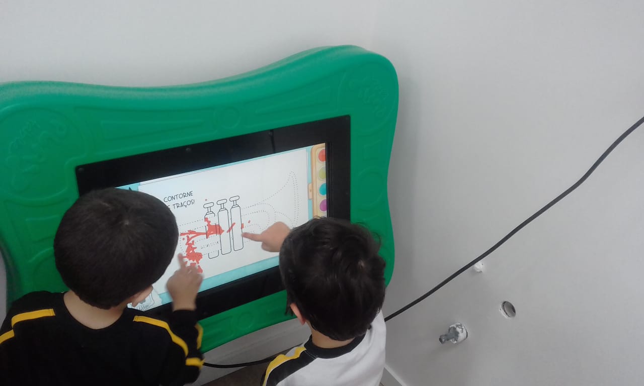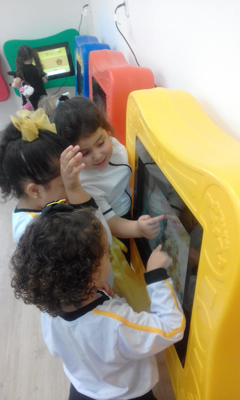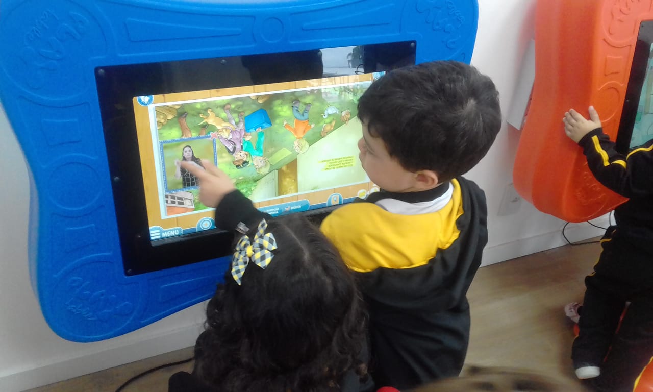Através dos jogos lúdicos e das telas interativas do Espaço Científico, os pequenos do Jardim I puderam exercitar os conhecimentos sobre cores e formas geométricas de uma maneira muito divertida.