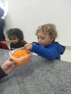 Nossos pequenos do Maternal visitaram o espaço Gourmet Kids e ajudaram as professoras a preparar um delicioso brigadeiro de cenoura! Além da diversão, eles trabalharam relações de quantidade a partir dos ingredientes utilizados.