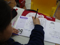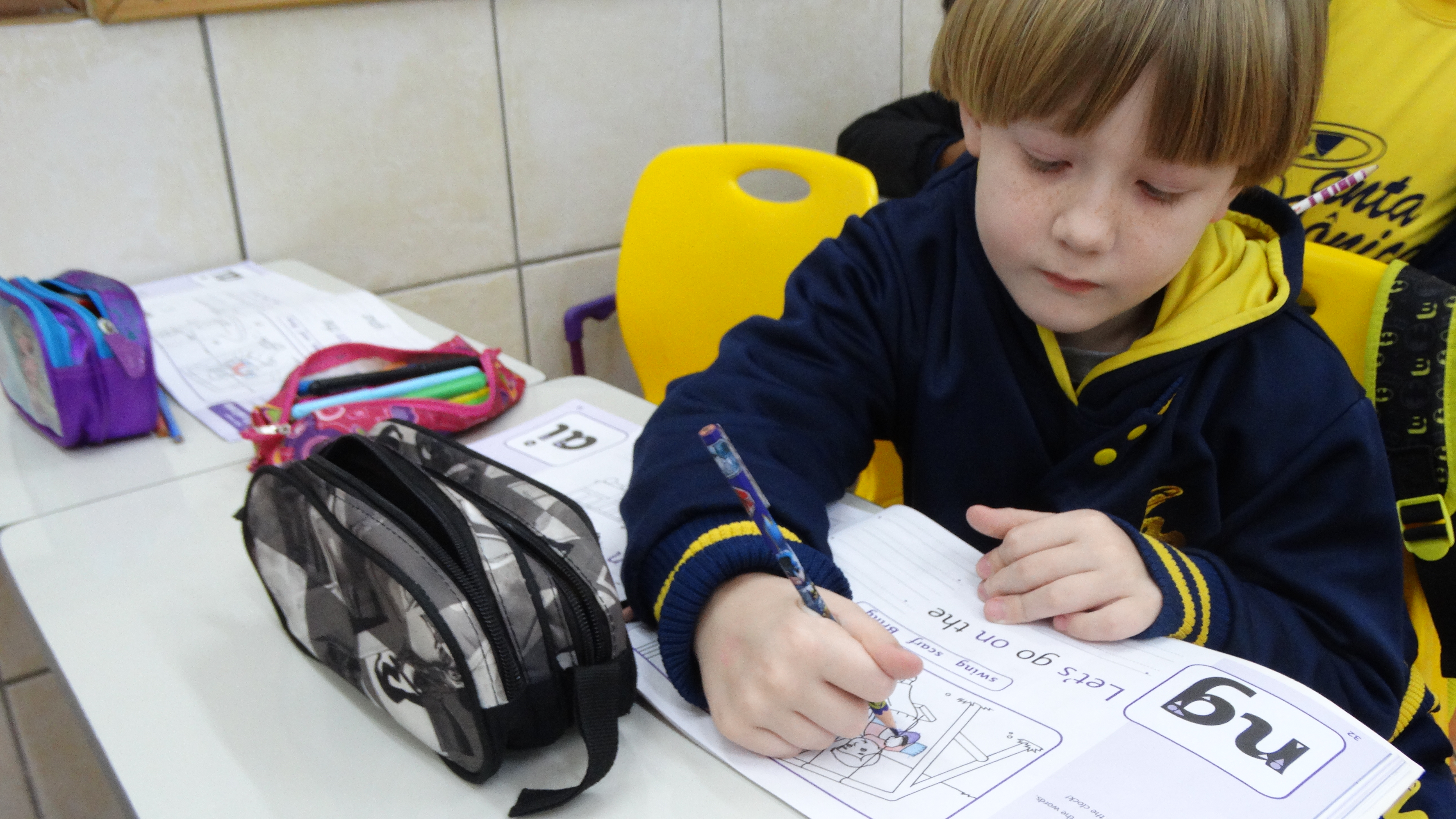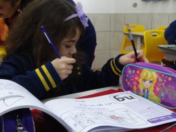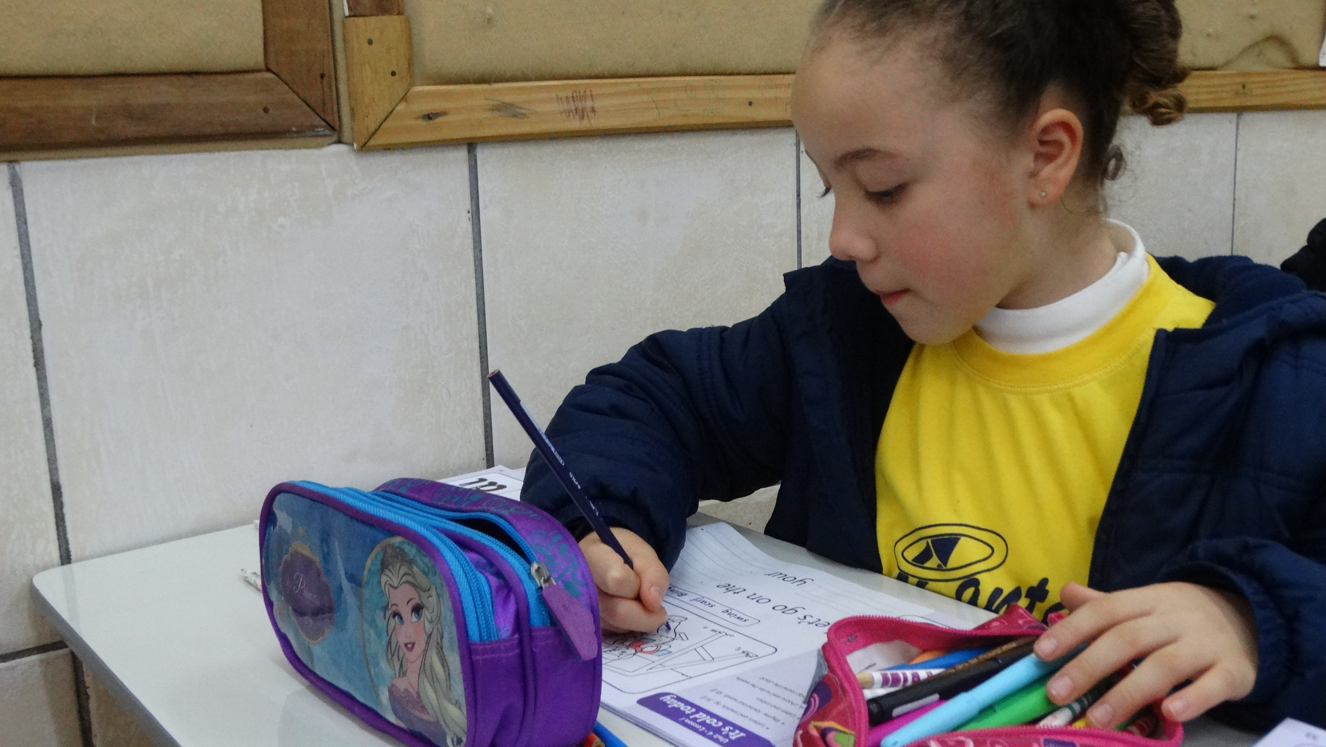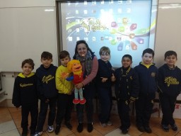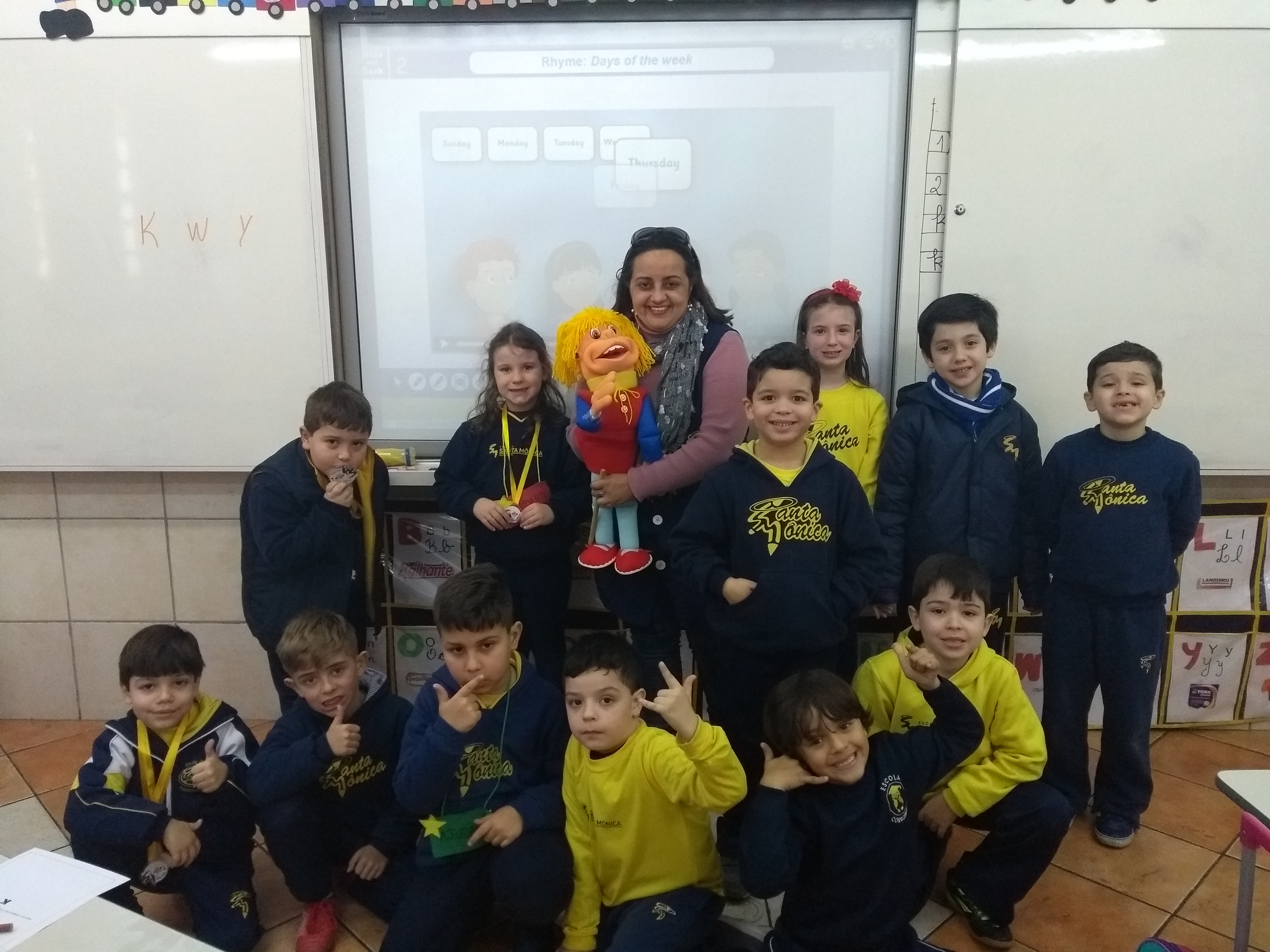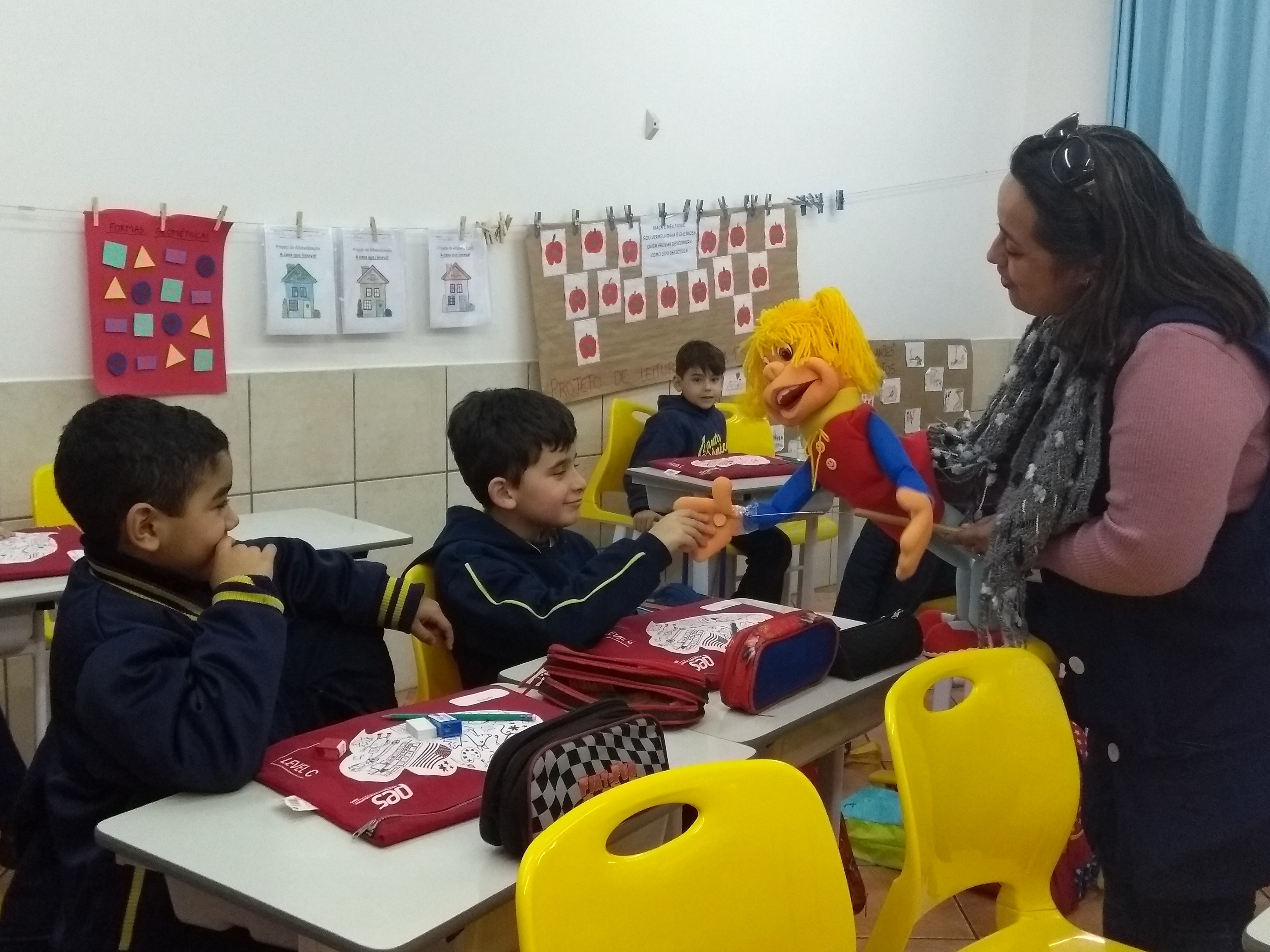 Os alunos do 1º ano do Ensino Fundamental praticaram o inglês com a ajuda de Drika. Uma fantoche muito simpática que fez a alegria das turmas.