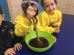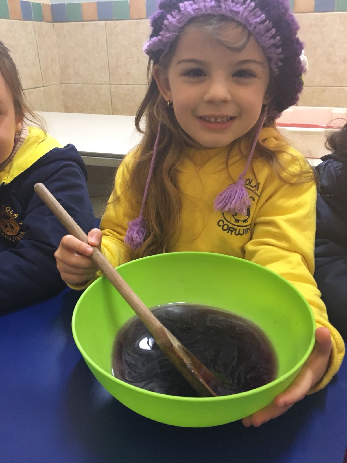 As corujinhas do Jardim 2 prepararam gelatinas de Arco Íris para praticar as cores. Os sabores escolhidos foram morango, abacaxi e uva. Foi uma aula super animada.