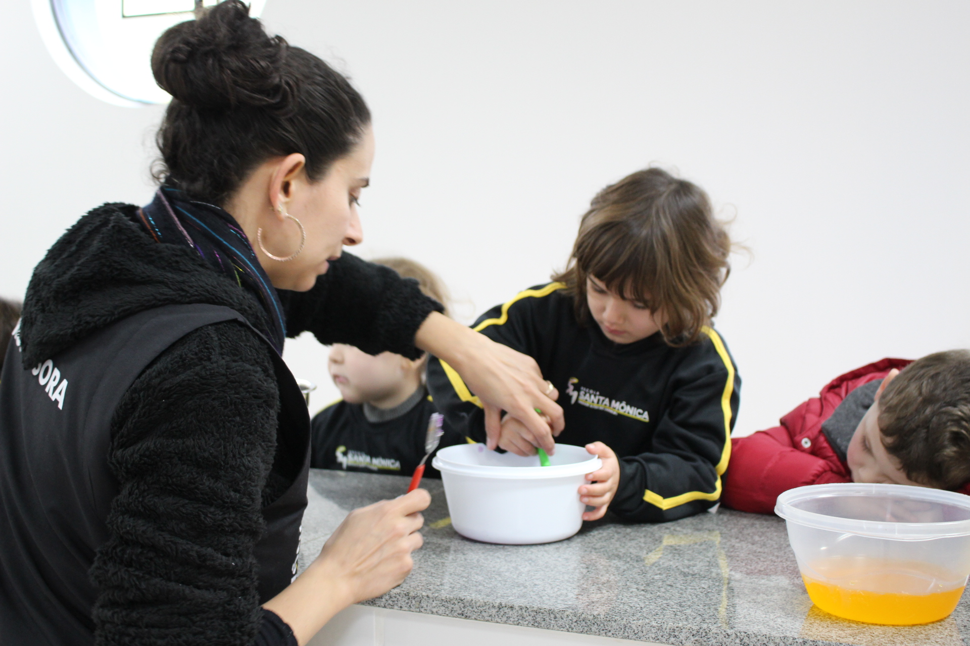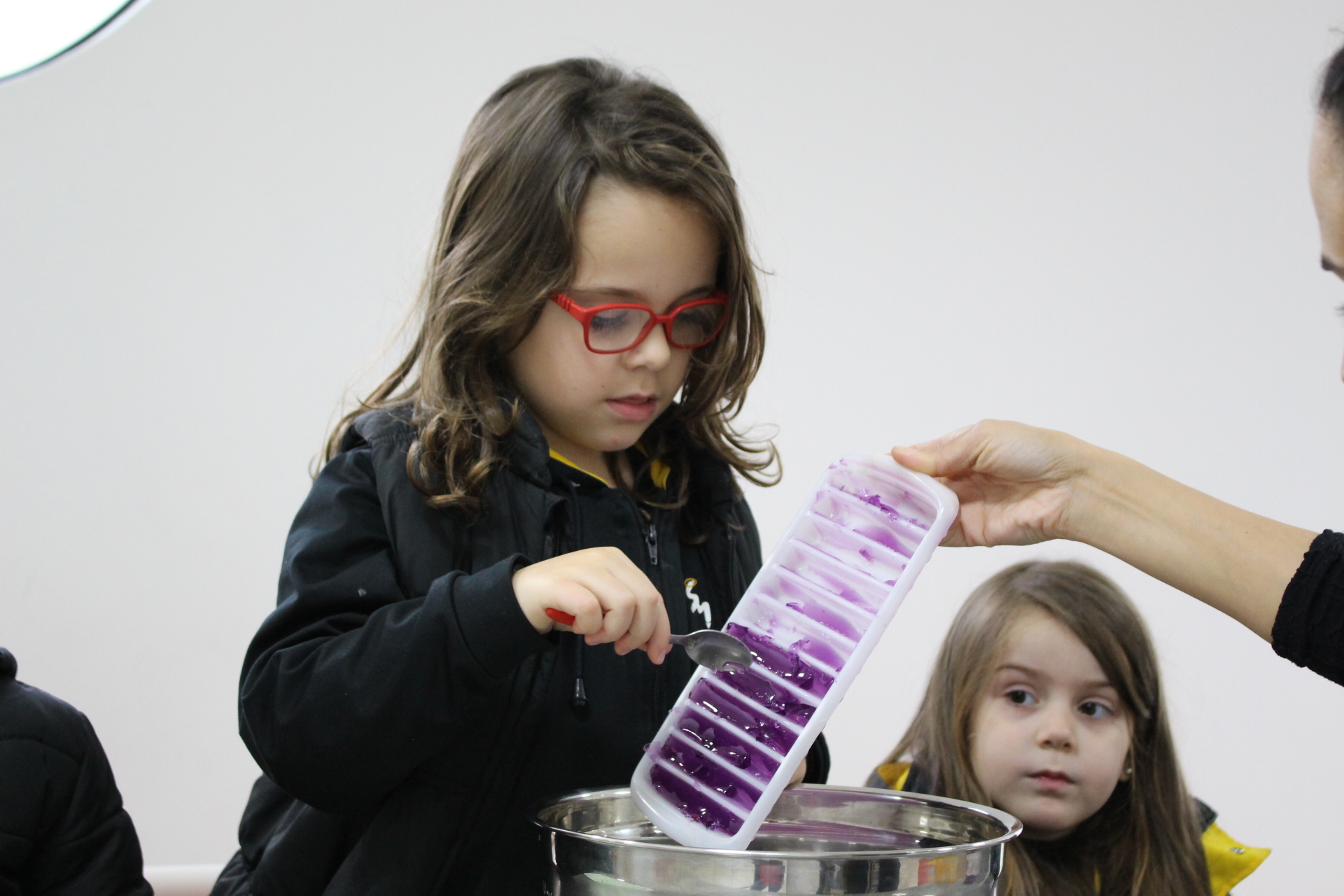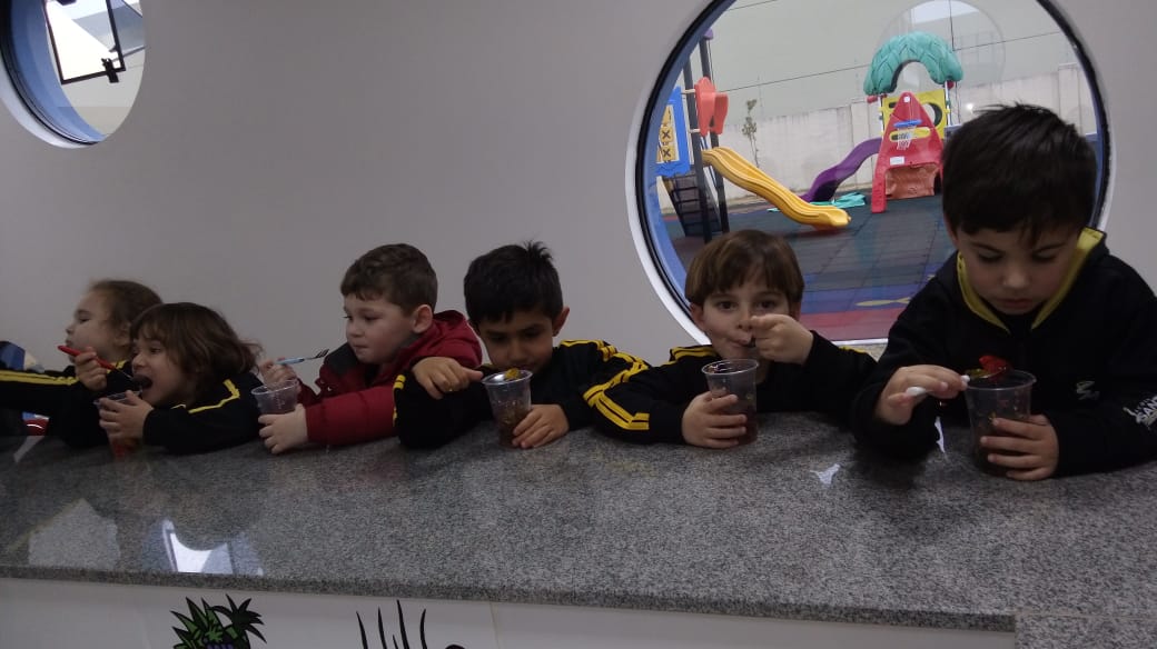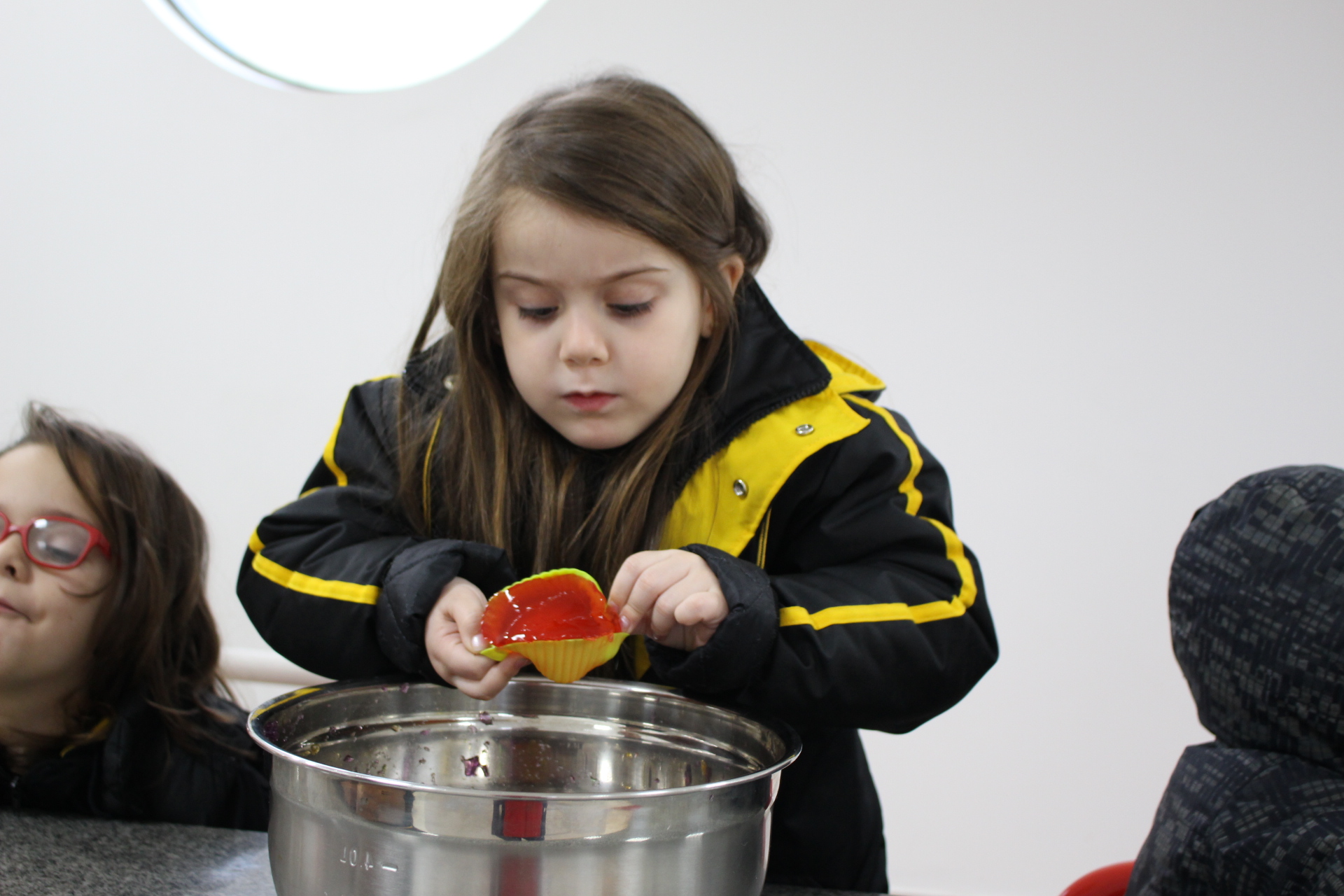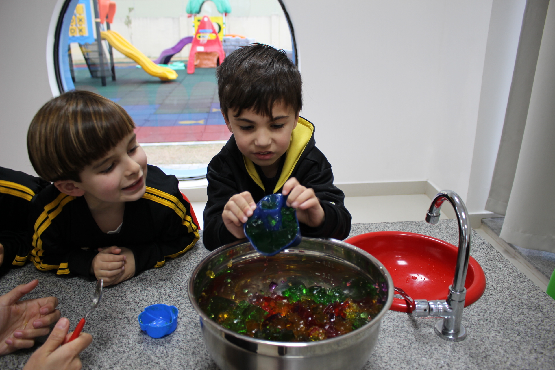 Os pequenos do Jardim II visitaram o espaço Gourmet Kids e prepararam uma deliciosa gelatina arco-íris para aprender mais sobre cores.