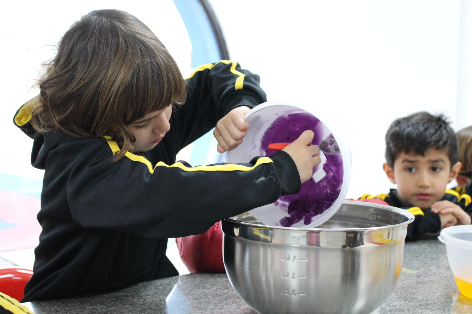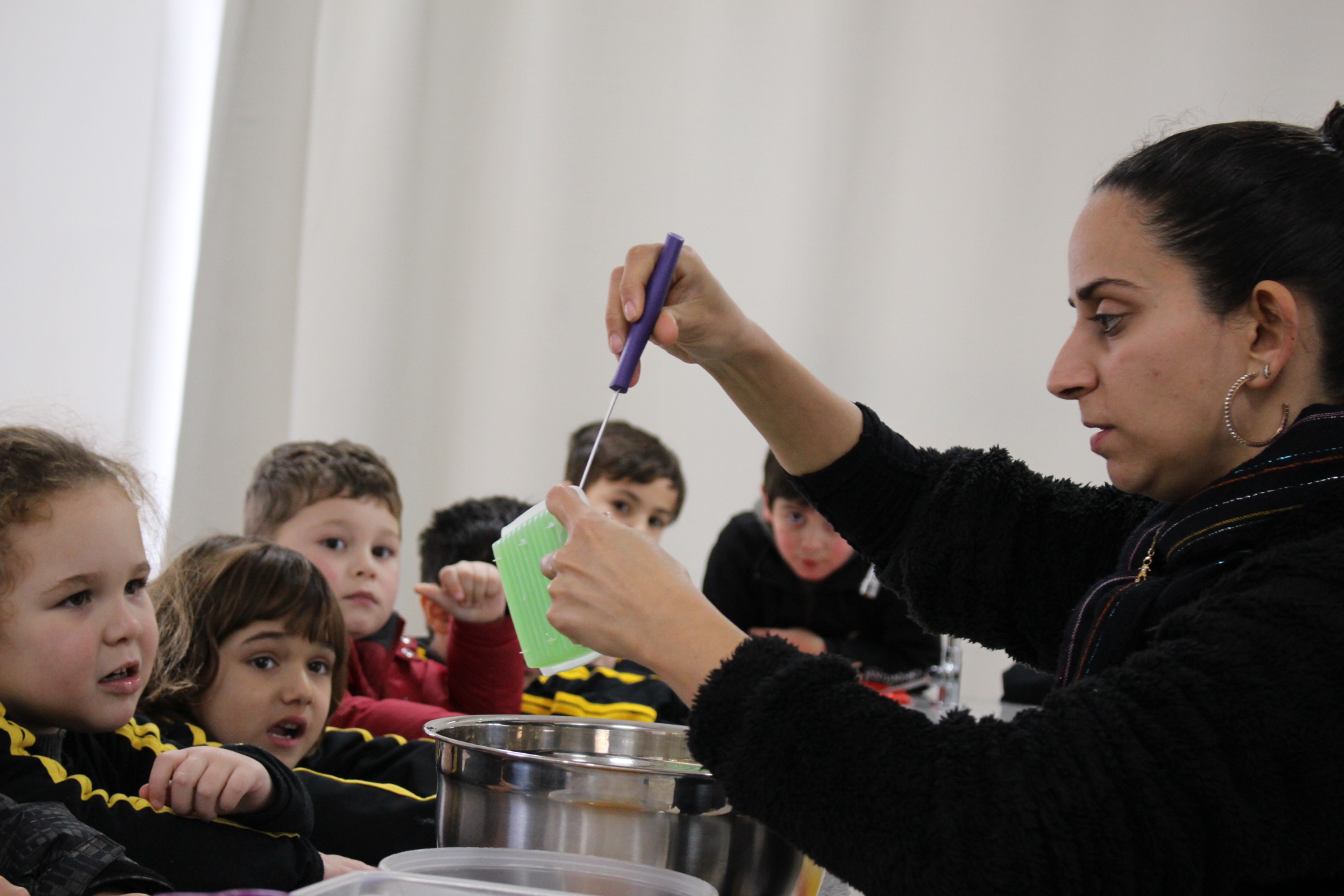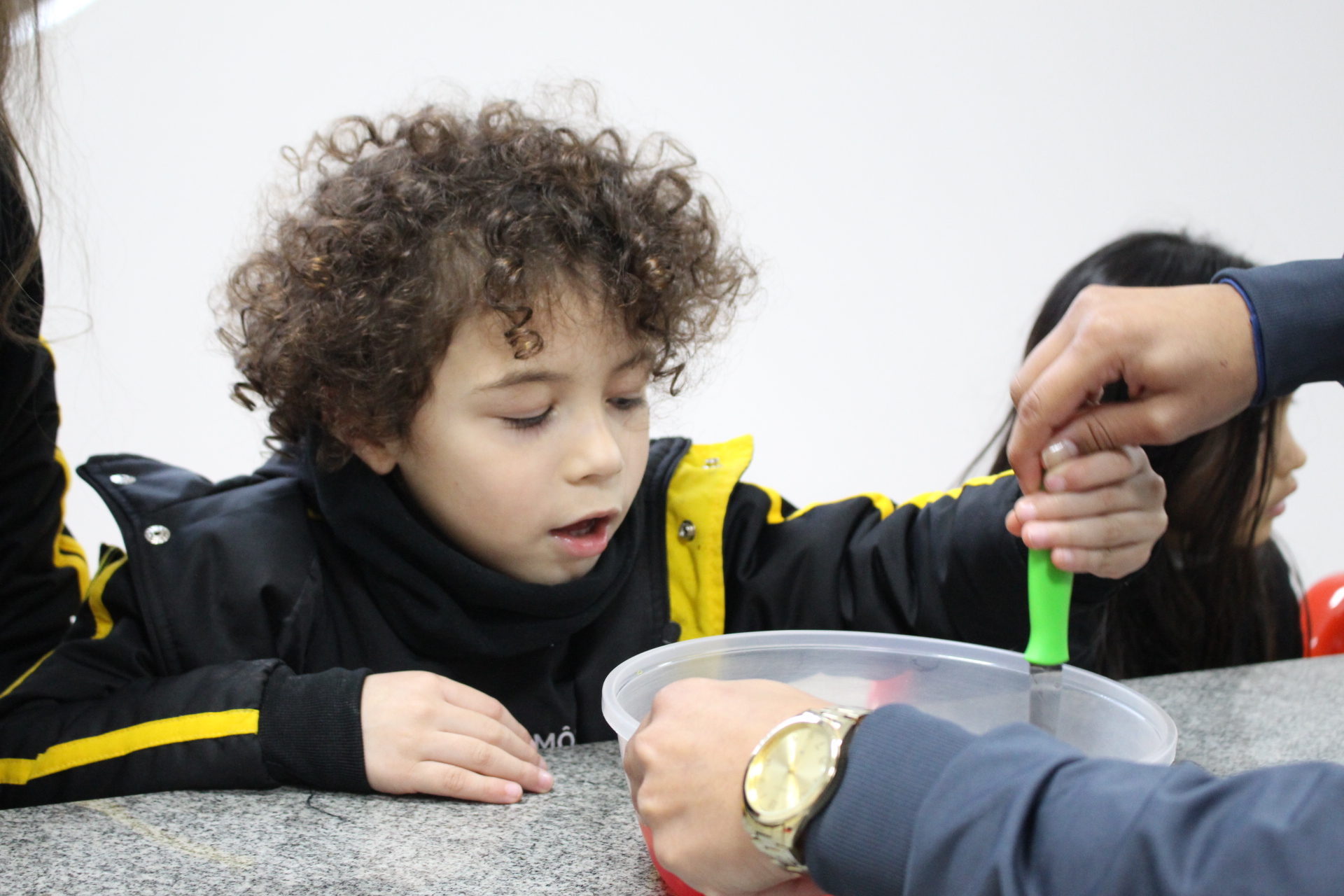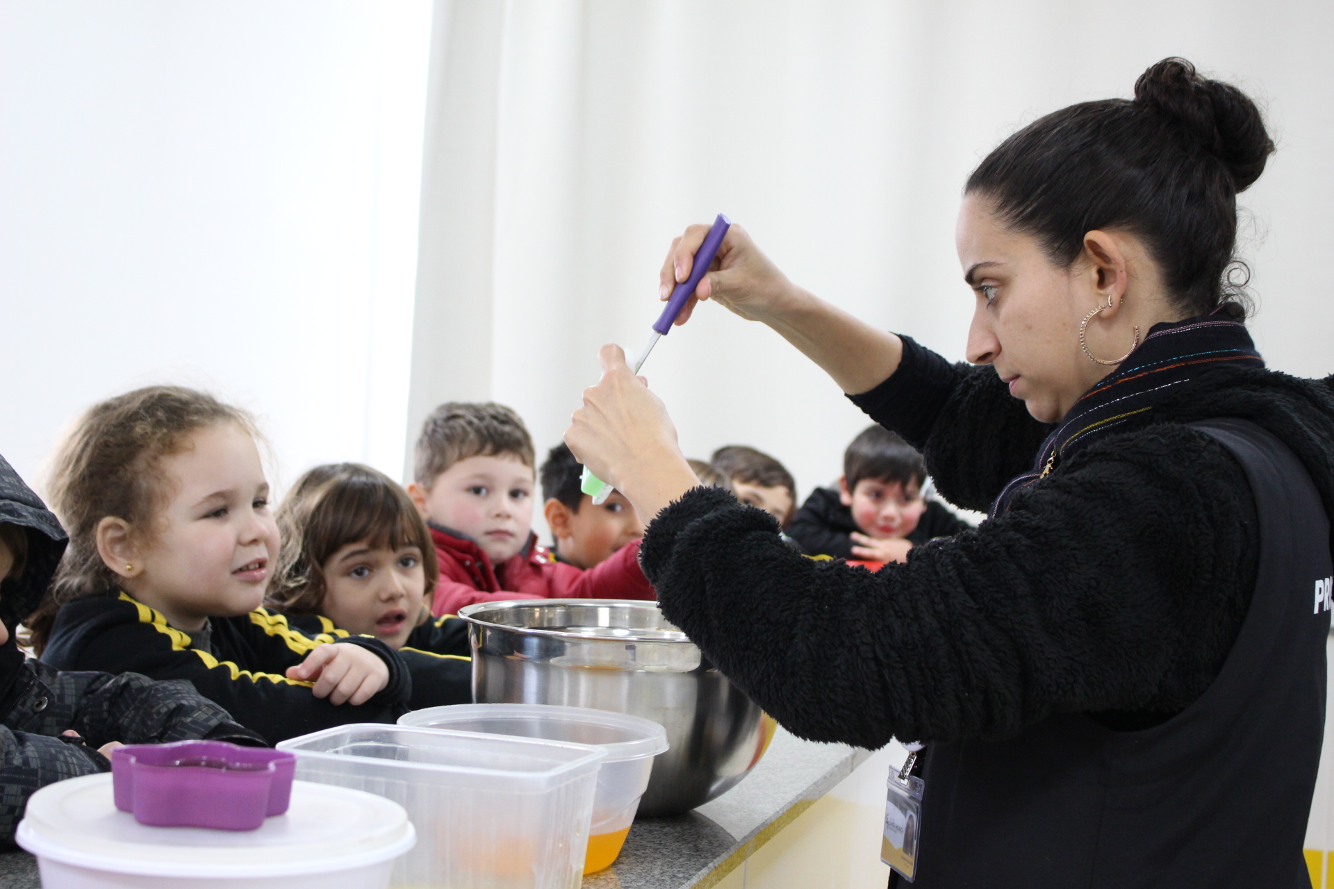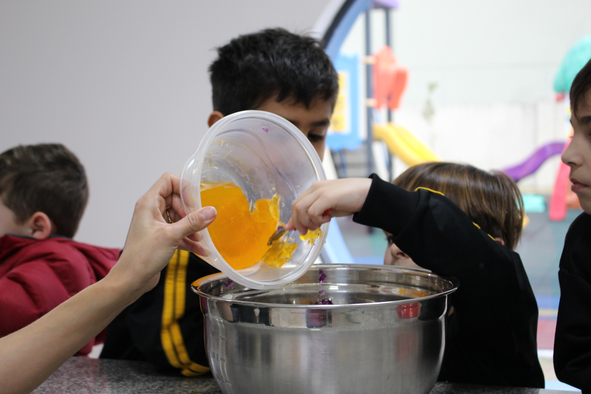 Os pequenos do Jardim II visitaram o espaço Gourmet Kids e prepararam uma deliciosa gelatina arco-íris para aprender mais sobre cores.