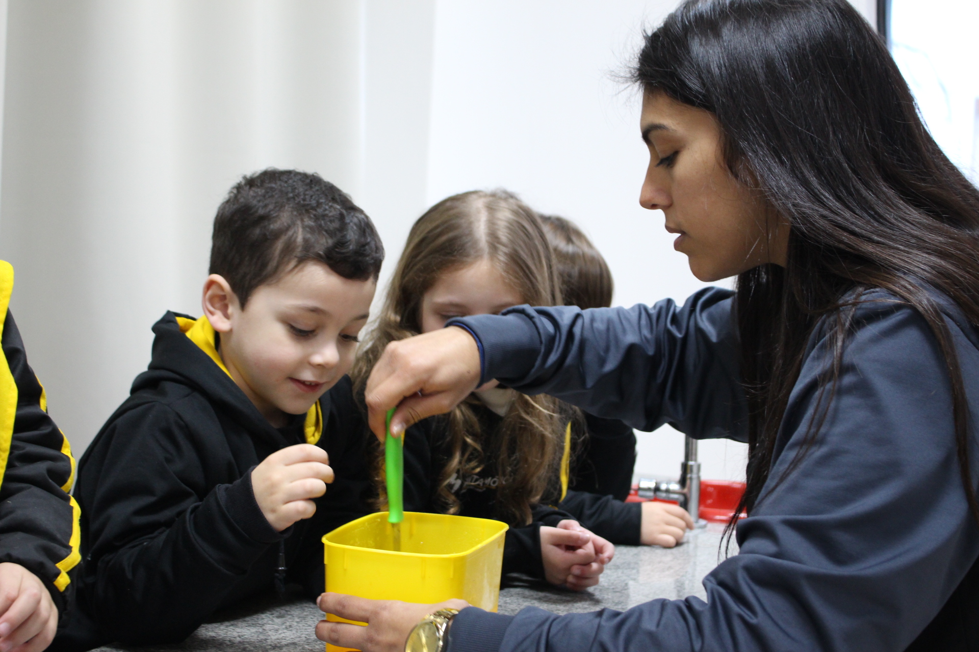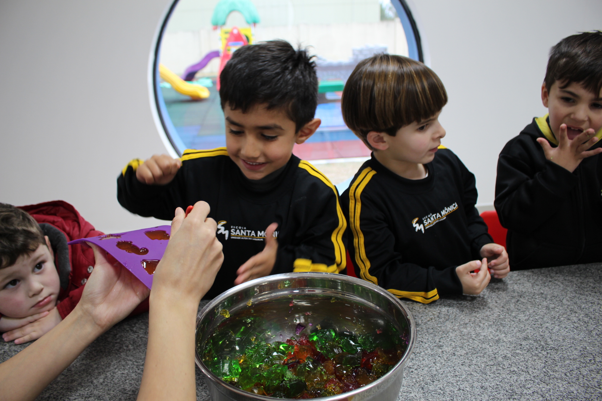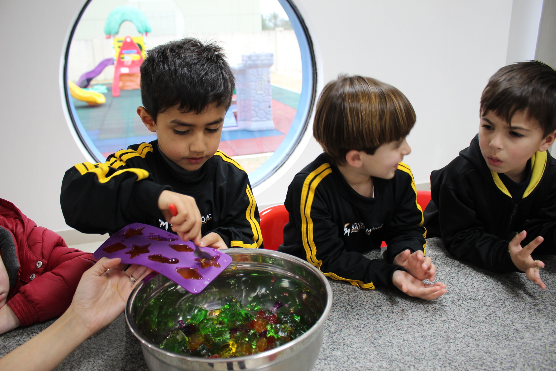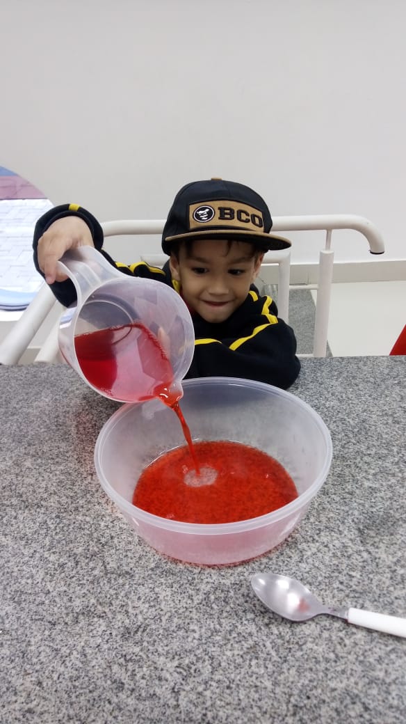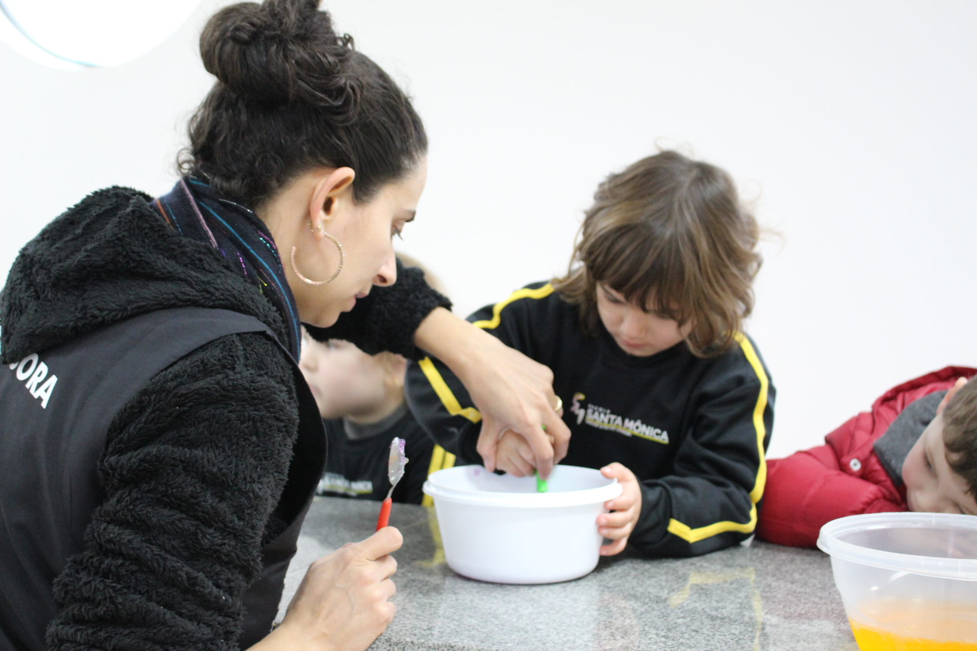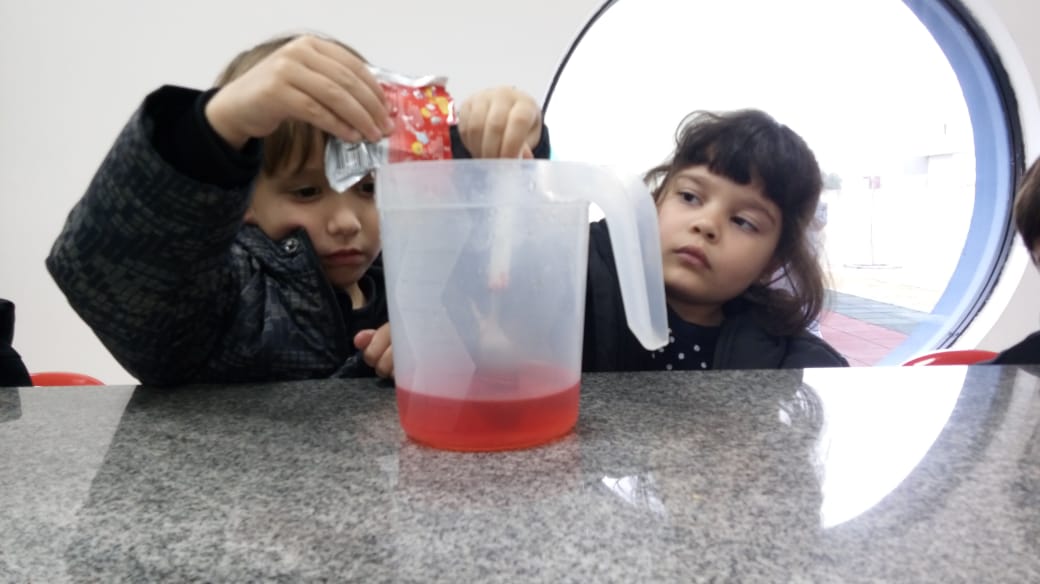 Os pequenos do Jardim II visitaram o espaço Gourmet Kids e prepararam uma deliciosa gelatina arco-íris para aprender mais sobre cores.