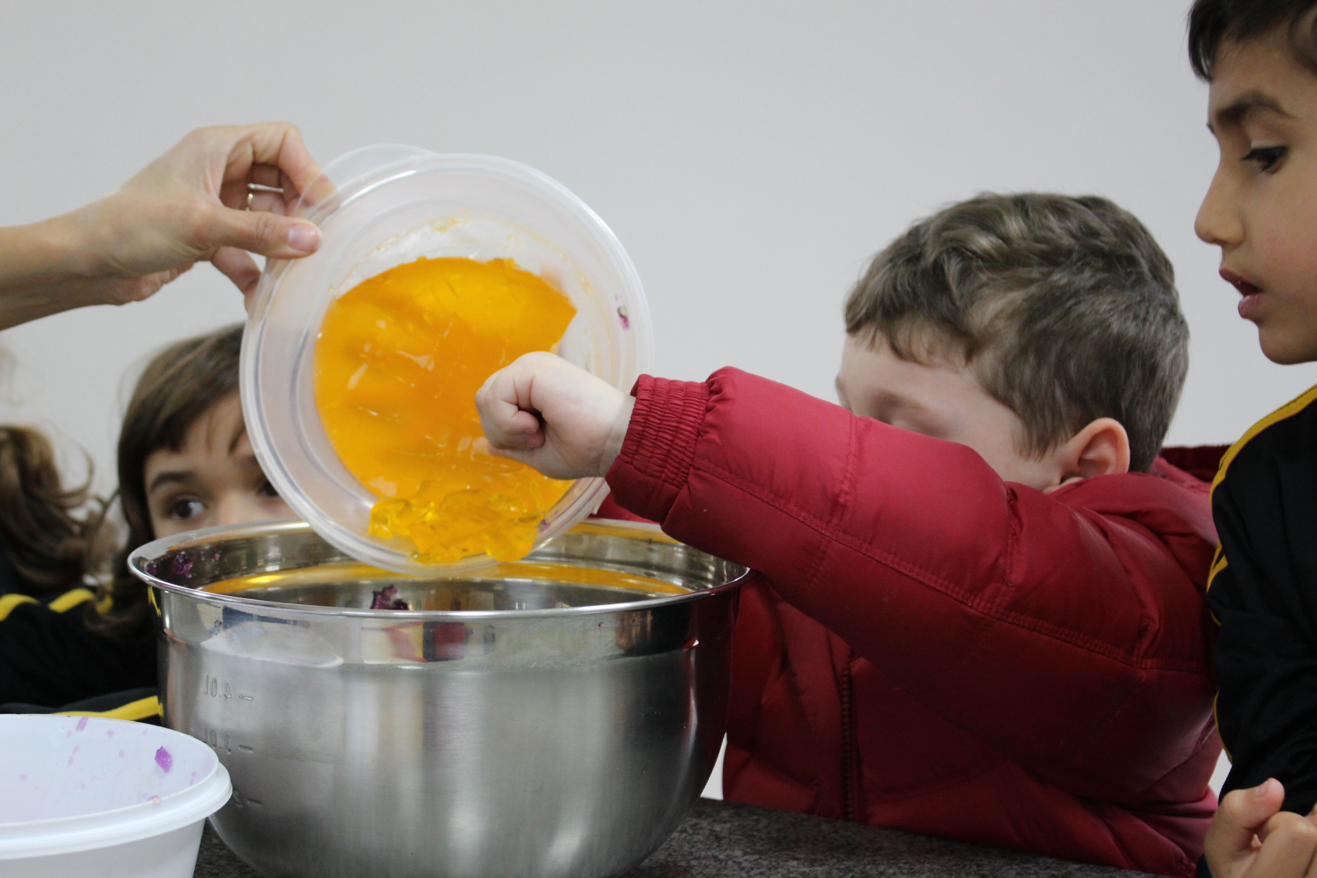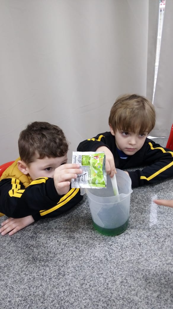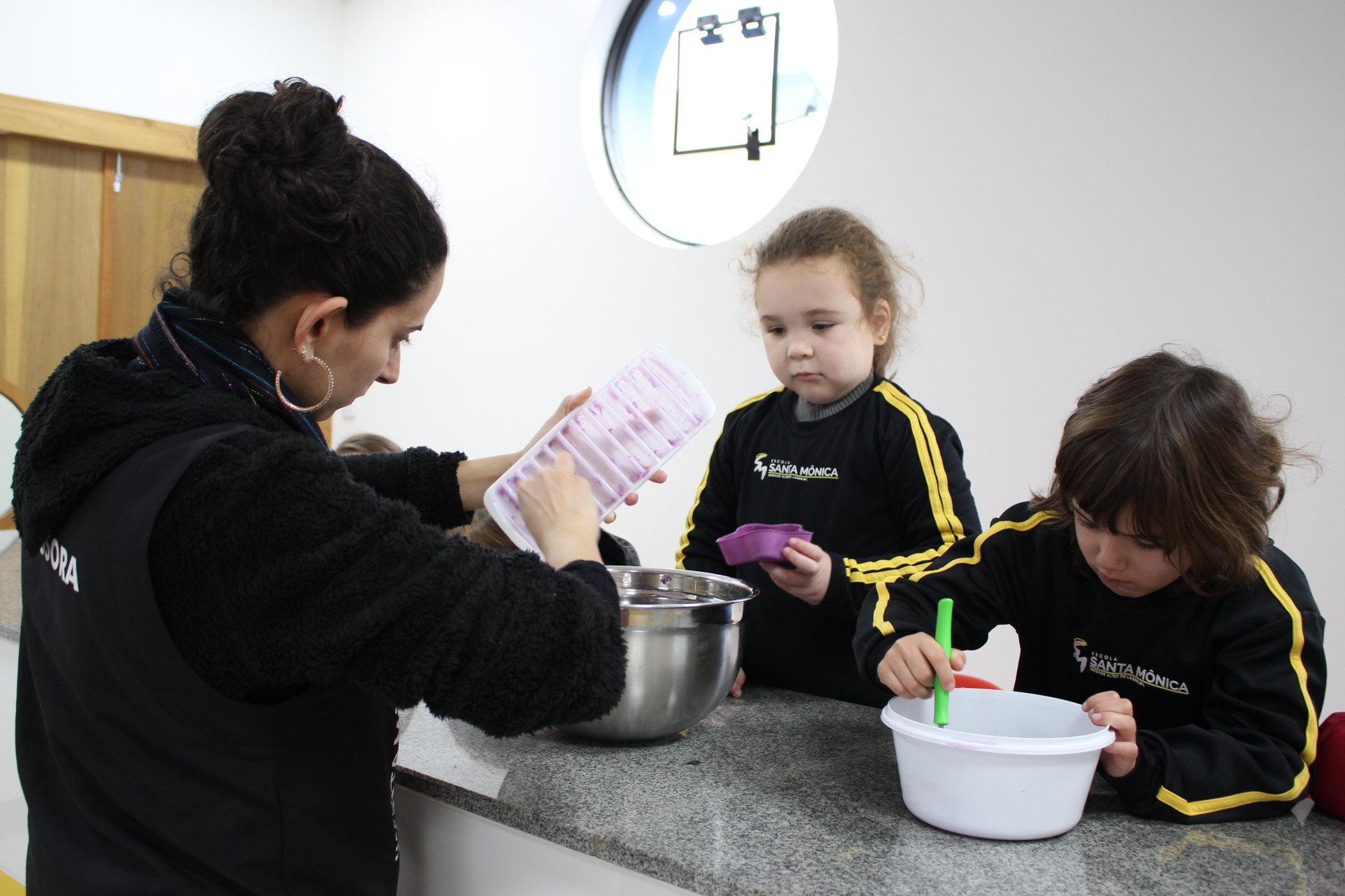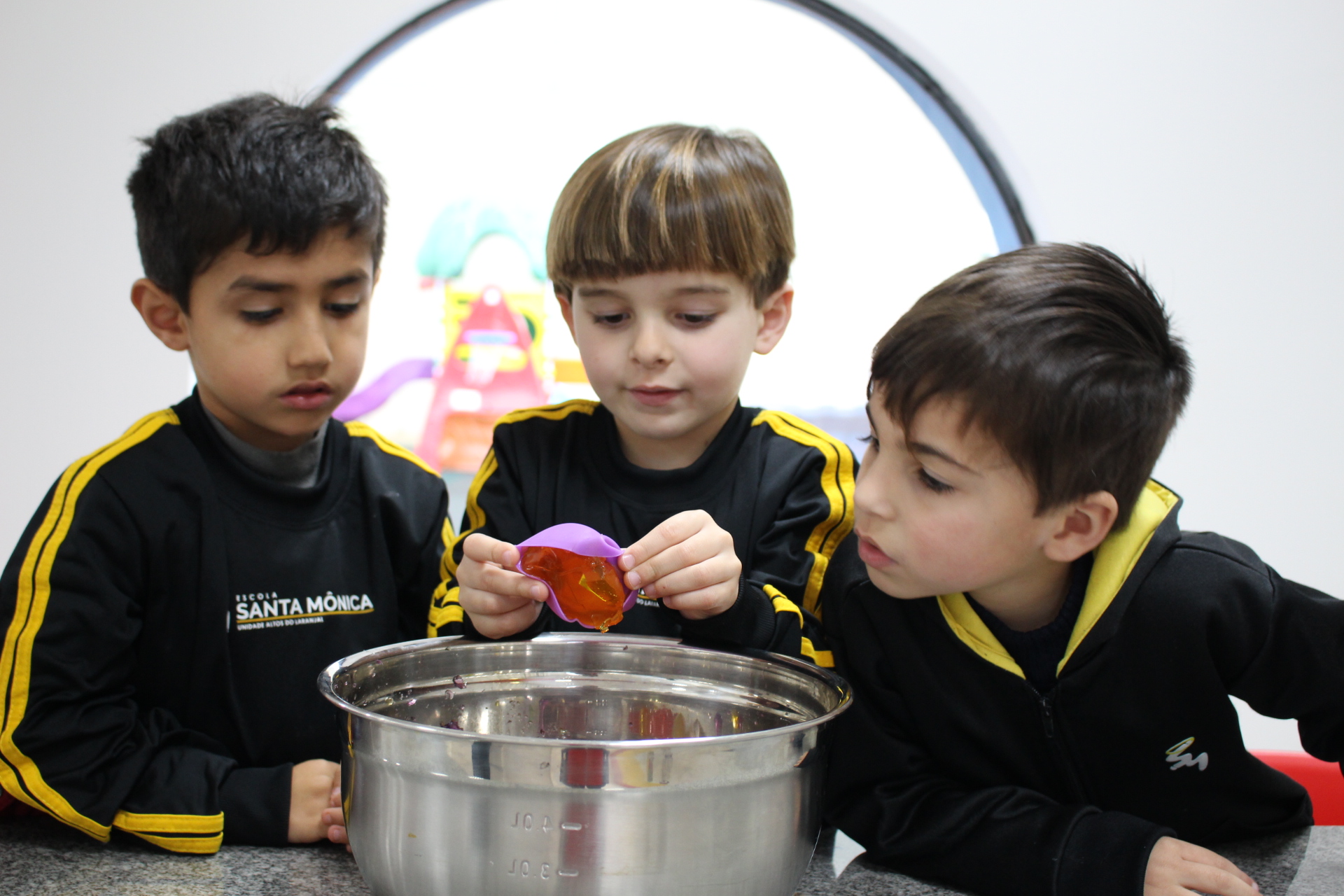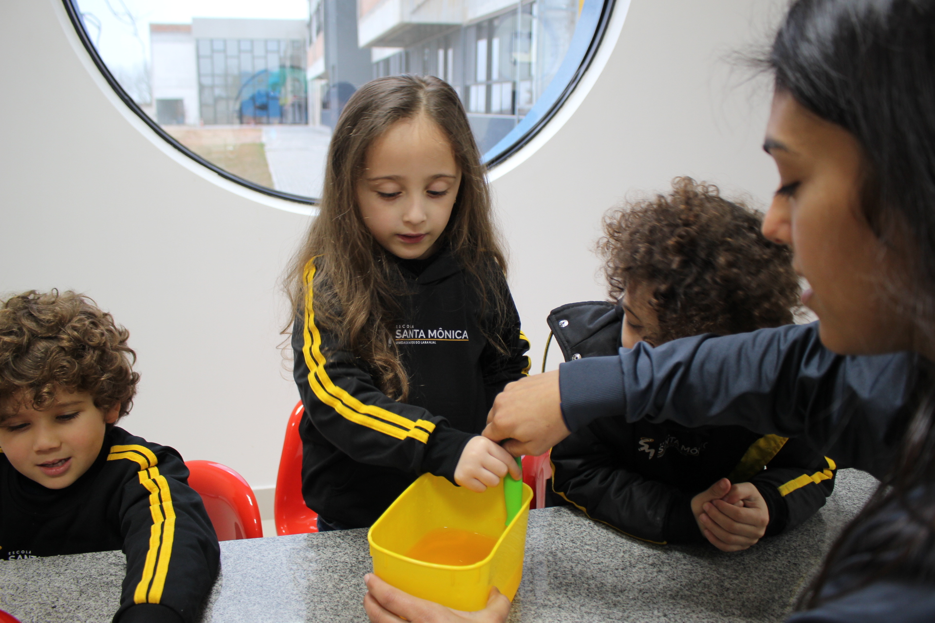 Os pequenos do Jardim II visitaram o espaço Gourmet Kids e prepararam uma deliciosa gelatina arco-íris para aprender mais sobre cores.