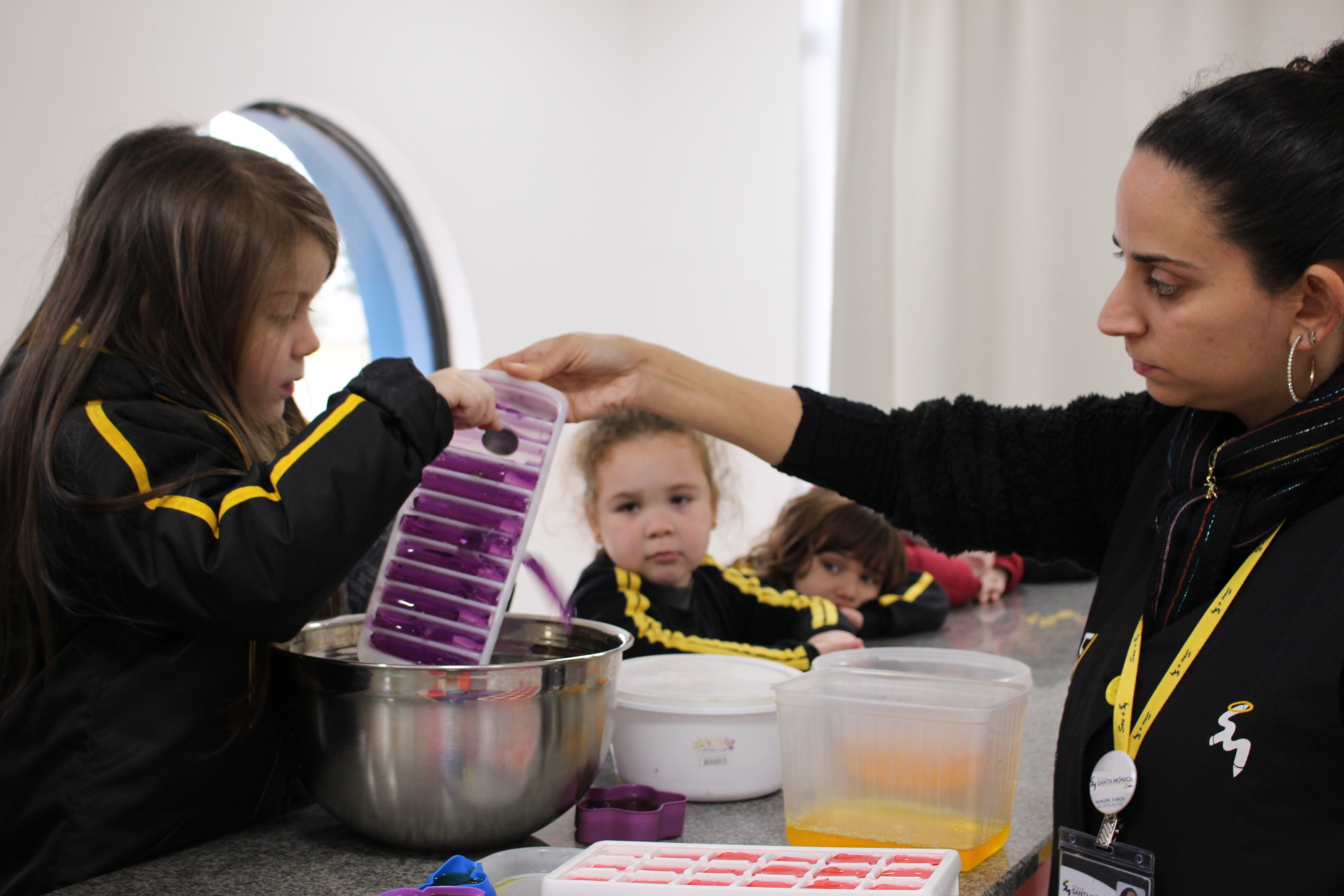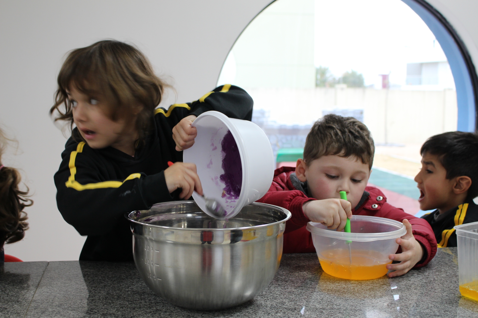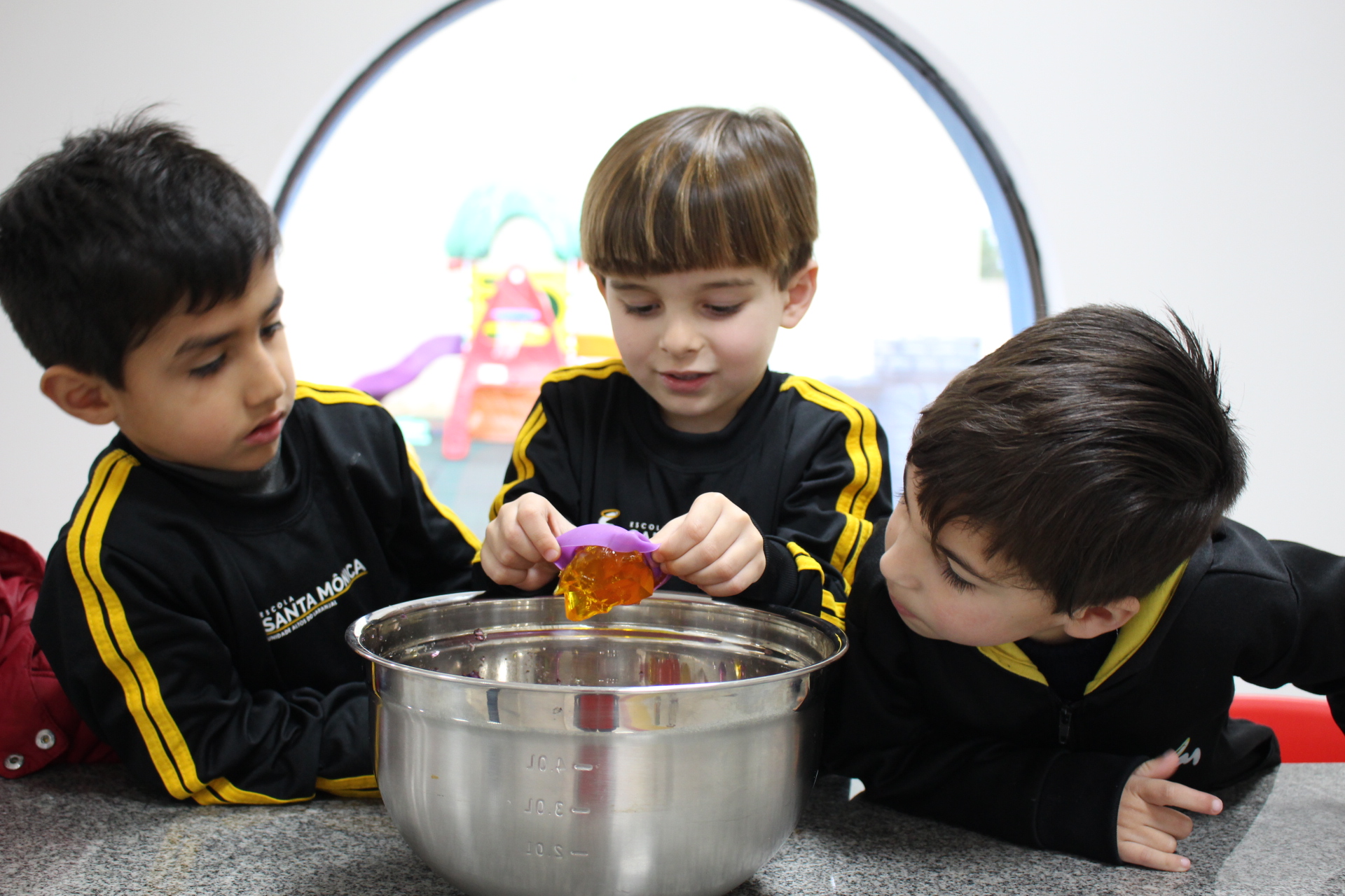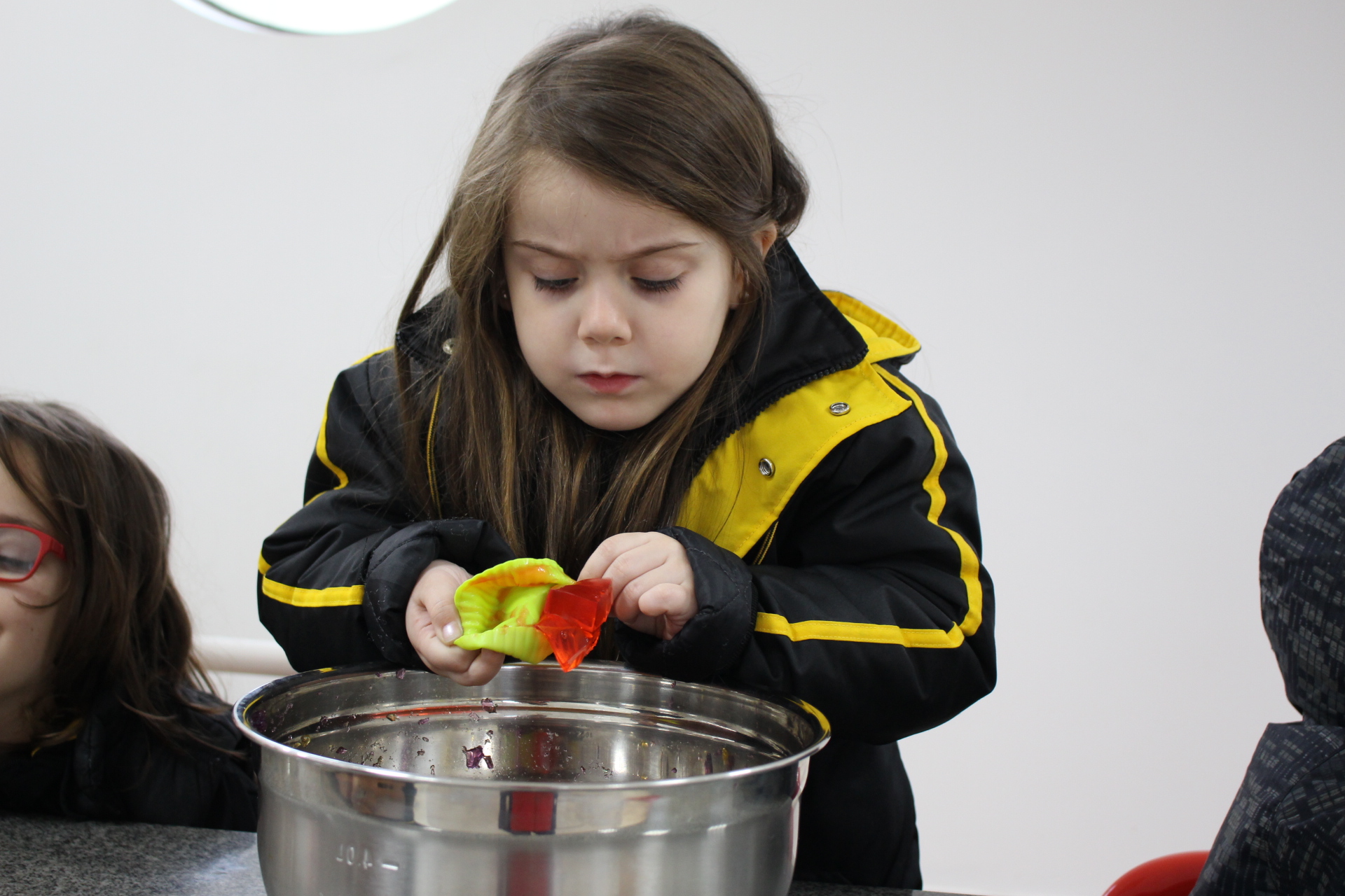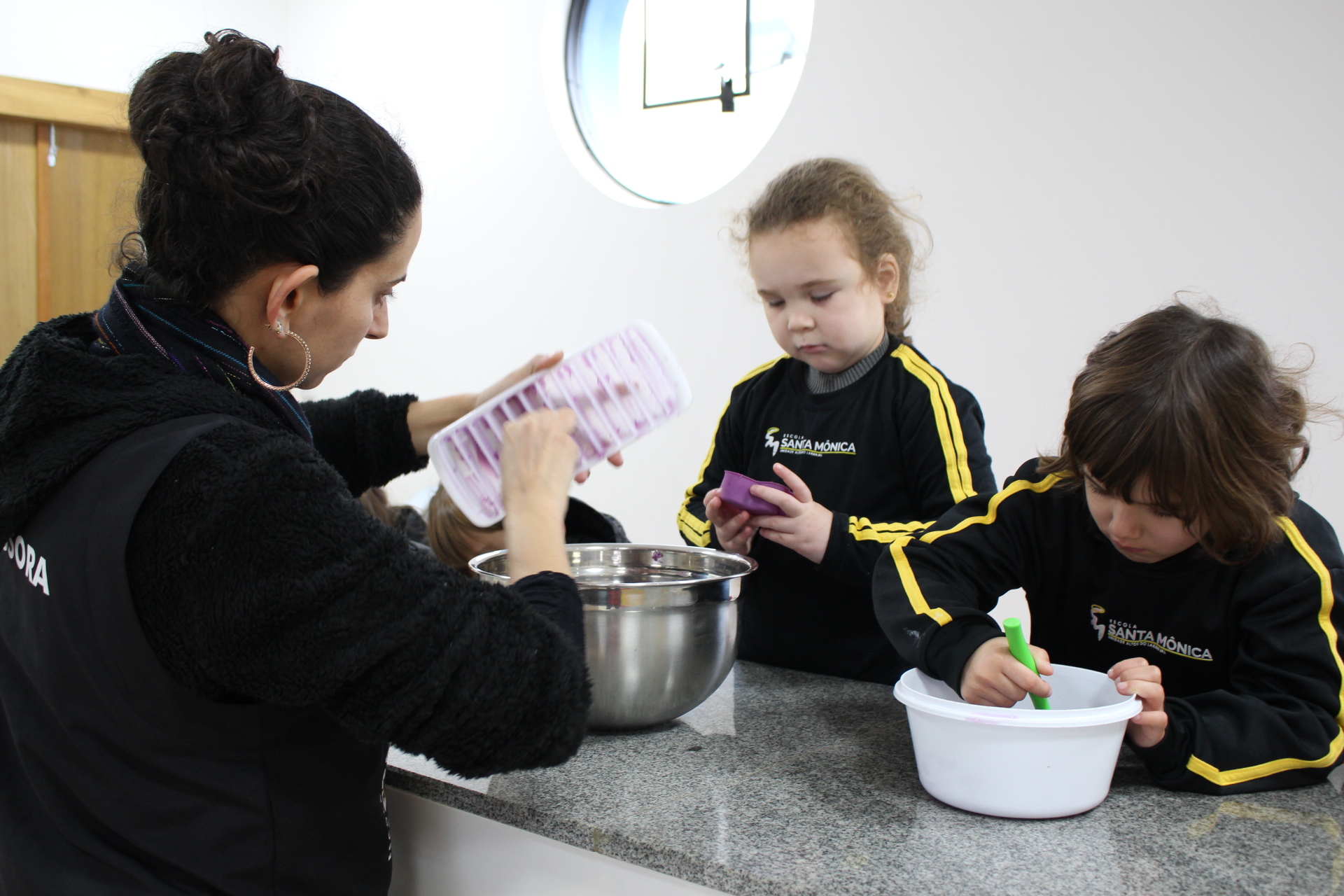 Os pequenos do Jardim II visitaram o espaço Gourmet Kids e prepararam uma deliciosa gelatina arco-íris para aprender mais sobre cores.