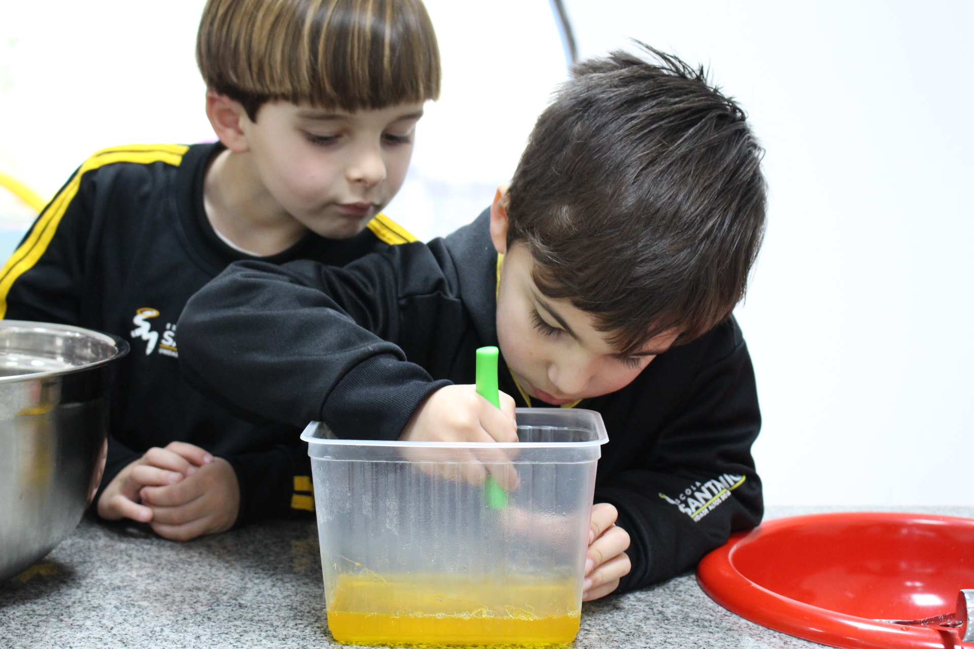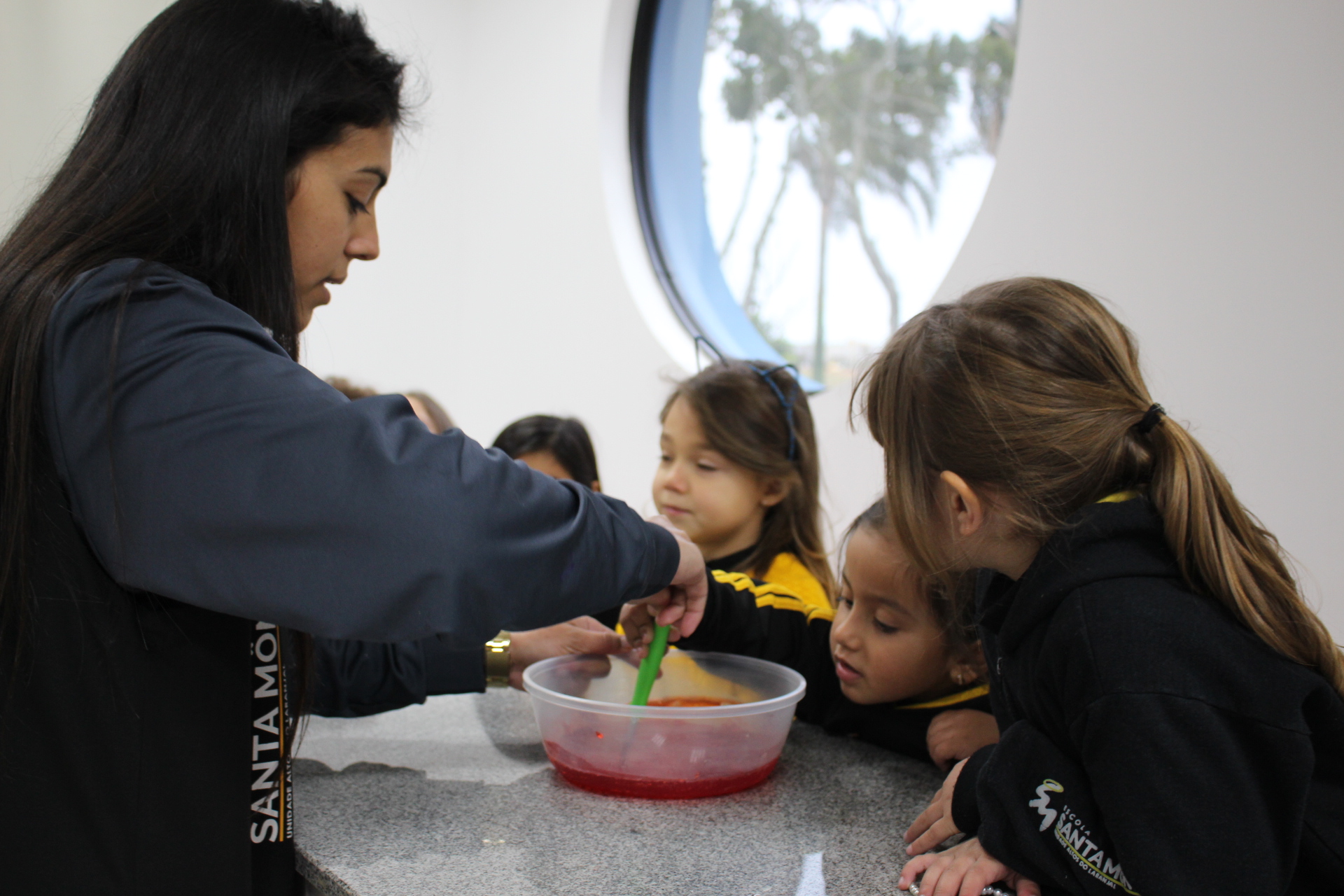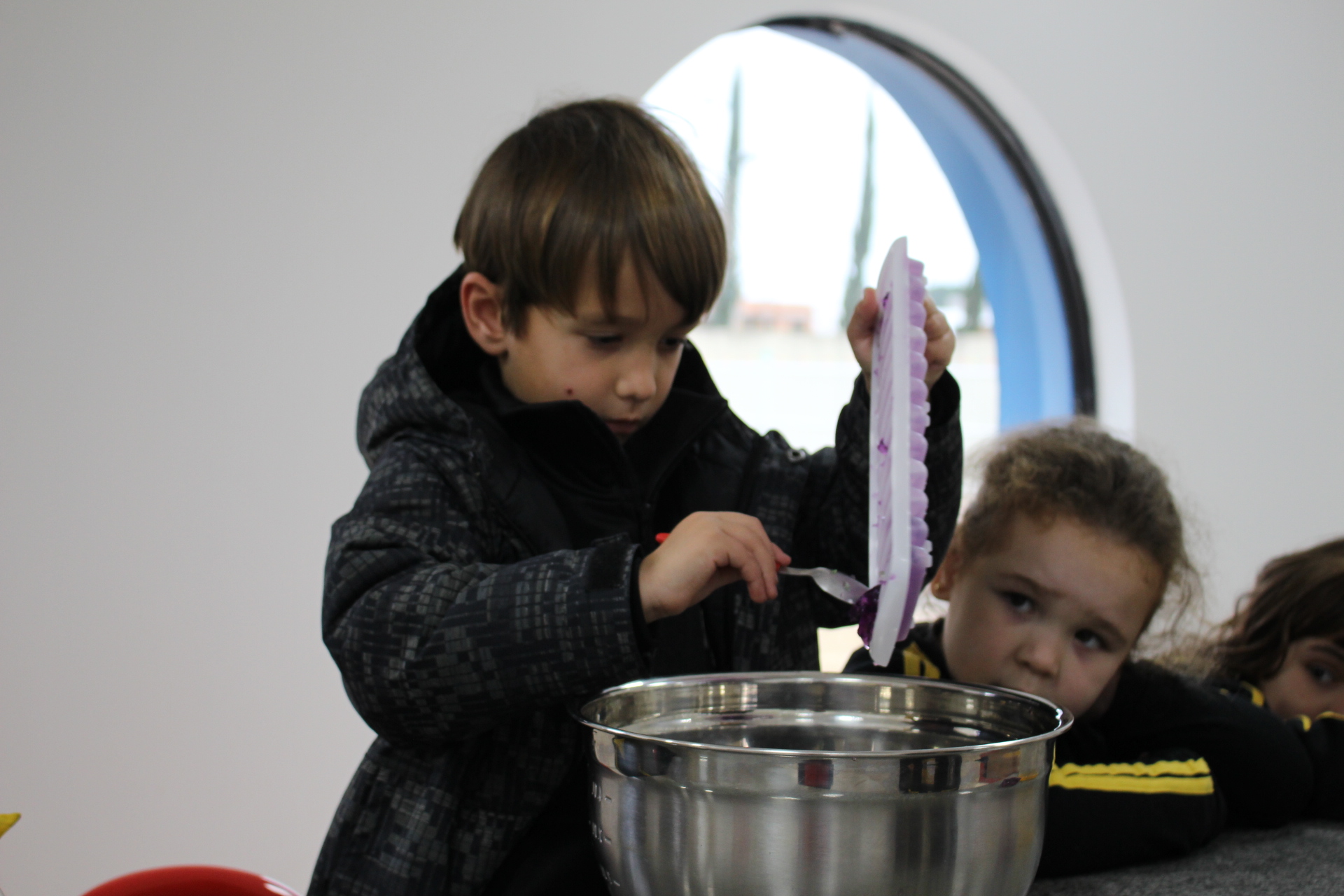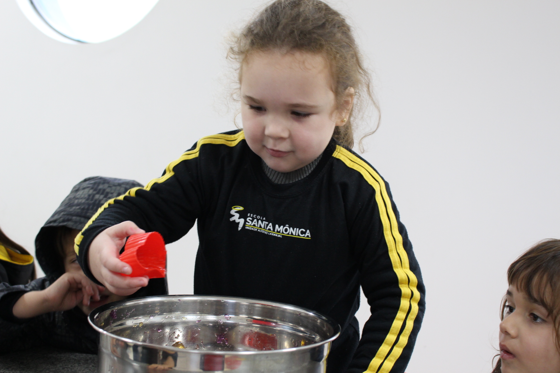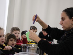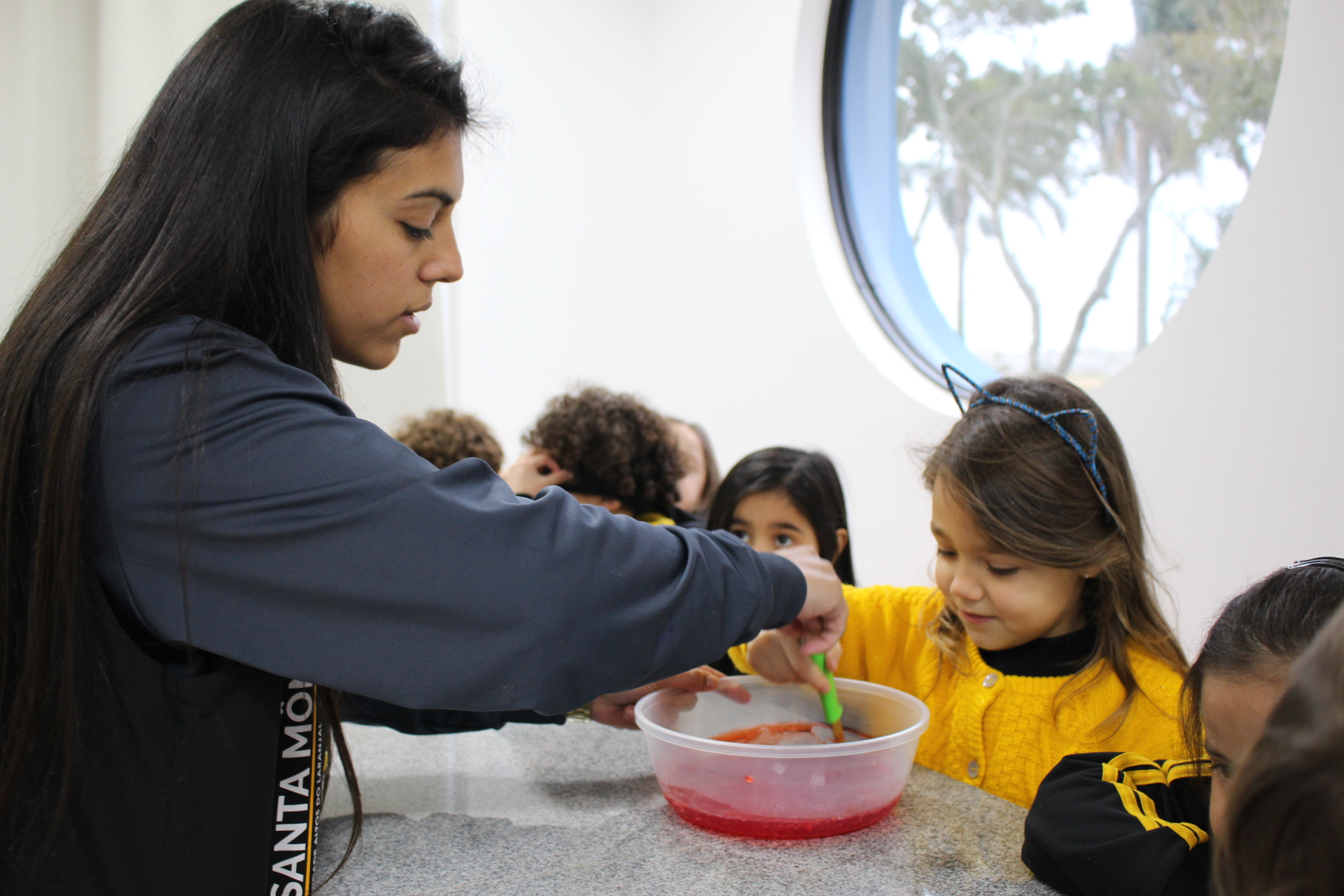 Os pequenos do Jardim II visitaram o espaço Gourmet Kids e prepararam uma deliciosa gelatina arco-íris para aprender mais sobre cores.