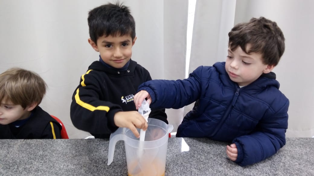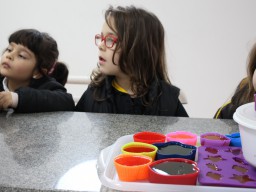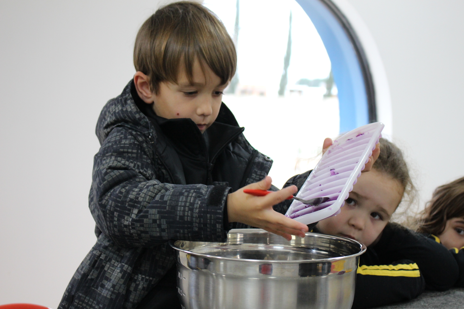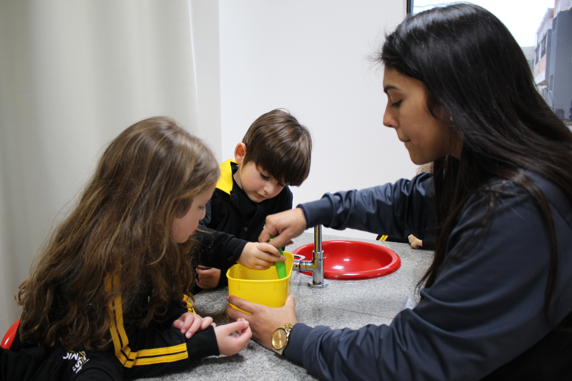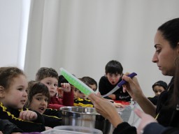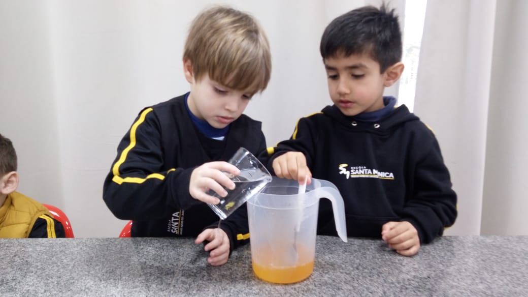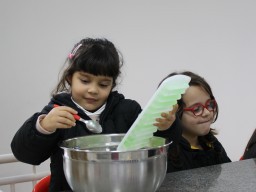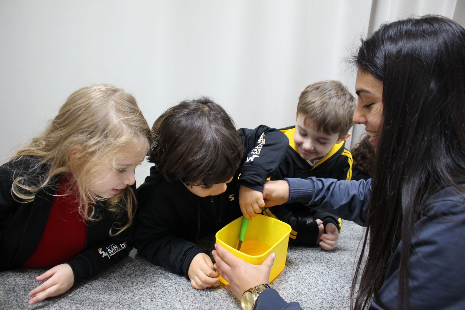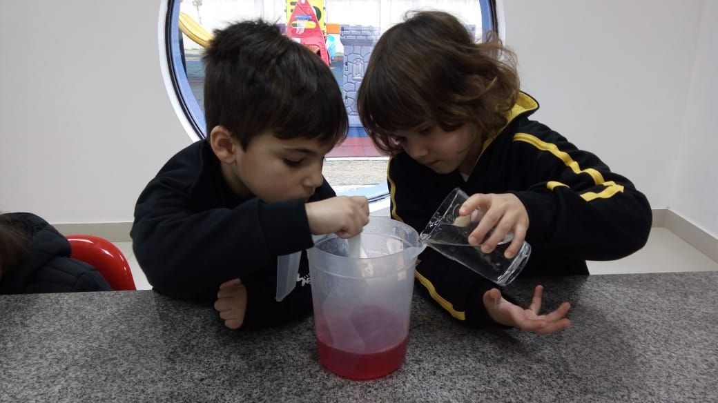 Os pequenos do Jardim II visitaram o espaço Gourmet Kids e prepararam uma deliciosa gelatina arco-íris para aprender mais sobre cores.
