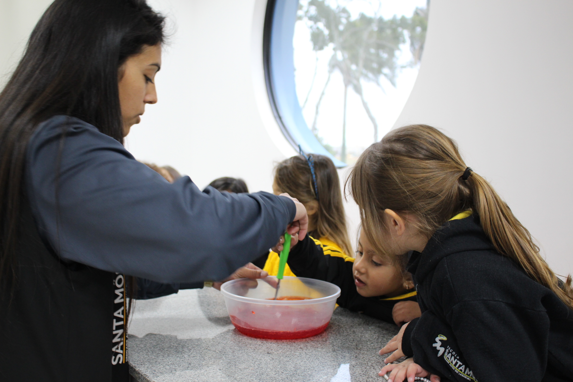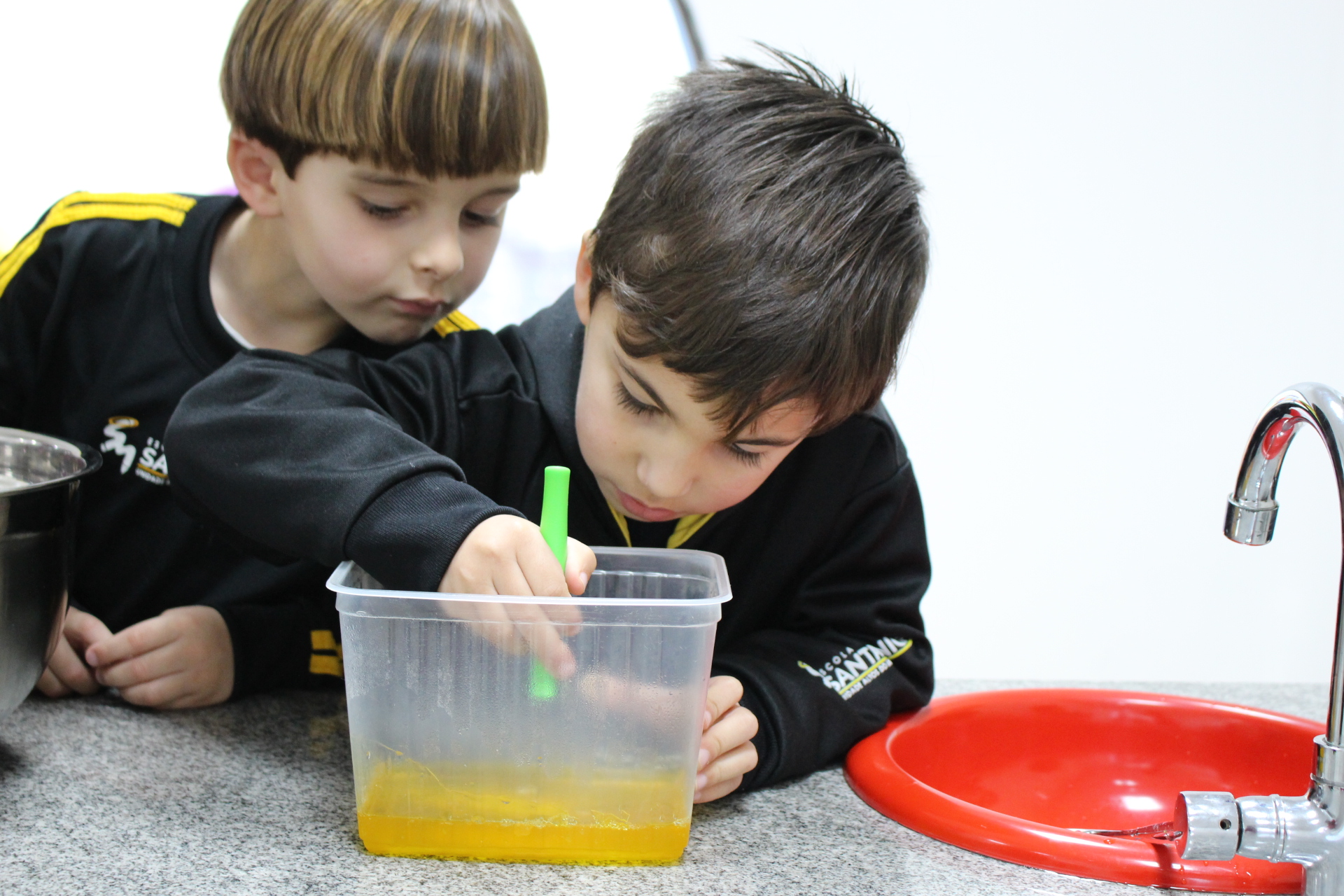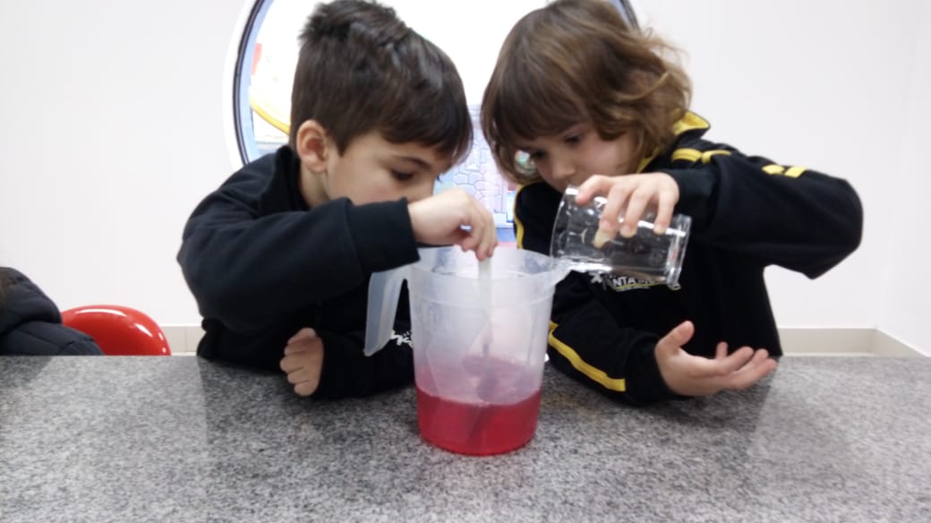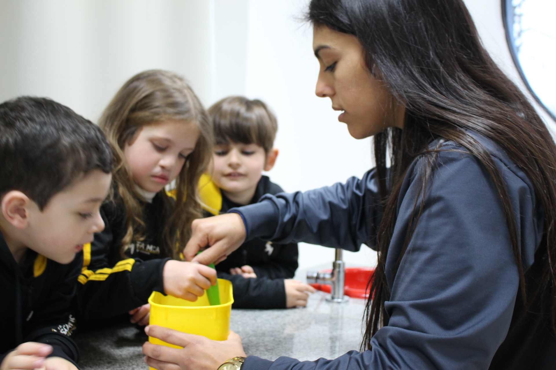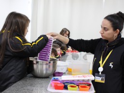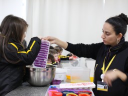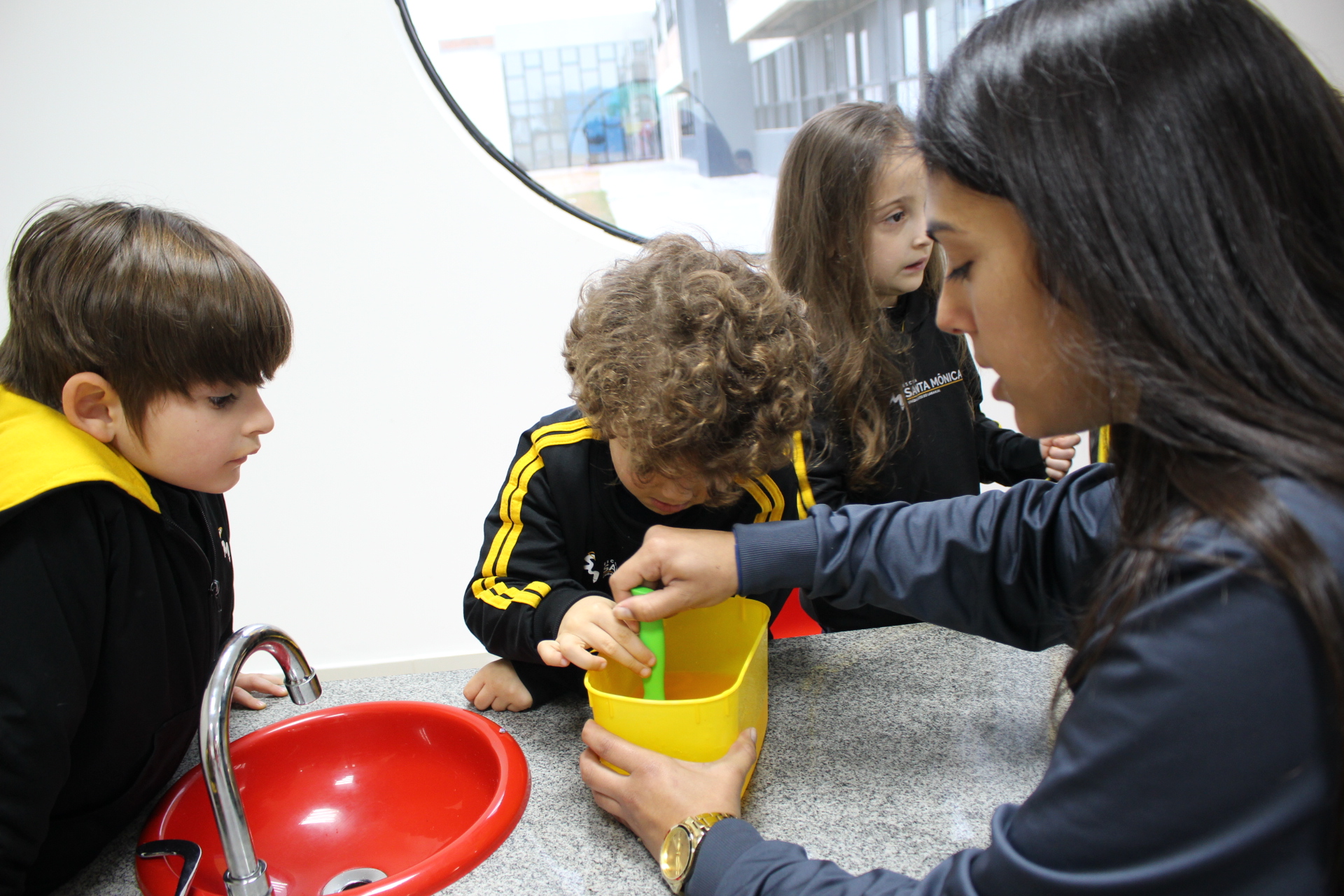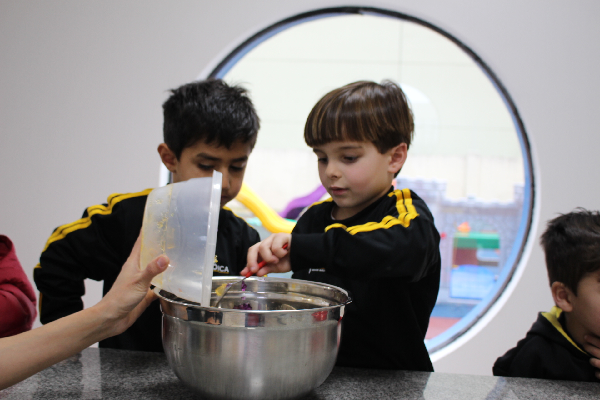 Os pequenos do Jardim II visitaram o espaço Gourmet Kids e prepararam uma deliciosa gelatina arco-íris para aprender mais sobre cores.