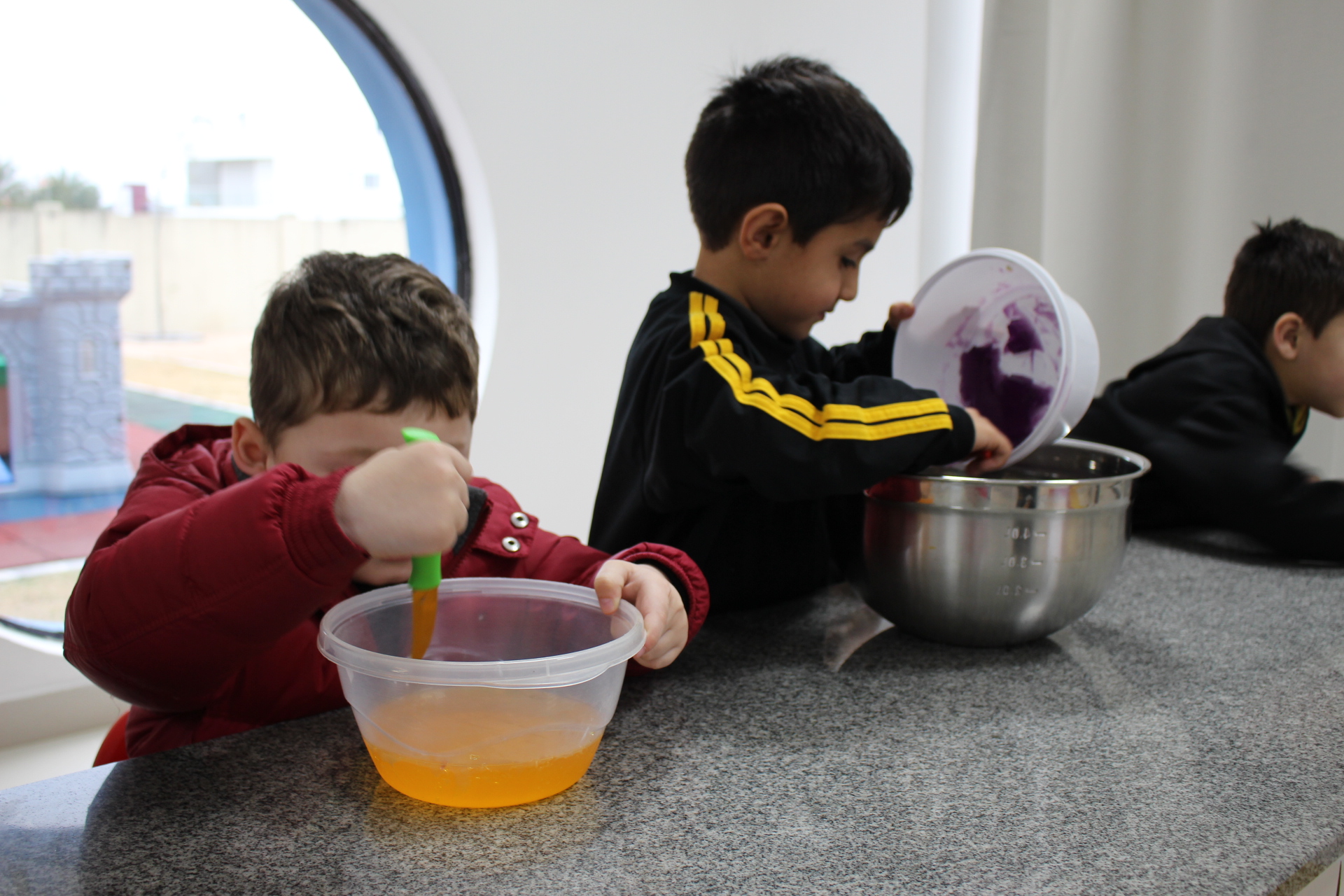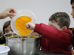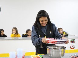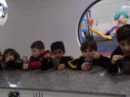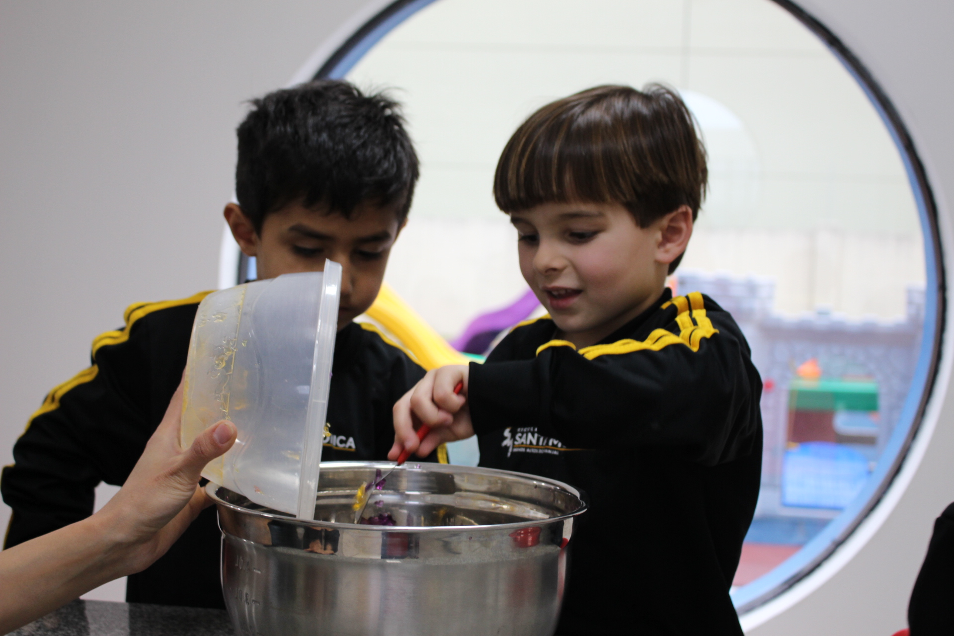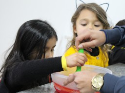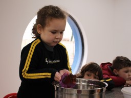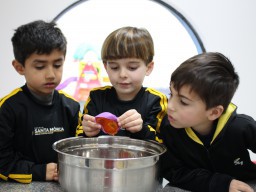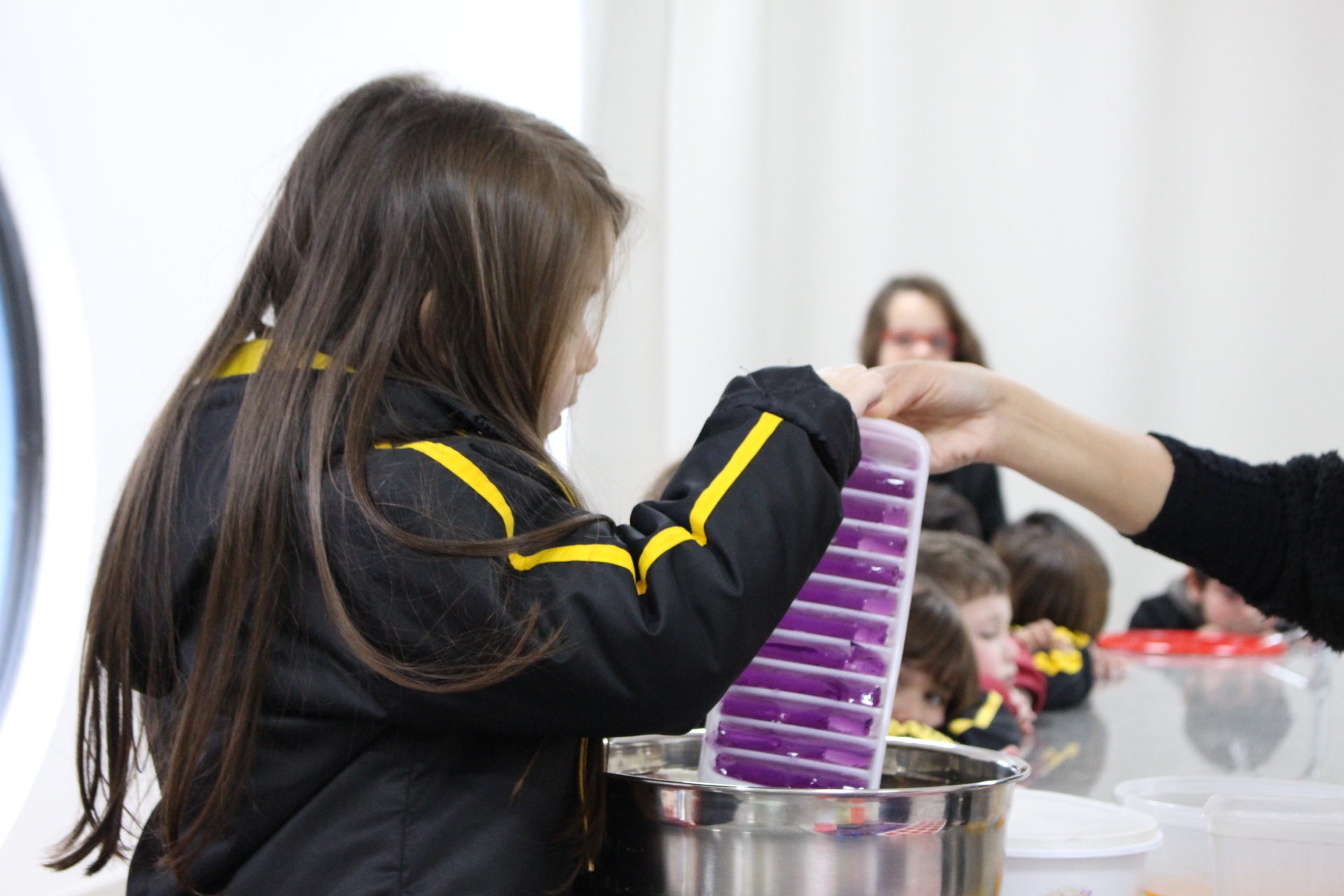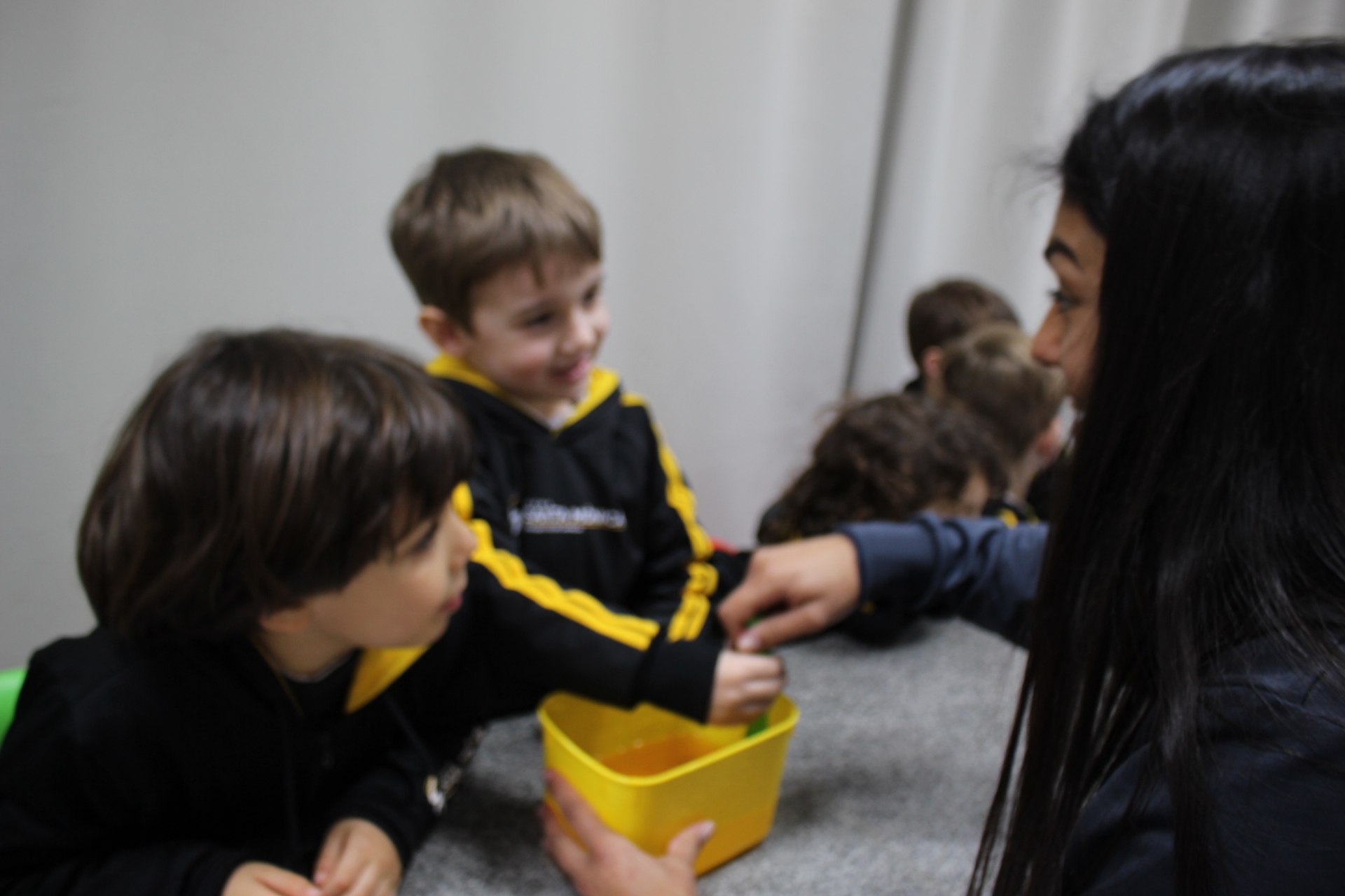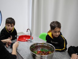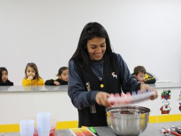 Os pequenos do Jardim II visitaram o espaço Gourmet Kids e prepararam uma deliciosa gelatina arco-íris para aprender mais sobre cores.