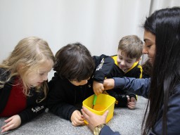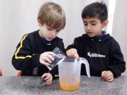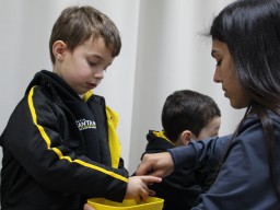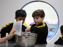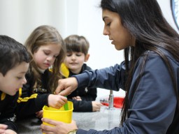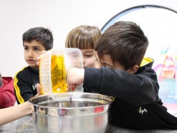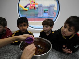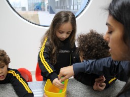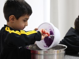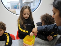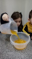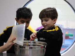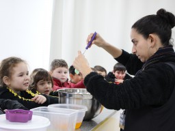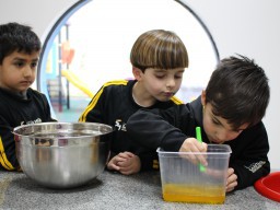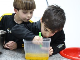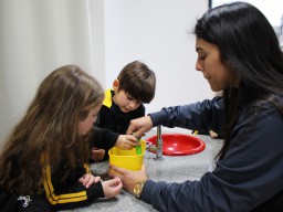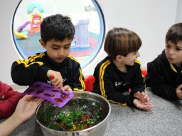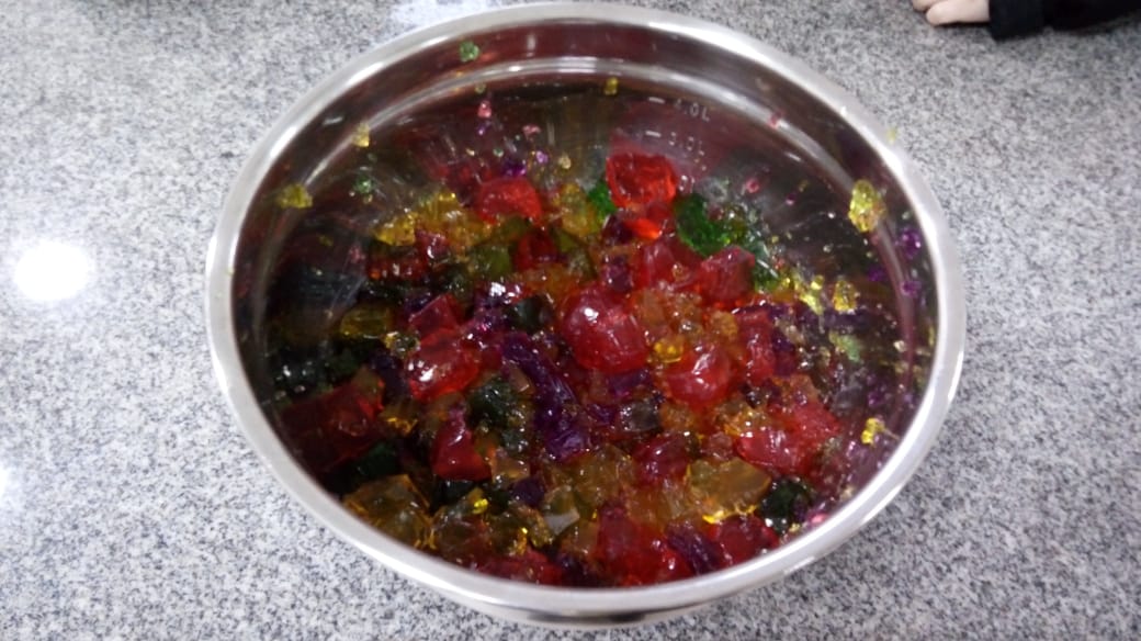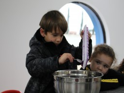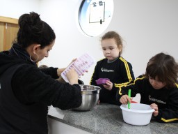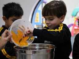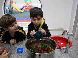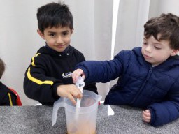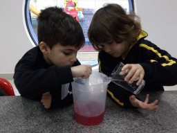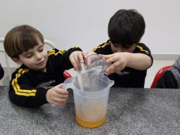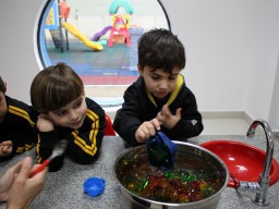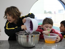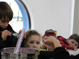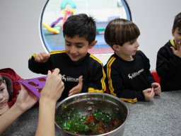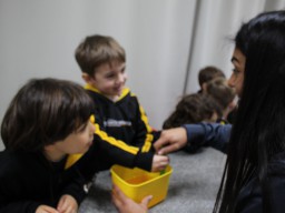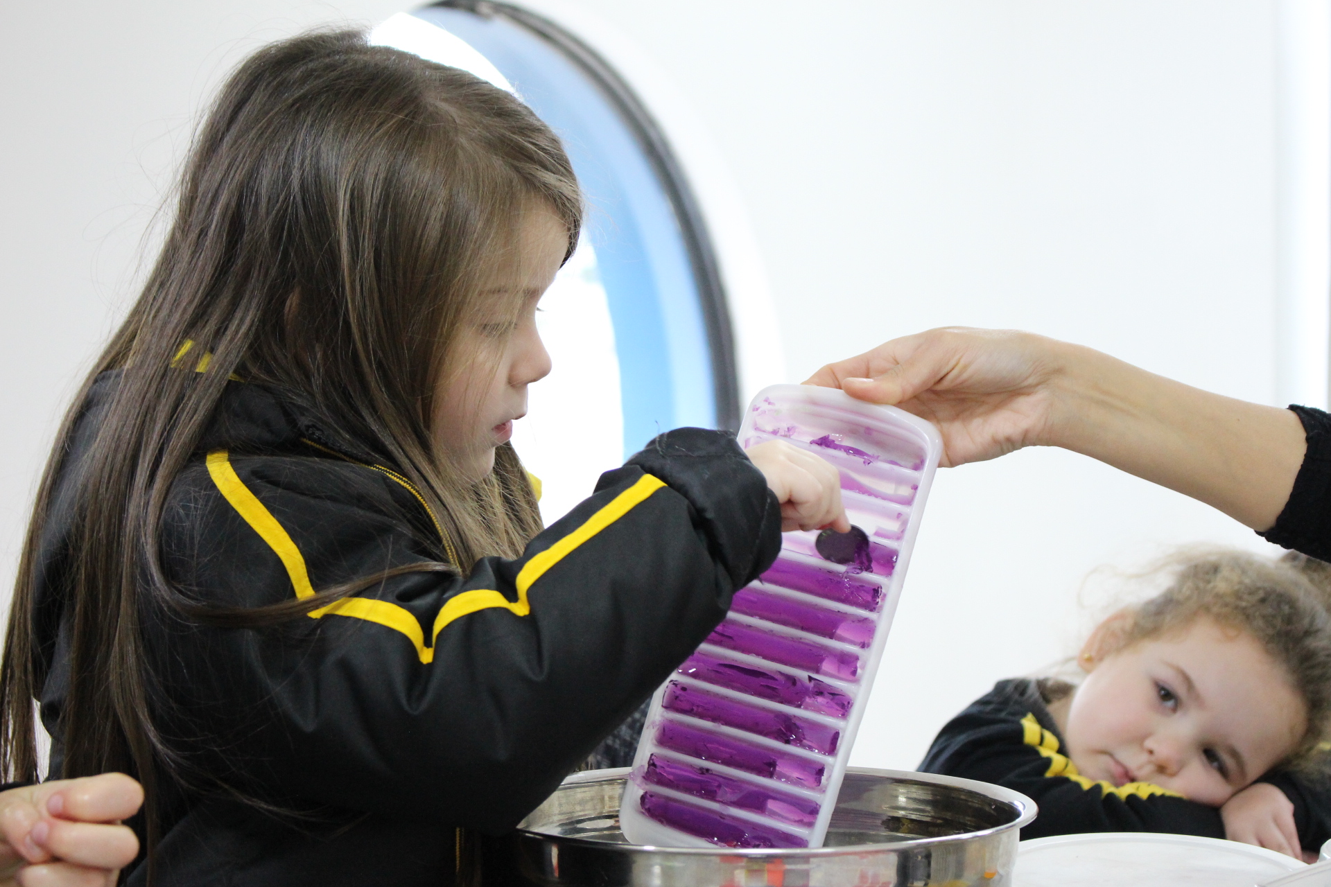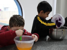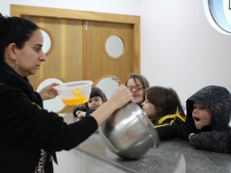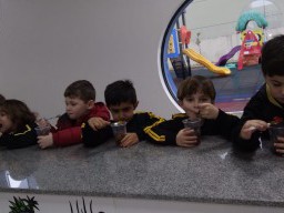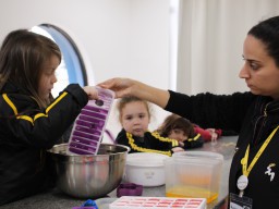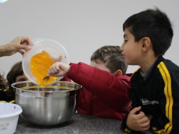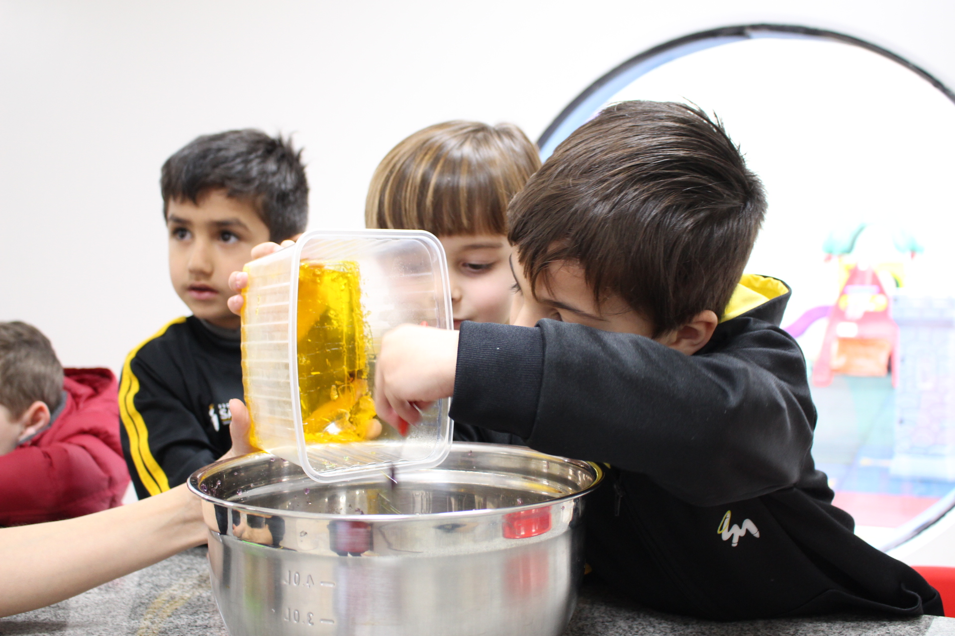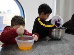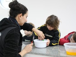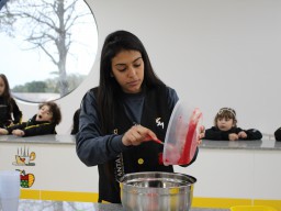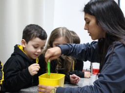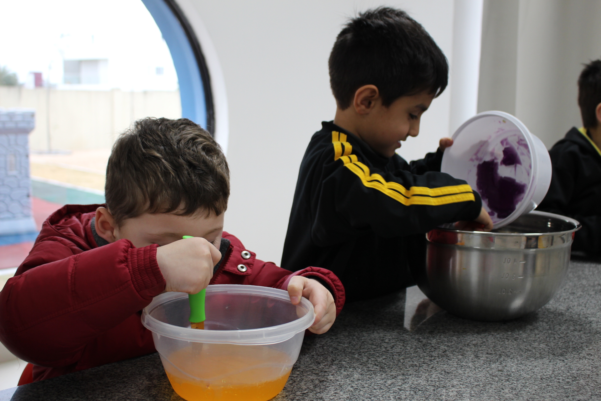 Os pequenos do Jardim II visitaram o espaço Gourmet Kids e prepararam uma deliciosa gelatina arco-íris para aprender mais sobre cores.