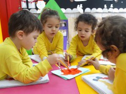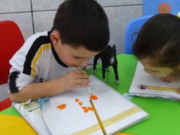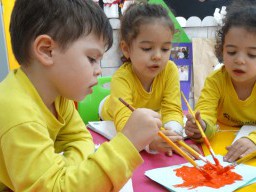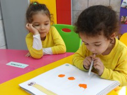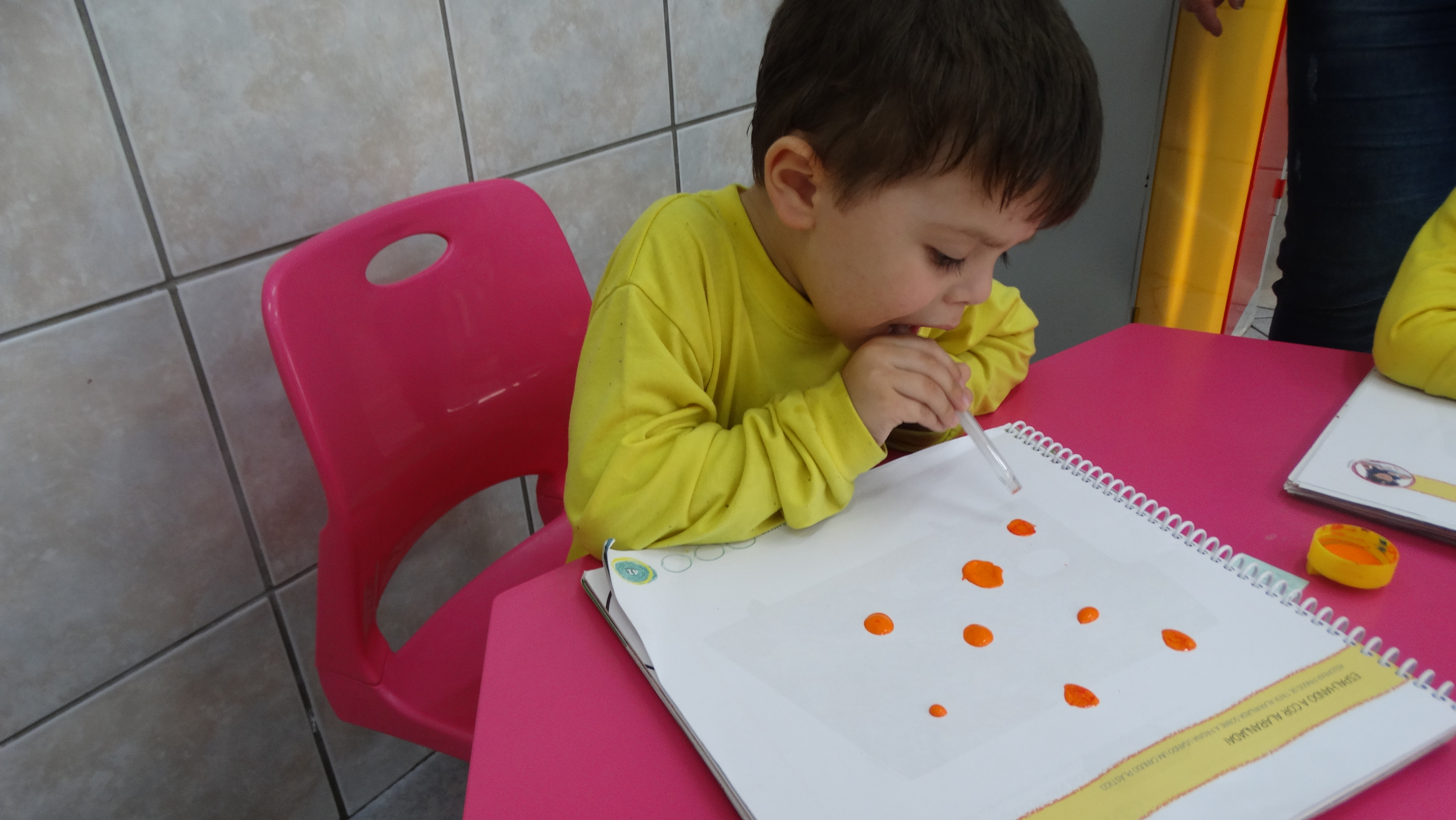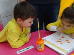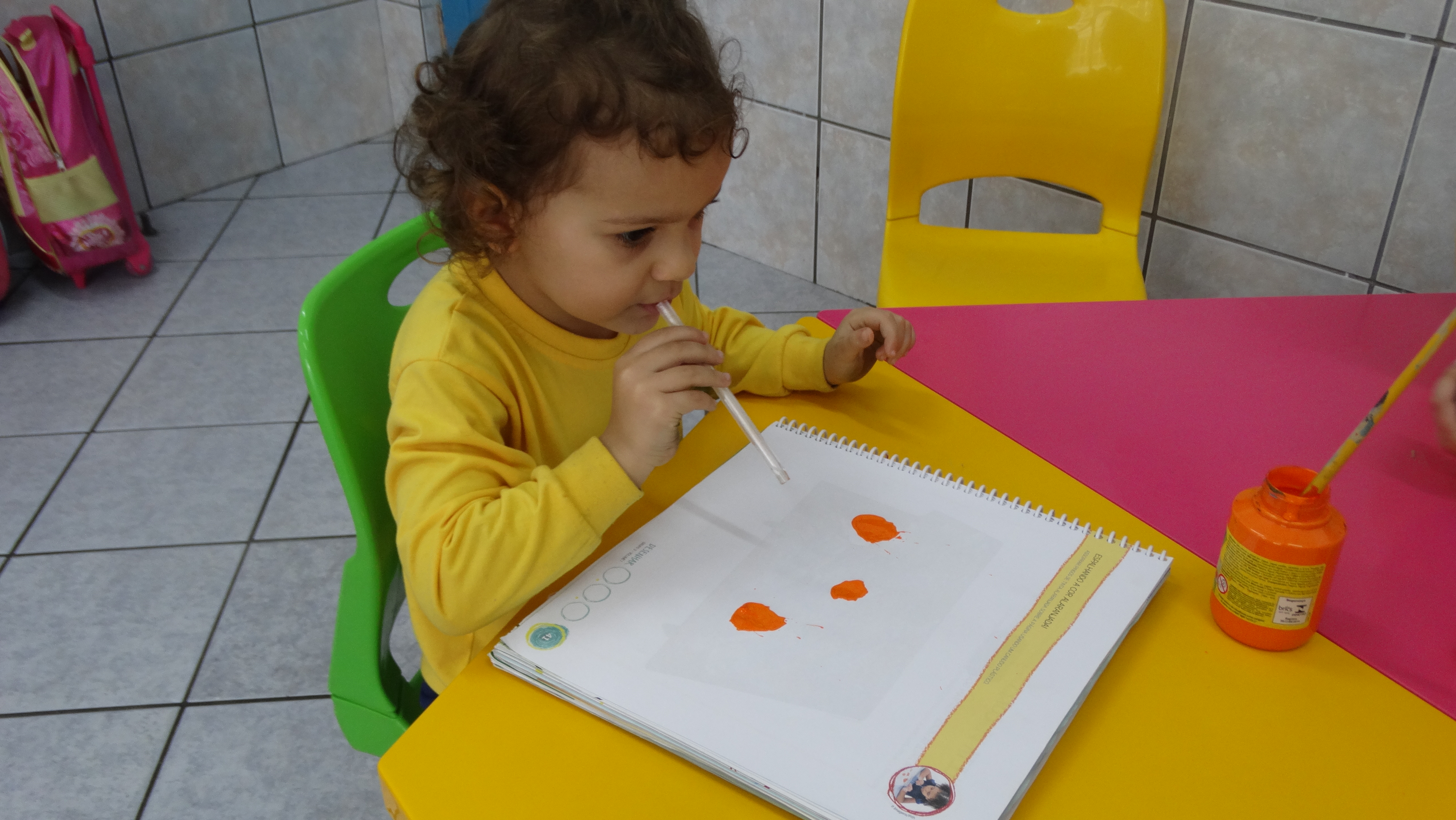 Nossas corujinhas do Jardim I realizaram uma atividade com a técnica de mistura das cores, utilizando vermelho e amarelo para formar a cor laranja. Após realizar a experiência, os alunos assopraram os canudos para formar pingos de tinta e espalhar a cor sobre a página, tornando a atividade divertida e colorida.