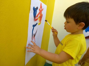 Trabalhando o Projeto de Arte, a turma do Jardim I utilizou colagens para produzir uma releitura da obra "Mural" de Fernand Léger....