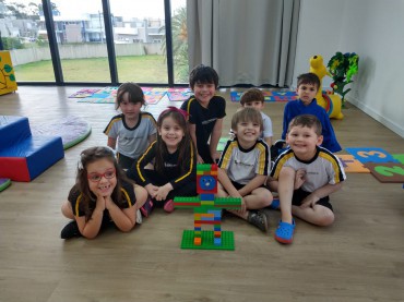Os alunos do Jardim II foram divididos em grupos e confeccionaram o "Boneco mais alto" com as peças do Lego Education...
