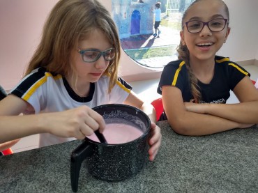 Os alunos de 4º ano visitaram o espaço Gourmet Kids e seguiram uma receita para preparar iogurte. O objetivo da atividade era analisar...