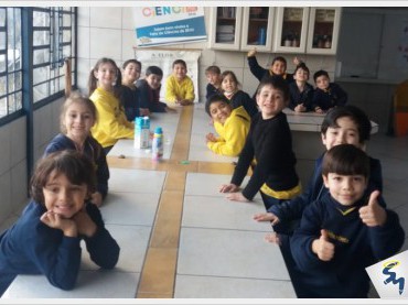 Os alunos de 1º ano aproveitaram o ambiente inspirador do Laboratório de Ciências para disputar o "Jogo das estimativas"....