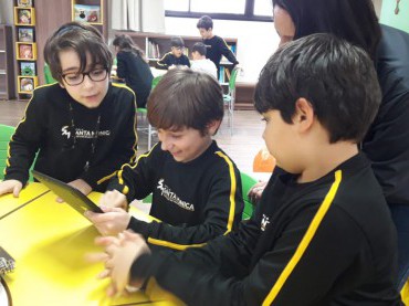 Os alunos de 4º ano visitaram o Colab Space e utilizaram os tablets para acessar um jogo lúdico sobre as operações...