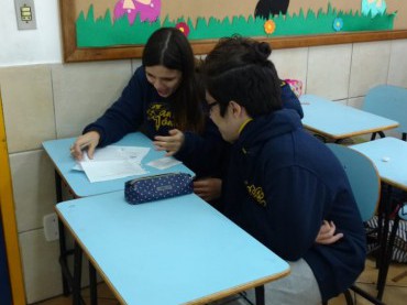 Durante a aula de Redação, os alunos de 9º ano participaram da atividade de estações por rotação,...