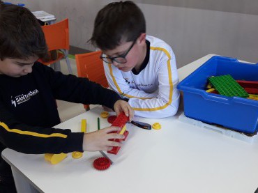 Depois de aprender sobre os insetos, os alunos de 2º ano visitaram o Clube da Robótica e utilizaram as peças LEGO...