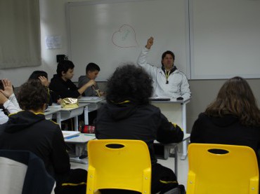 Durante a aula de Educação Física, os alunos conheceram, as regras, as técnicas e as táticas...