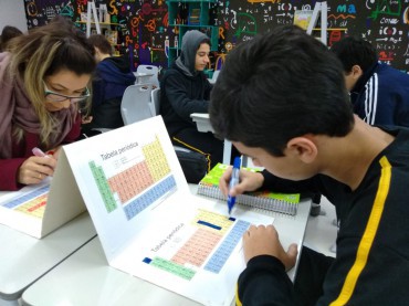 Os alunos de 9º ano revisaram os conceitos sobre elementos químicos com um jogo de batalha naval. A tabela periódica foi...