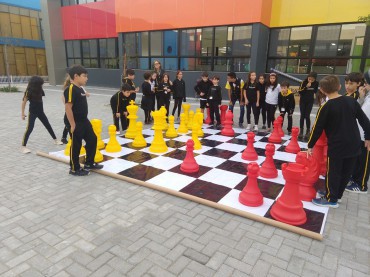 Nossos alunos de 4º ano do Ensino Fundamental aproveitaram o espaço do pátio para aprender mais utilizando o tabuleiro gigante de...