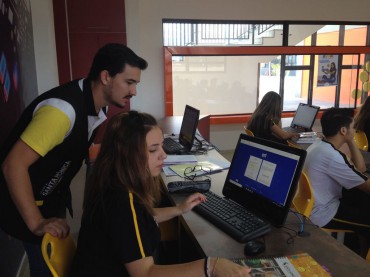 O professor Diego, de Português, levou os alunos de 7º ano do Ensino Fundamental em nosso Laboratório de Informática...