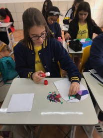 Nossos alunos de 7º ano do Ensino Fundamental produziram obras de arte utilizando a técnica vitral em mosaico, adaptada com pedaços...