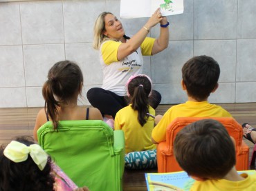 Os pequenos da turma 21, professora Tainá, aproveitaram o ambiente aconchegante da sala de recração para relaxar ouvindo histórias! ...