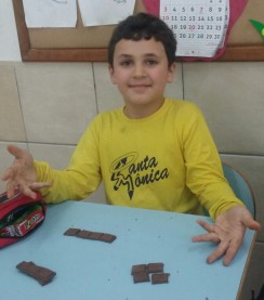 Para entender mais sobre as frações numéricas, as turmas de 2º ano do ensino fundamental utilizaram barras de chocolate para...