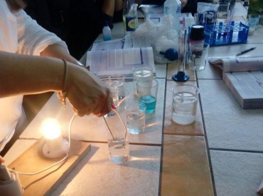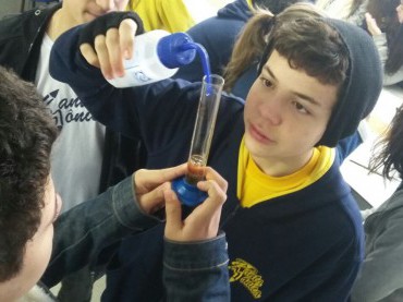 Utilizando os recursos do Laboratório de Ciências, os alunos do 1º ano do Ensino Médio tiveram aula prática...